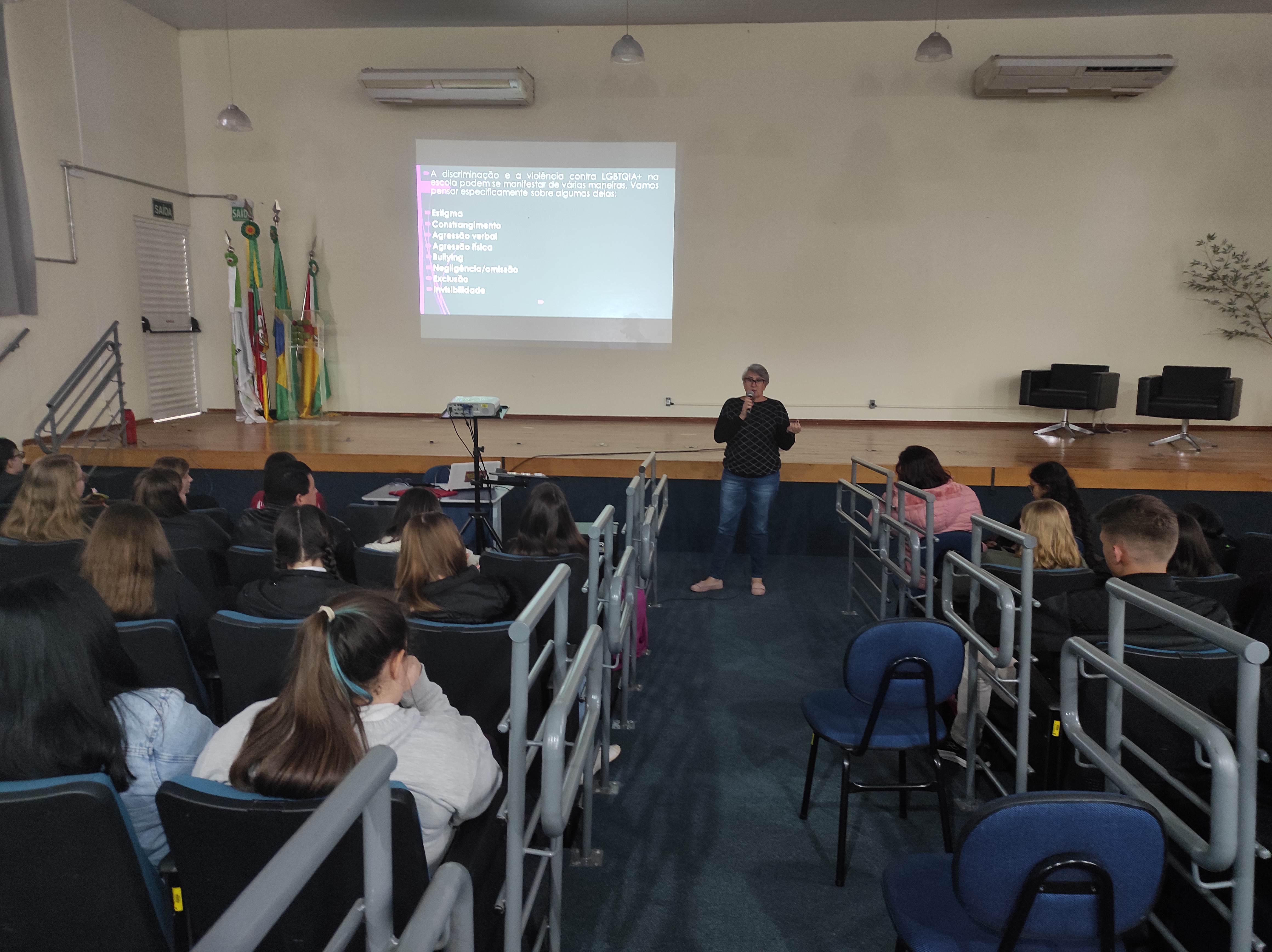 Na tarde de terça-feira, 1º de novembro, os acadêmicos do 2⁰ semestre de Licenciatura em Ciências Biológicas do IFFar Campus Santo Augusto, sob a coordenação da professora Clarinês Hames, promoveram um Cine Debate com os estudantes dos cursos técnicos integrados ao ensino médio em Alimentos e Agropecuária. A atividade foi realizada em parceria com o Núcleo de Gênero e Diversidade Sexual do IFFar – Campus Santo Augusto – NUGEDIS.
