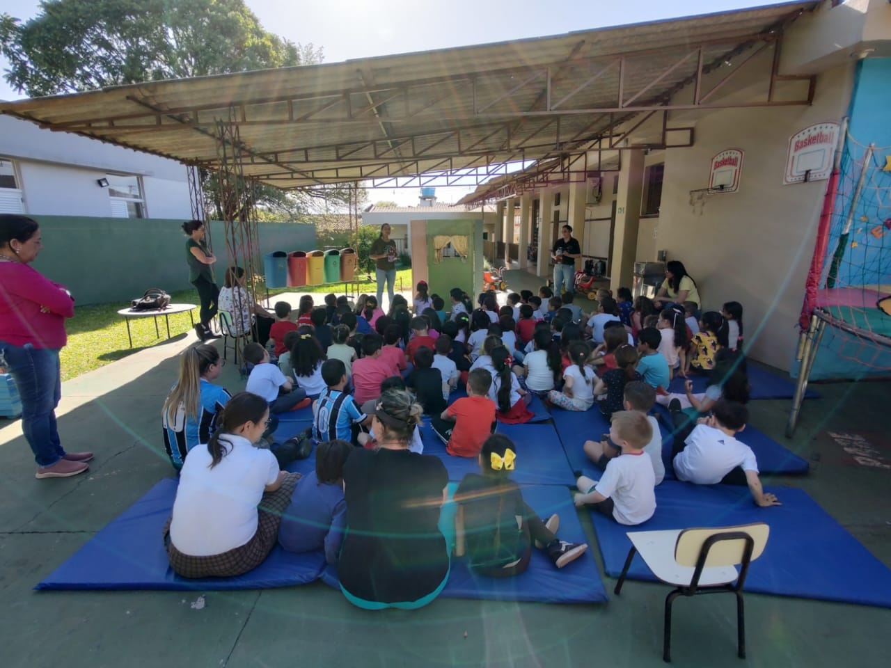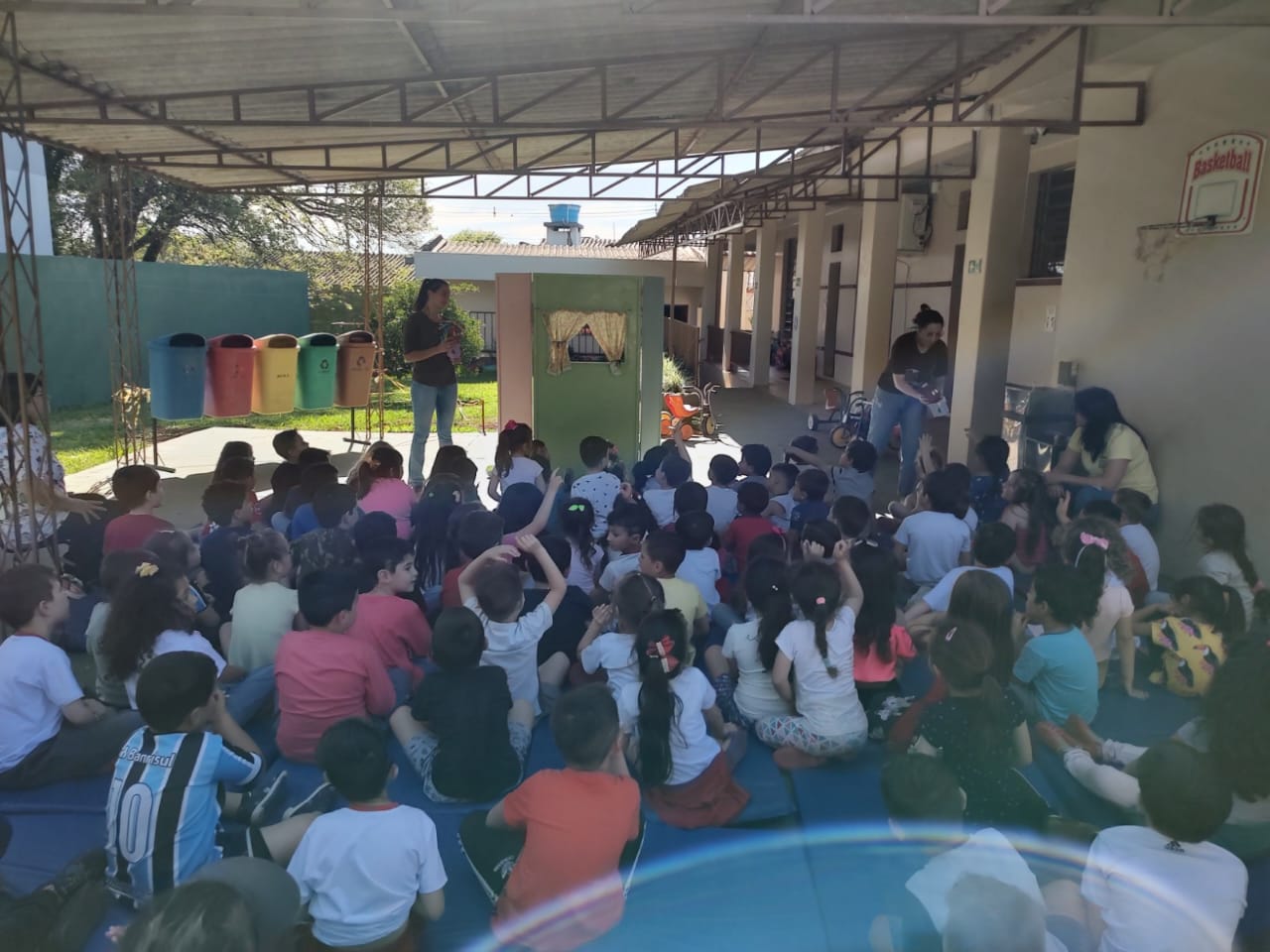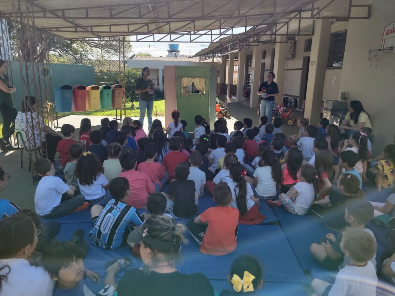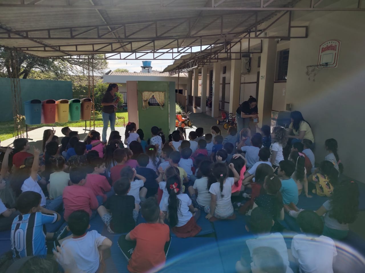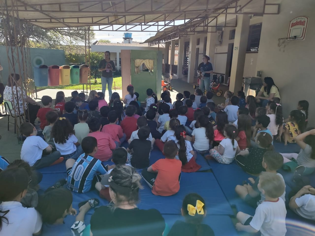 Os acadêmicos de Licenciatura em Ciências Biológicas do IFFar – Campus Santo Augusto, Andressa Maiara de Almeida Machado, Danieli Bueno Schreiber e Guilherme Faustino Boelter, apresentaram nesta quarta-feira, dia 09 de novembro, na Escola Municipal de Educação Infantil Vovó Amália, nos turnos da manhã (30 alunos) e da tarde (60 alunos), um teatro de fantoches e uma palestra com a temática “Lixo e Meio Ambiente”.
