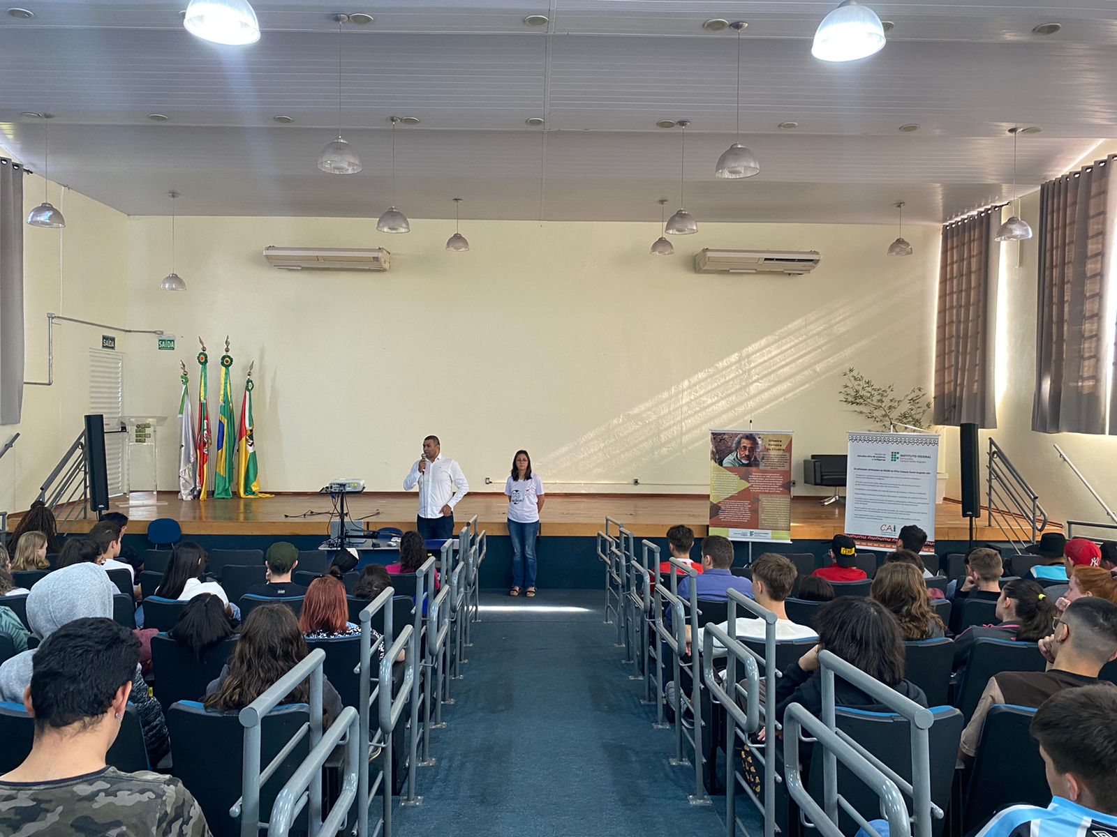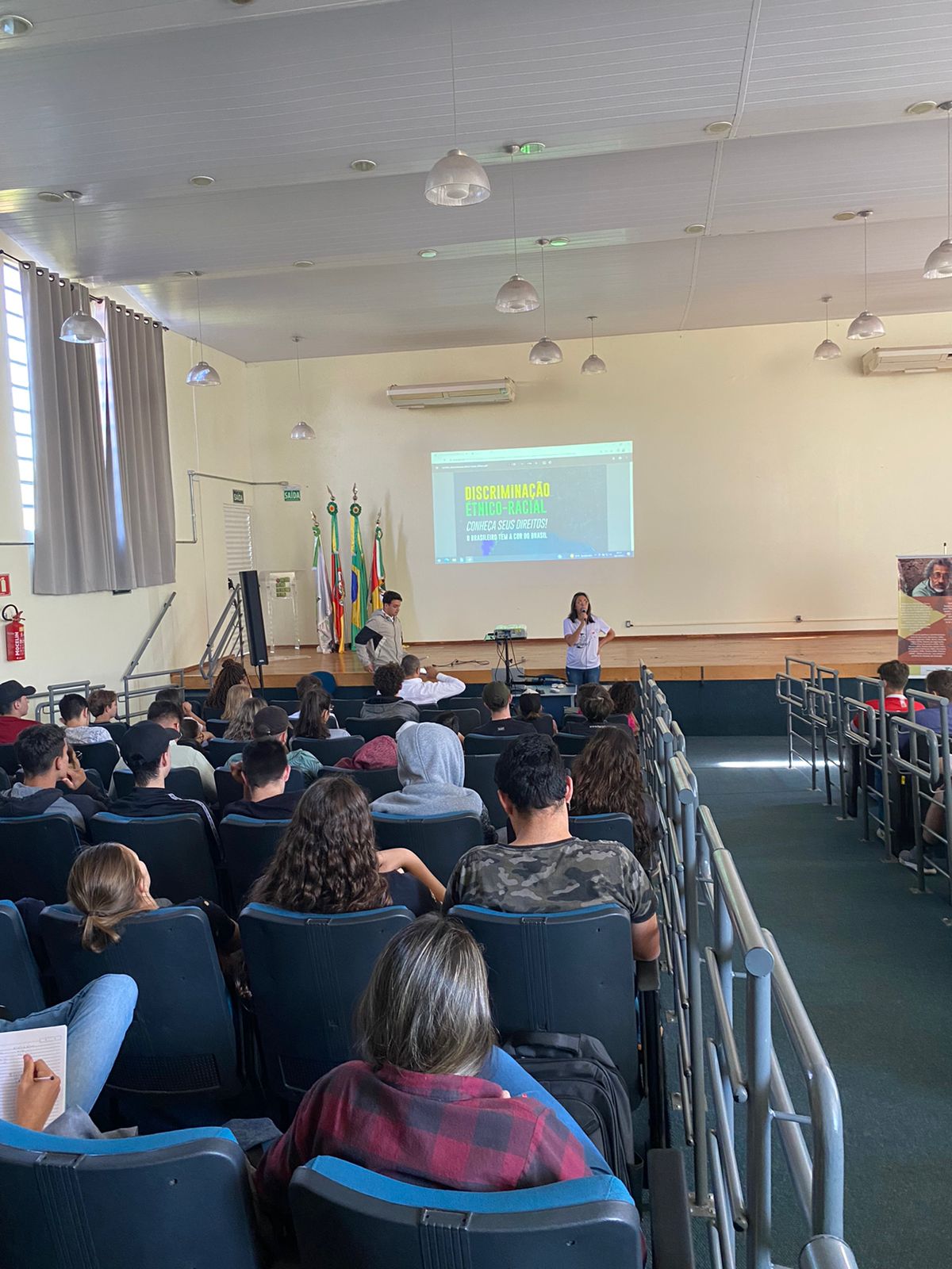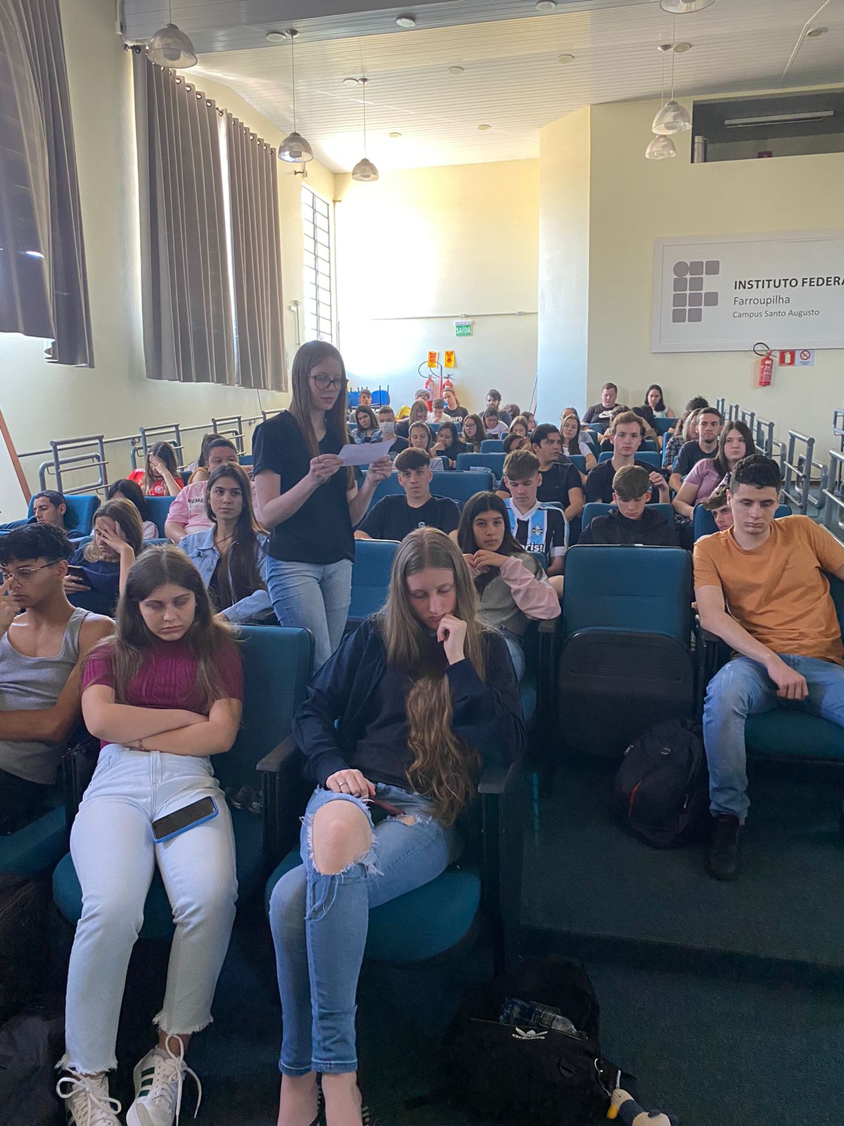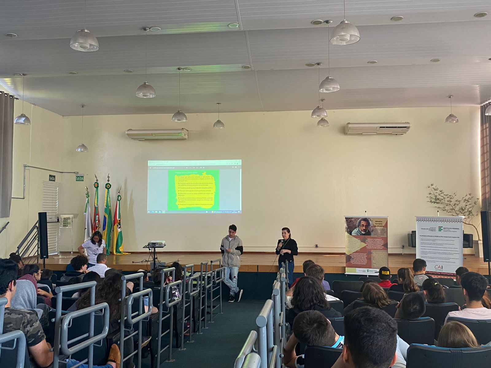 Na manhã desta sexta-feira, dia 18 de novembro, os estudantes dos cursos técnicos integrados ao ensino médio, assistiram no auditório do campus, o documentário “Sou”, que retrata a vida e obra do poeta gaúcho Oliveira Ferreira Silveira. Na sequência, integrantes do Neabi realizaram um debate com os estudantes sobre a temática, também foram lidas poesias de Oliveira Ferreira Silveira.
