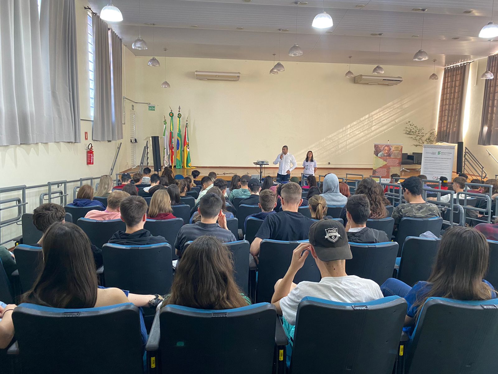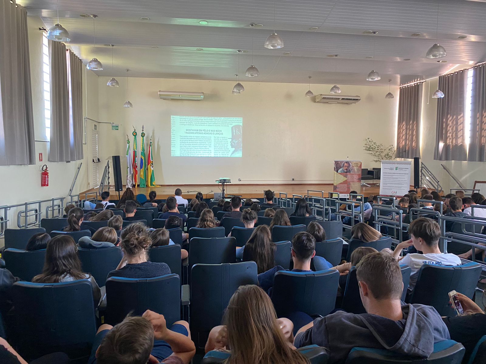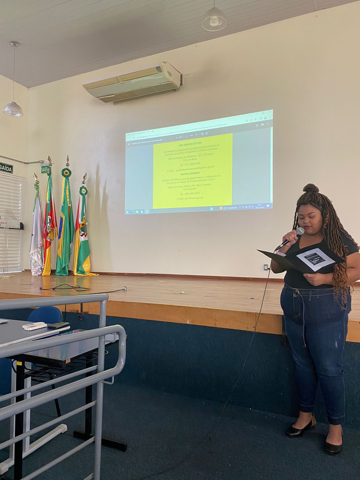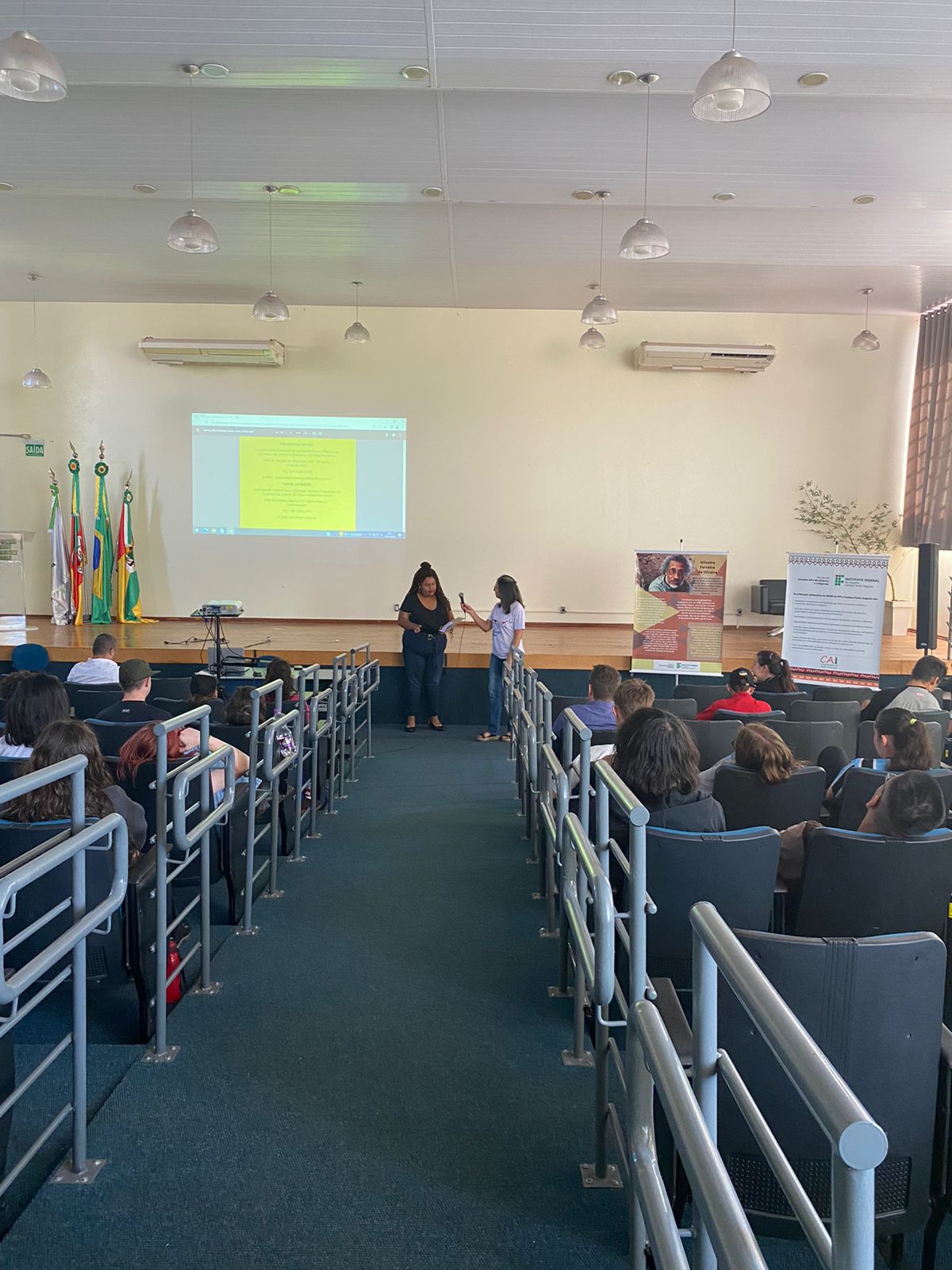 Na manhã desta sexta-feira, dia 18 de novembro, os estudantes dos cursos técnicos integrados ao ensino médio, assistiram no auditório do campus, o documentário “Sou”, que retrata a vida e obra do poeta gaúcho Oliveira Ferreira Silveira. Na sequência, integrantes do Neabi realizaram um debate com os estudantes sobre a temática, também foram lidas poesias de Oliveira Ferreira Silveira.