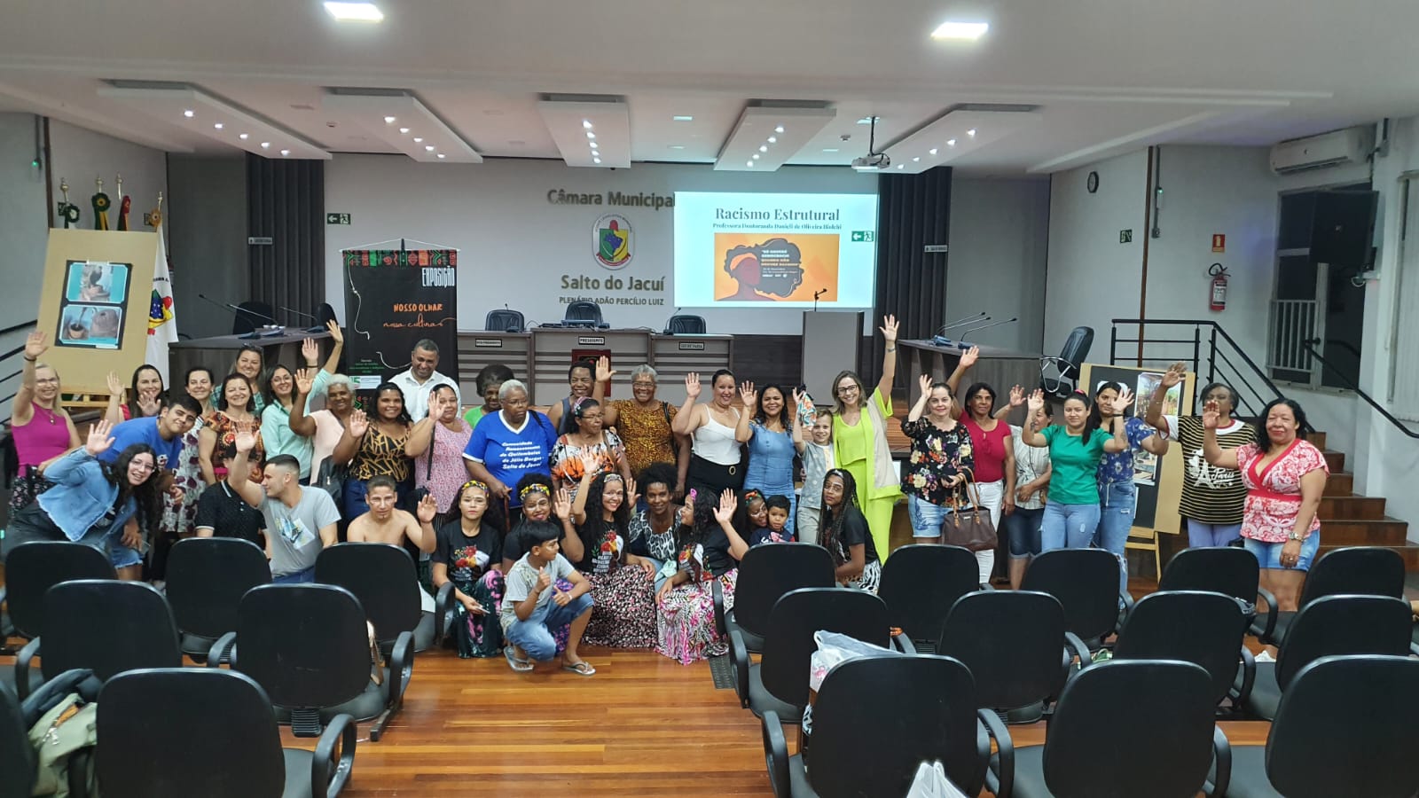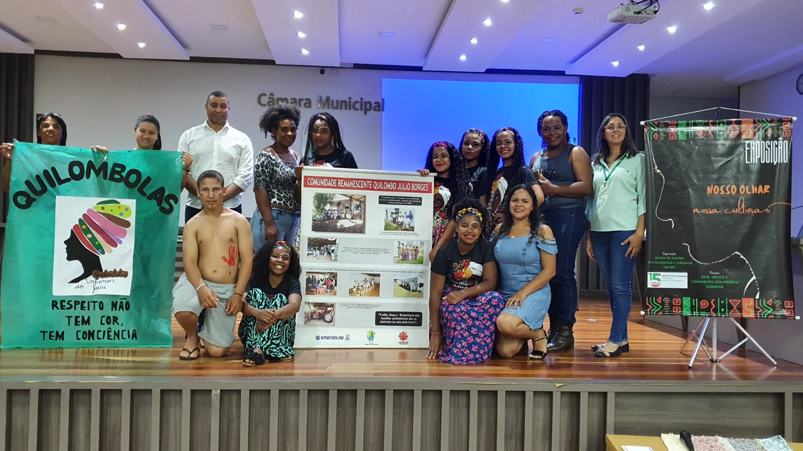 No dia 19 de novembro, integrantes do Neabi participaram 1º Fórum Municipal de Cultura e Consciência Negra das Comunidades Quilombolas de Salto do Jacuí realizado na Câmara de vereadores do município. O evento teve como objetivo estimular a reflexão sobre a importância da cultura afrodescendente na formação histórica e cultural da sociedade brasileira, bem como, enriquecer os conhecimentos locais sobre a história e a cultura negra, criando oportunidades de visibilidade e reconhecimentos dos quilombos rural e urbano do município de Salto do Jacuí.