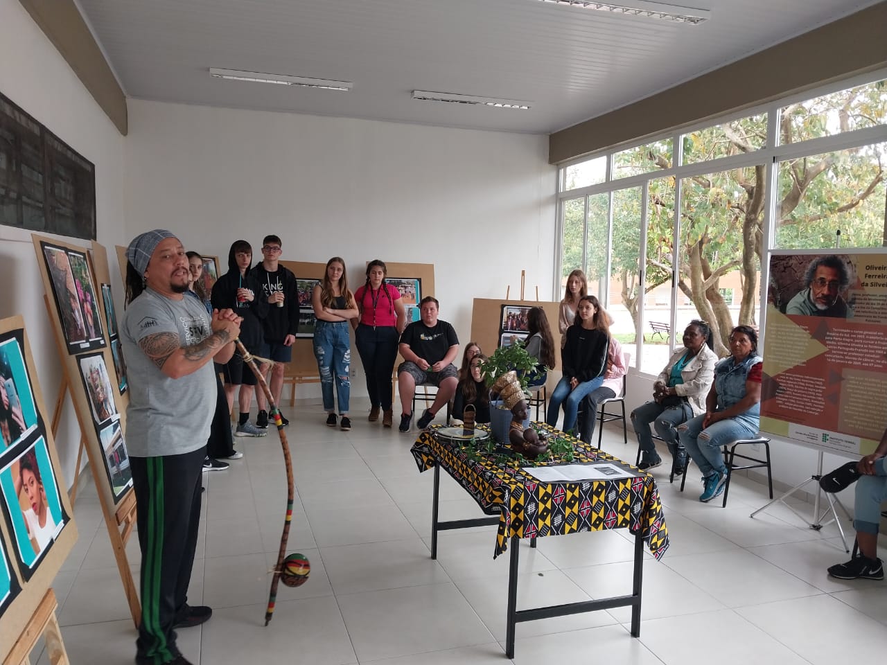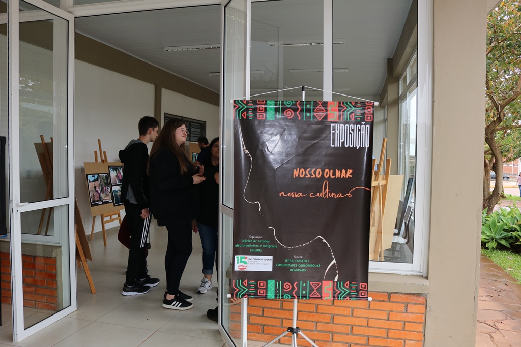 Na manhã de terça-feira, 22 de novembro, o Núcleo de Estudos Afrobrasileiros e Indígenas do IFFar – Campus Santo Augusto – Neabi realizou a abertura da exposição fotográfica “Nosso Olhar, Nossa Cultura”, instalada na sala de convivência ao lado do refeitório. A exposição ficará aberta para visitação na instituição até sexta-feira ao meio dia,