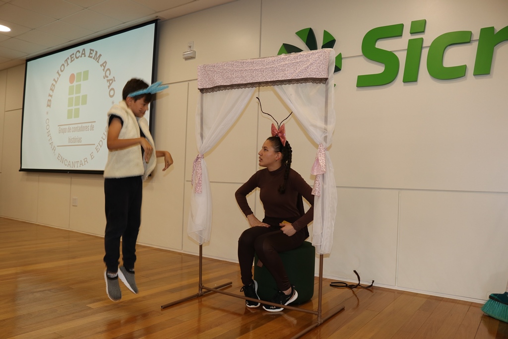O projeto de extensão “Biblioteca em ação: contar, encantar e educar”, da Biblioteca Mario Quintana do IFFar – Campus Santo Augusto, promoveu na tarde de terça-feira, dia 22 de novembro, no auditório do Sicredi, o III Festival de Histórias.