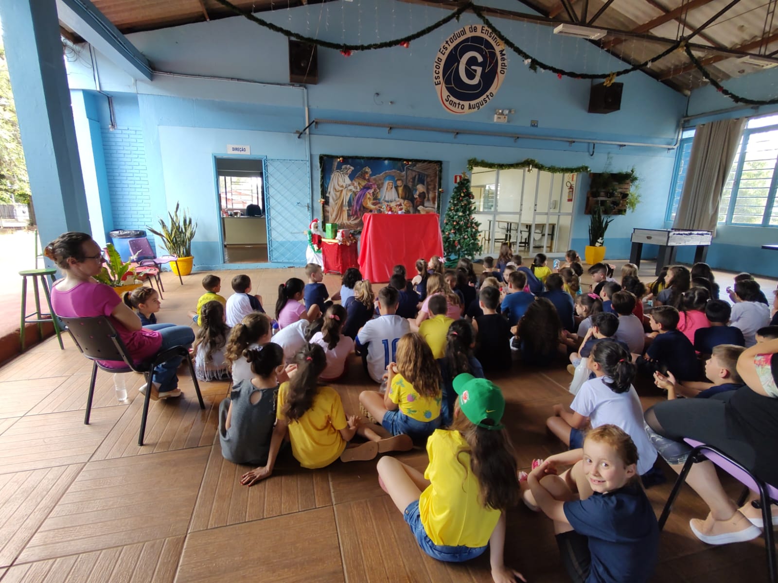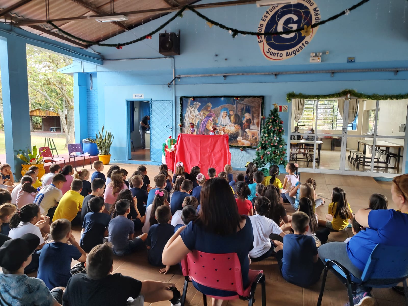 O Projeto de Extensão “A Vivência do Tema Gerador Educação Ambiental no Ensino Fundamental” realizou, no dia 28 de novembro, a atividade de encerramento do ano, com a apresentação de um teatro de fantoches e de uma palestra com a temática “Lixo e Meio Ambiente”, para cerca de 100 estudantes da Escola Estadual de Ensino Médio Santo Augusto.