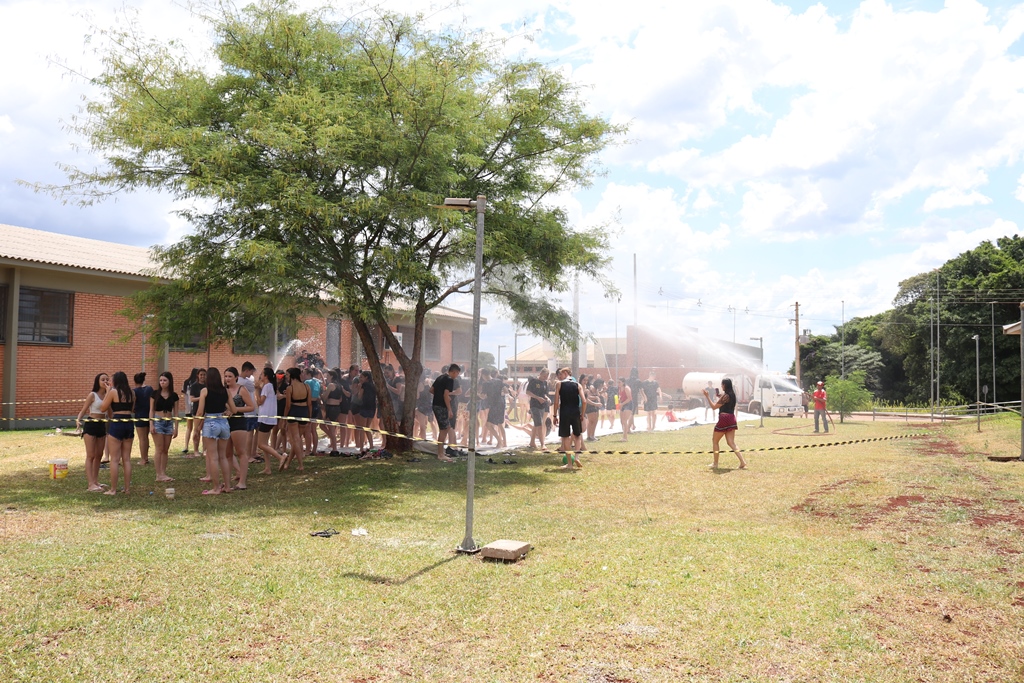 A brincadeira teve como espaço delimitado o gramado central do campus. Além de bexiguinhas com água, garrafas, baldes e mangueiras, também foram utilizados para molhar aqueles que desejavam participar da festa, mas a atração principal foi o jato de água do caminhão pipa da prefeitura, que abrilhantou a festa.