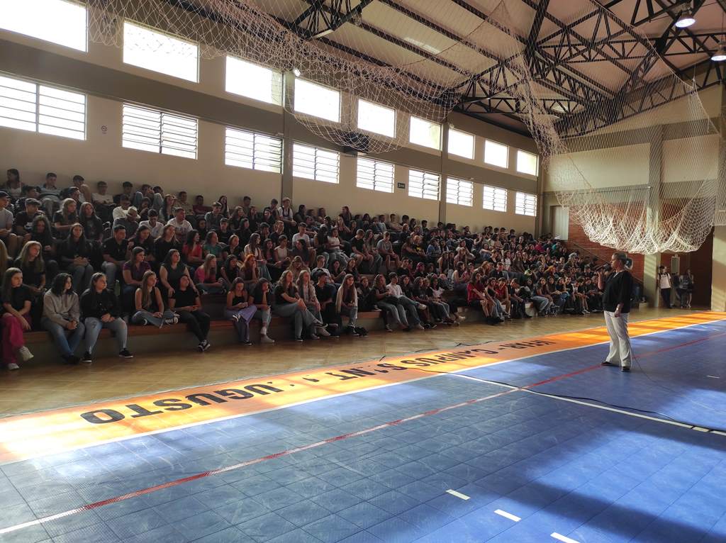 O IFFar – Campus Santo Augusto iniciou na manhã de quarta-feira, 15 de fevereiro, às aulas para os cerca de 400 alunos dos cursos técnicos integrados ao ensino médio. Os estudantes foram recebidos no Ginásio de esportes da instituição, para participarem das atividades de acolhimento, organizadas pela Coordenação de Assistência Estudantil – CAE e pelo Grêmio Estudantil.
