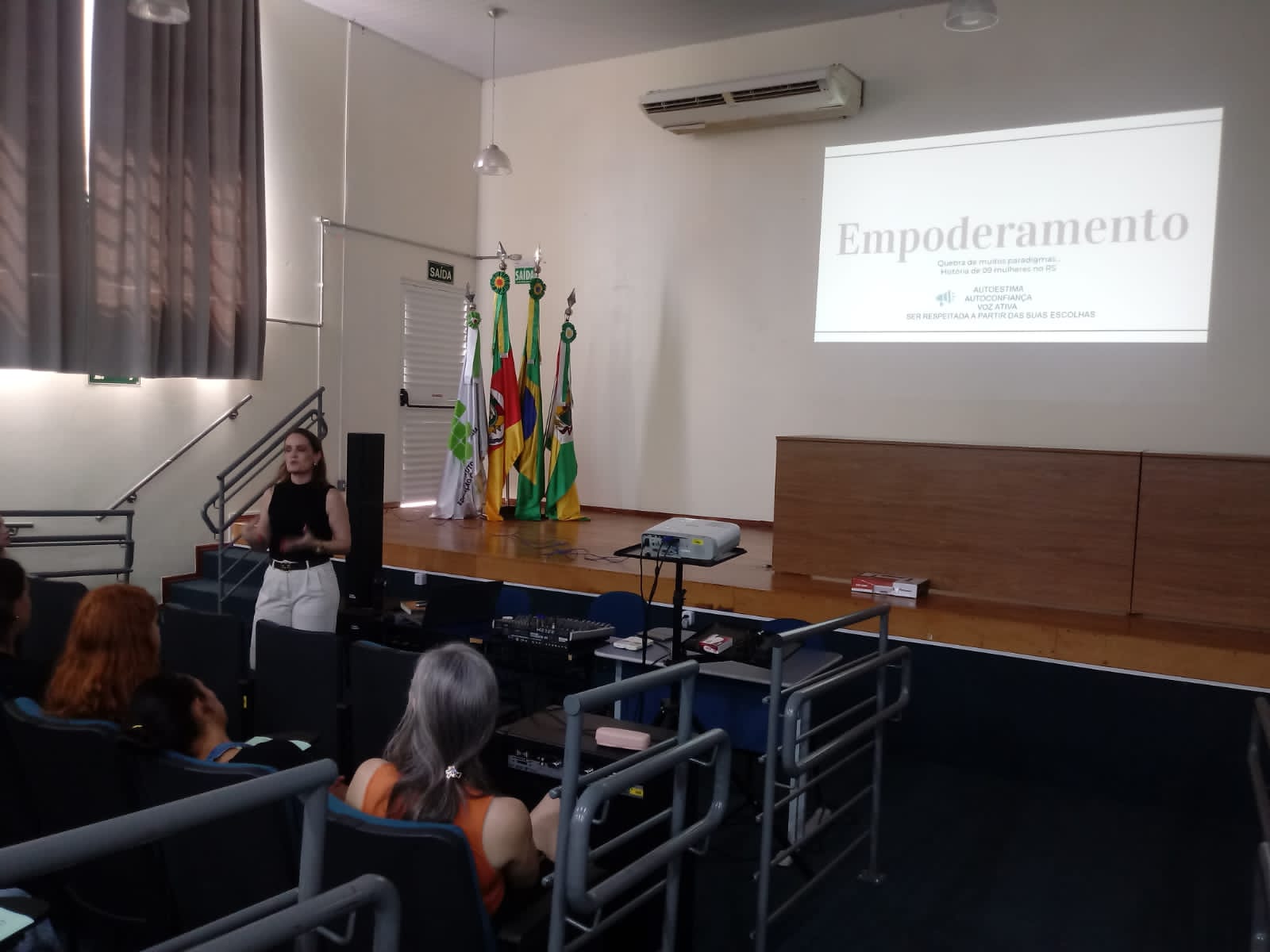 Na ocasião, a Diretora de Planejamento e Desenvolvimento Institucional, Lizandra Forgiarini Lucca, iniciou sua fala sobre o verdadeiro motivo da data, qual se refere à luta por direitos iguais, pois não é apenas no Dia da Mulher que deve ser discutido sobre igualdade de gênero, ressaltou ainda que o empoderamento feminino começa com autoestima contando sua própria história de vida. O evento contou ainda com uma convidada especial a psicóloga e fotógrafa, Dedilhana Lamare Manjabosco Hubner, que trouxe a temática sobre “Empoderamento Feminino na fotografia”.