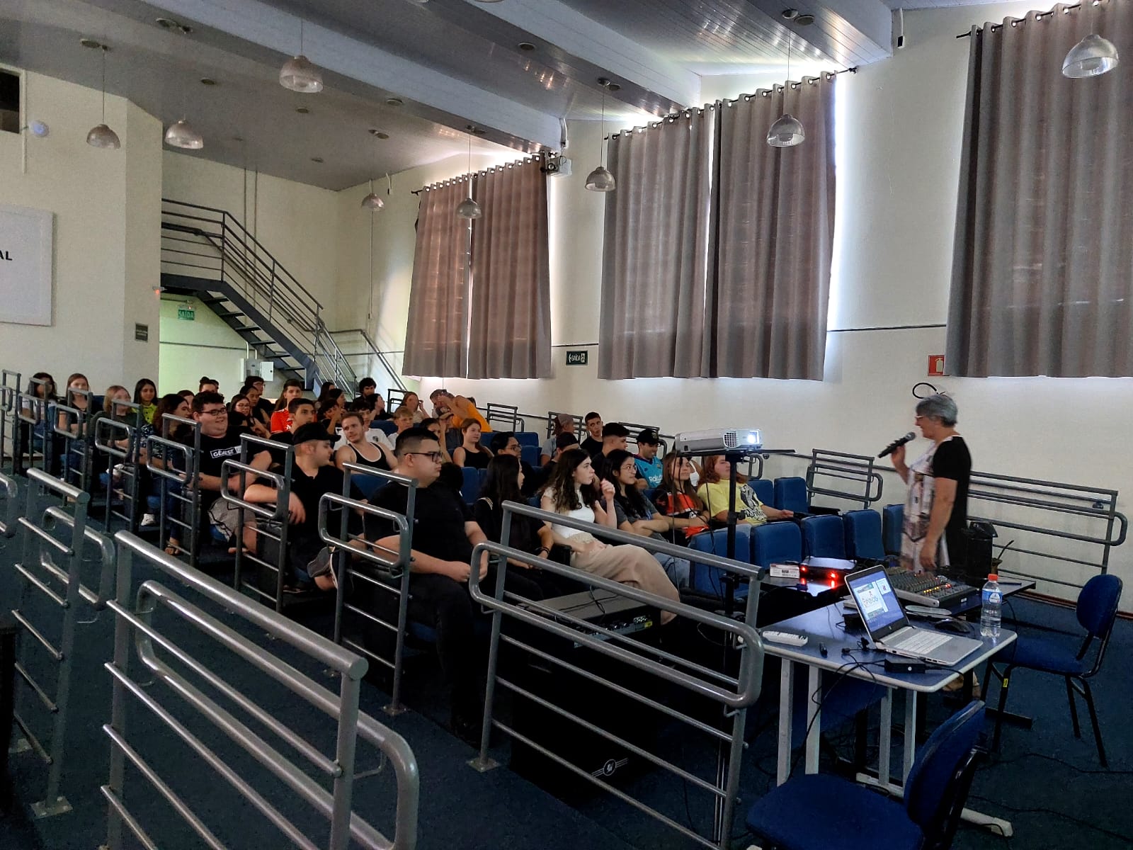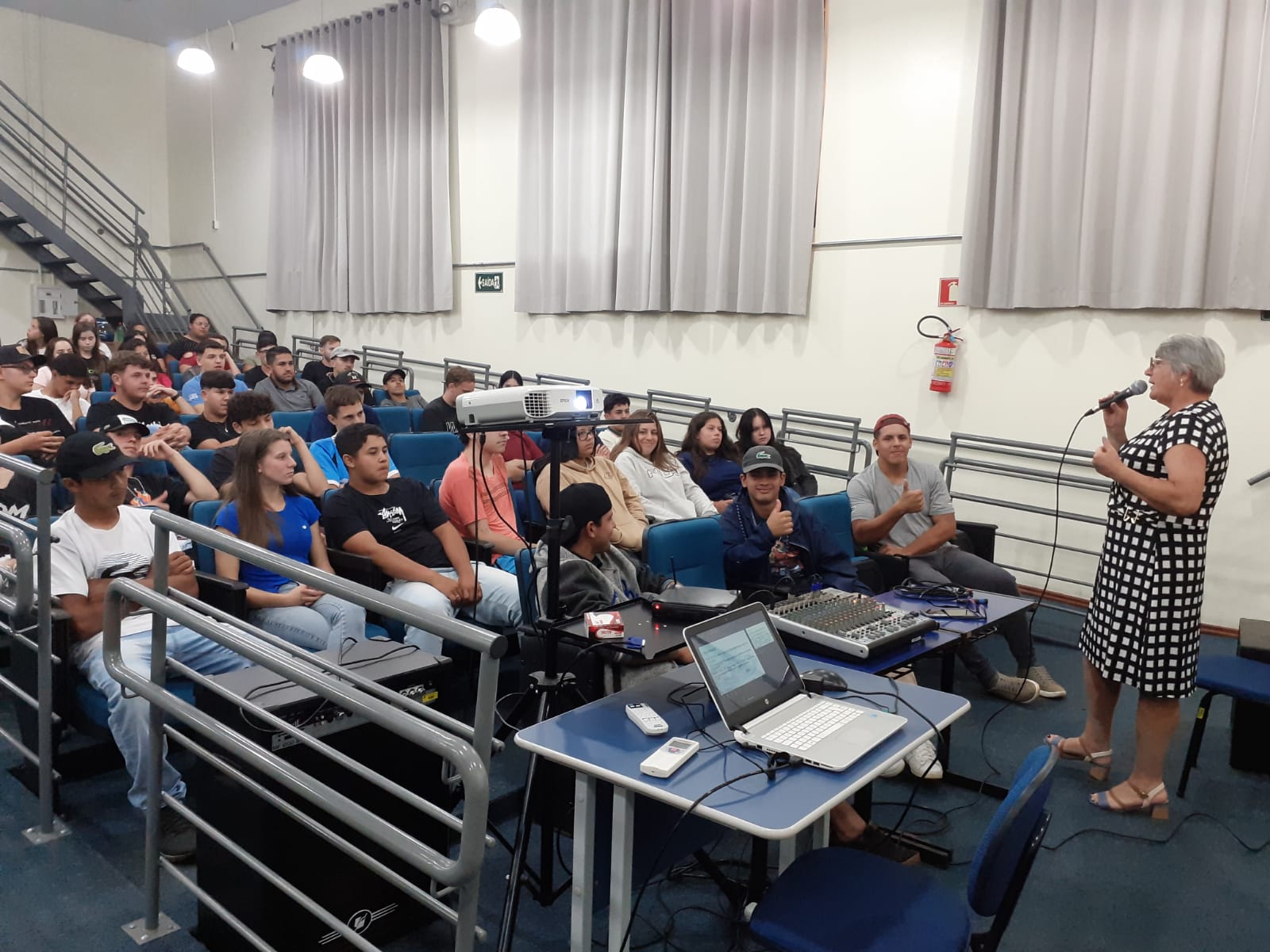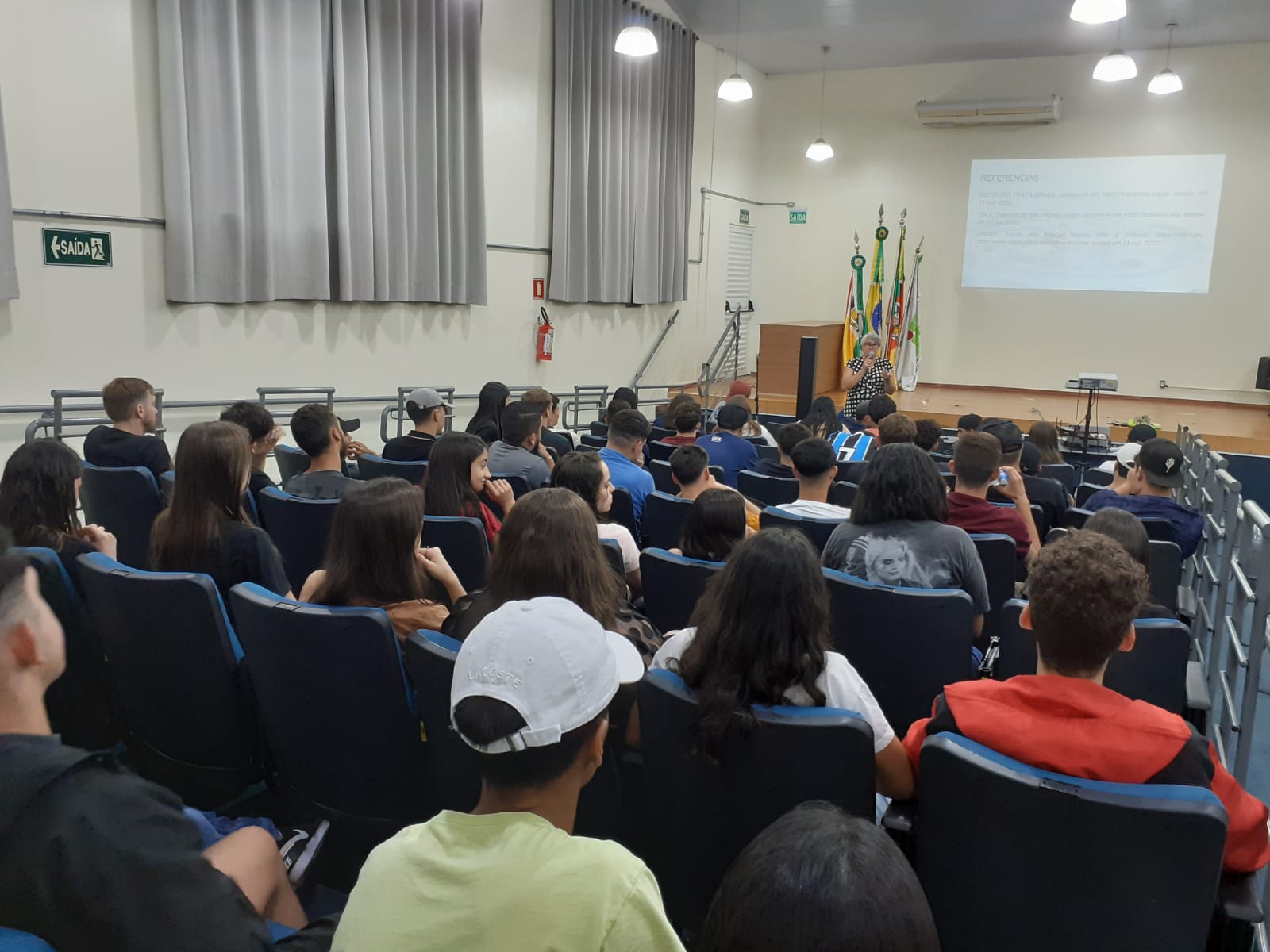 Participaram da palestra, no turno da manhã, estudantes dos anos finais do ensino fundamental e do 3º ano do ensino médio da Escola Estadual de Ensino Médio Santo Augusto (Ginásio), e à noite, participaram os estudantes do ensino médio noturno da escola, totalizando cerca de 250 participantes.