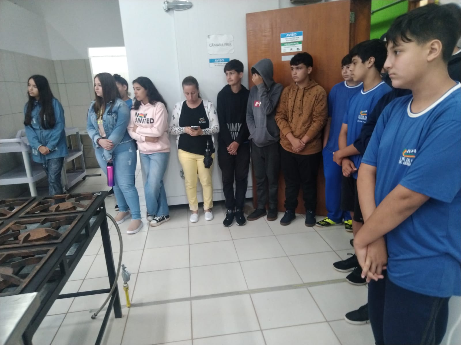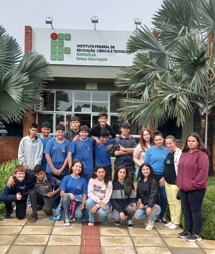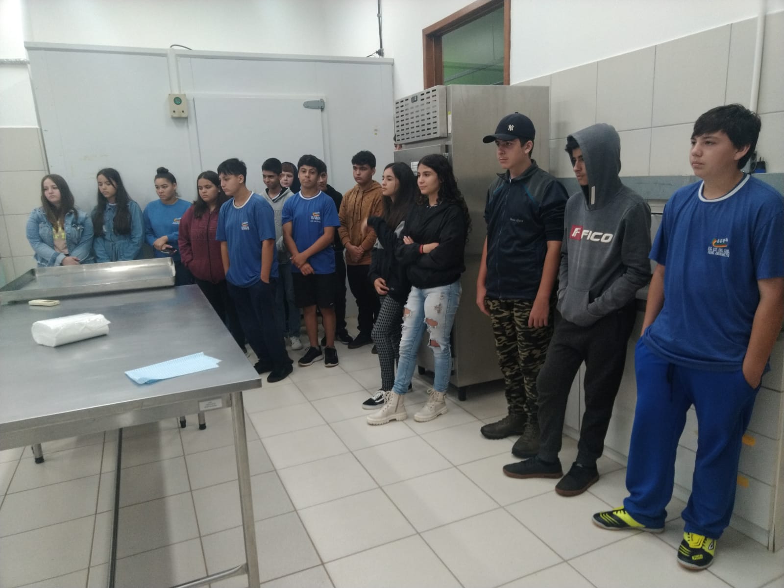 Na manhã desta quinta-feira, 30 de março, o IFFar – Campus Santo Augusto recebeu a visita dos alunos do 8º ano da Escola Estadual de Ensino Fundamental Francisco Andrighetto, acompanhados pela professora Mariel Avozani. Os visitantes foram recebidos pelos estudantes do 3º ano do Curso Técnico em Alimentos integrado ao ensino médio, juntamente com as professoras, Melissa dos Santos Oliveira e Tatiane Storch.