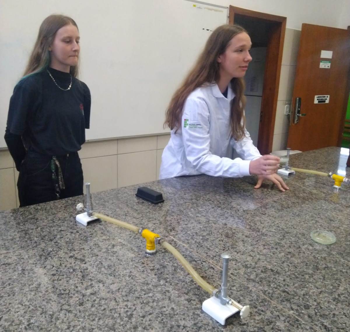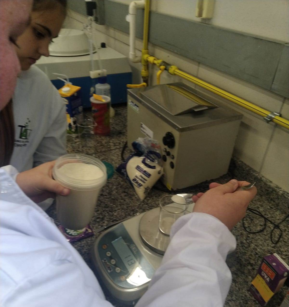 Na sequência, foram apresentados os laboratórios do Eixo de Produção Alimentícia, onde foi realizada uma atividade prática com pesagem de açúcar, gordura e sal de alimentos como refrigerantes, salgadinhos, bebidas lácteas achocolatadas e macarrão instantâneo, sendo demonstrado como identificar essas informações nos rótulos dos produtos. Por fim, os visitantes conheceram os laboratórios de Biologia e Química no Prédio de Ciência e Tecnologia.