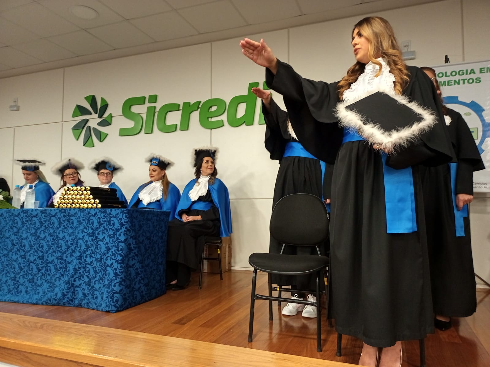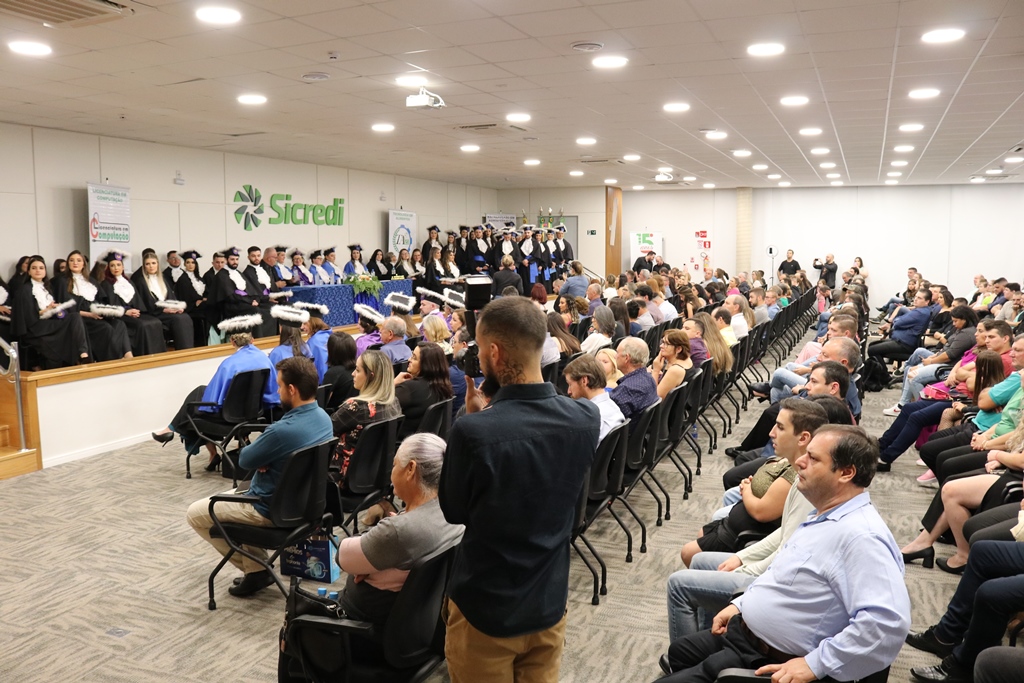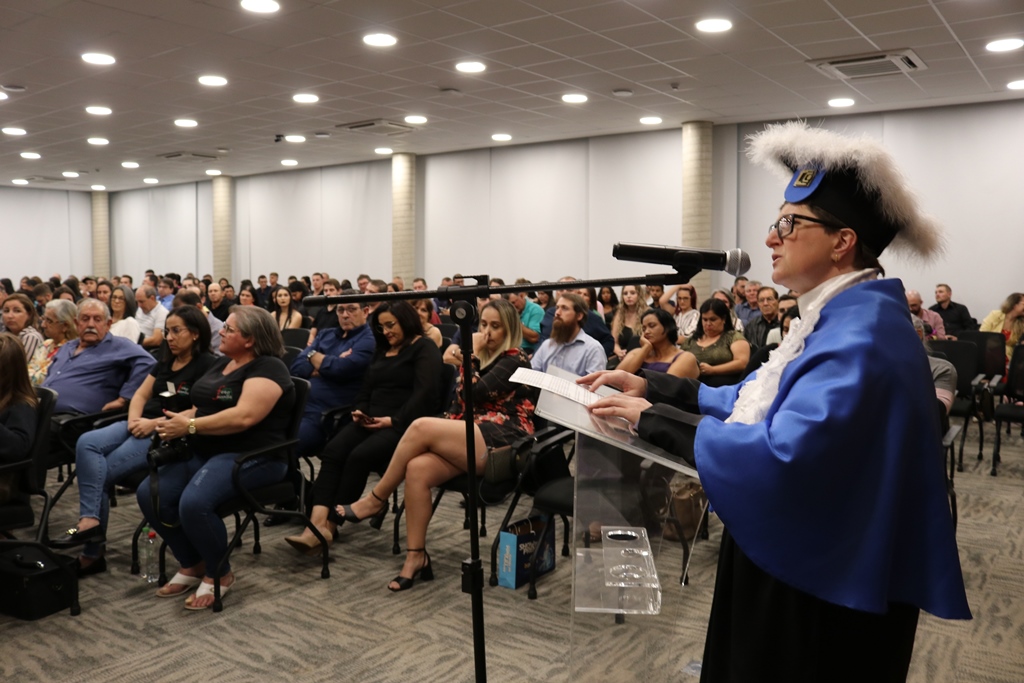 Em sua fala, a Diretora Márcia Fink, agradeceu ao Sicredi pela cedência do espaço e destacou o quanto o IFFar – Campus Santo Augusto vem a cada ano dando provas concretas para a sociedade da importância da Educação na vida das pessoas, por meio das diversas turmas de formandos dos cursos superiores oferecidos pela instituição.