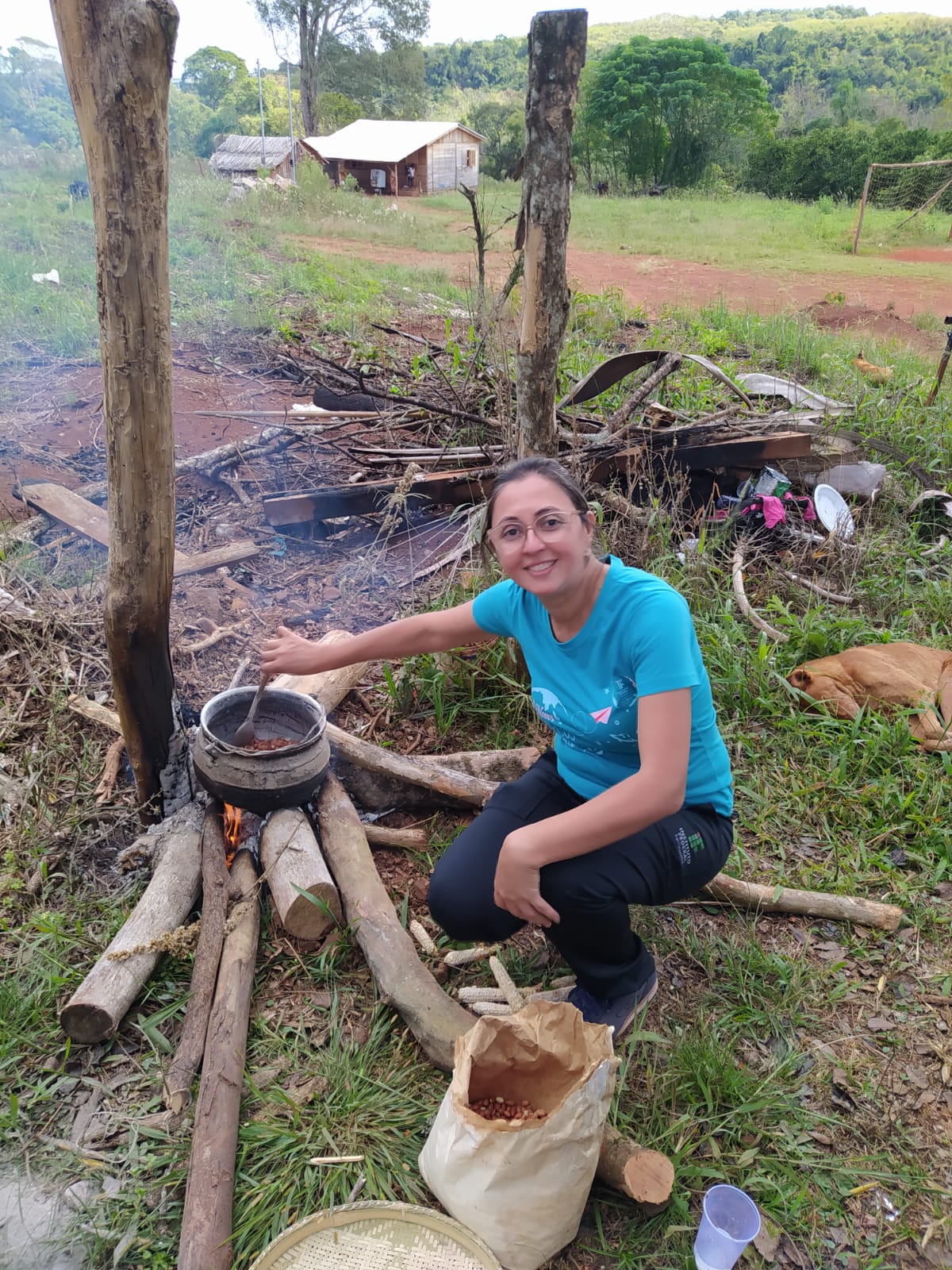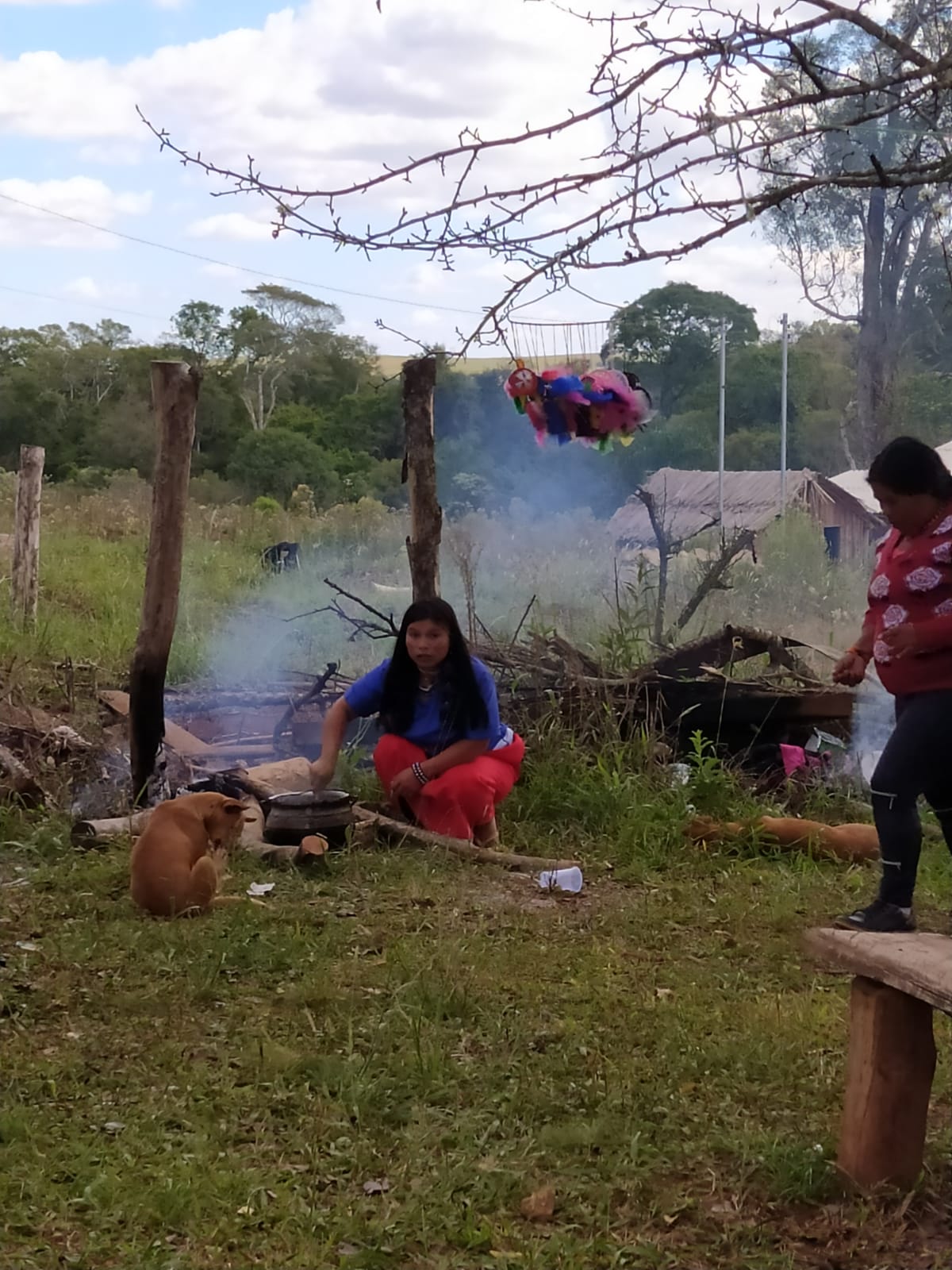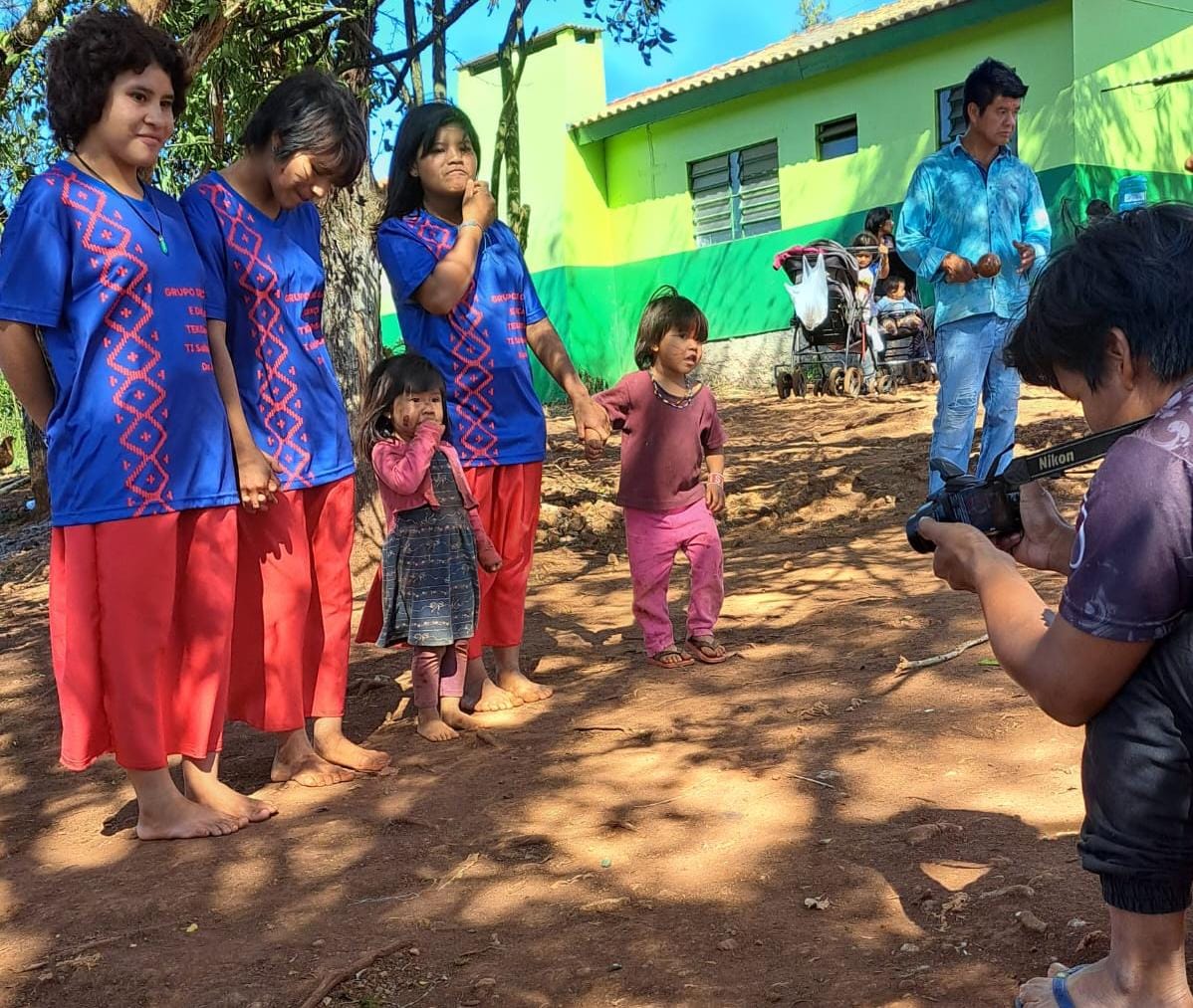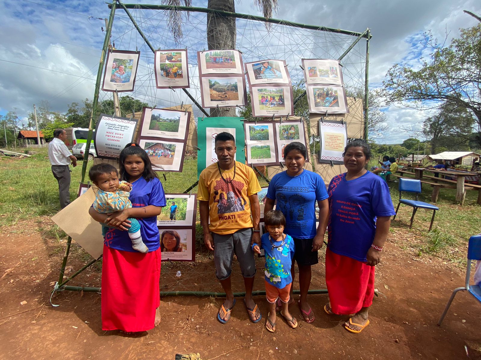 Janice, Marciano e Laís com indígenas Mbyá Guarani e professoras que atuam na aldeia