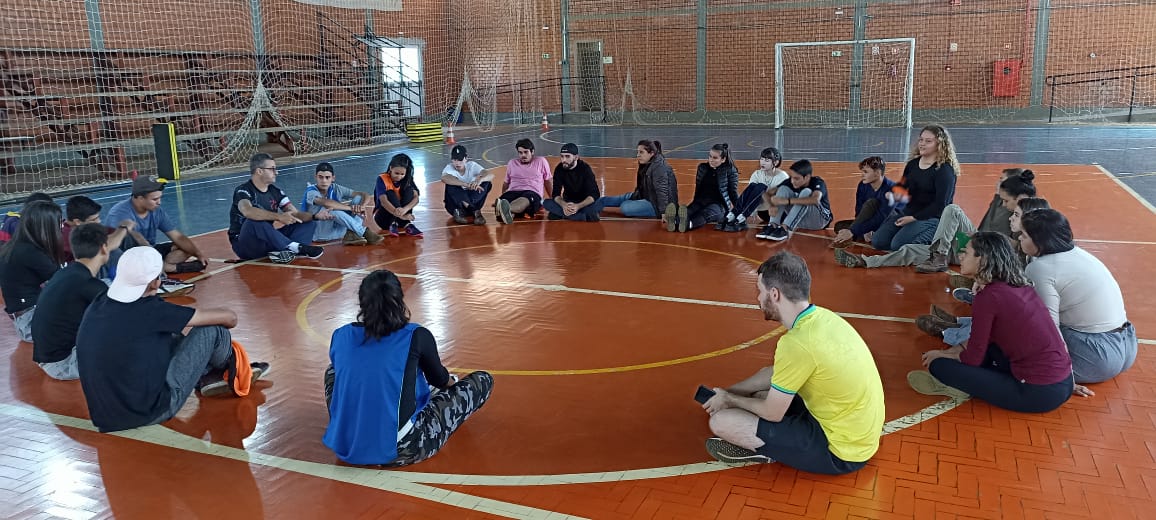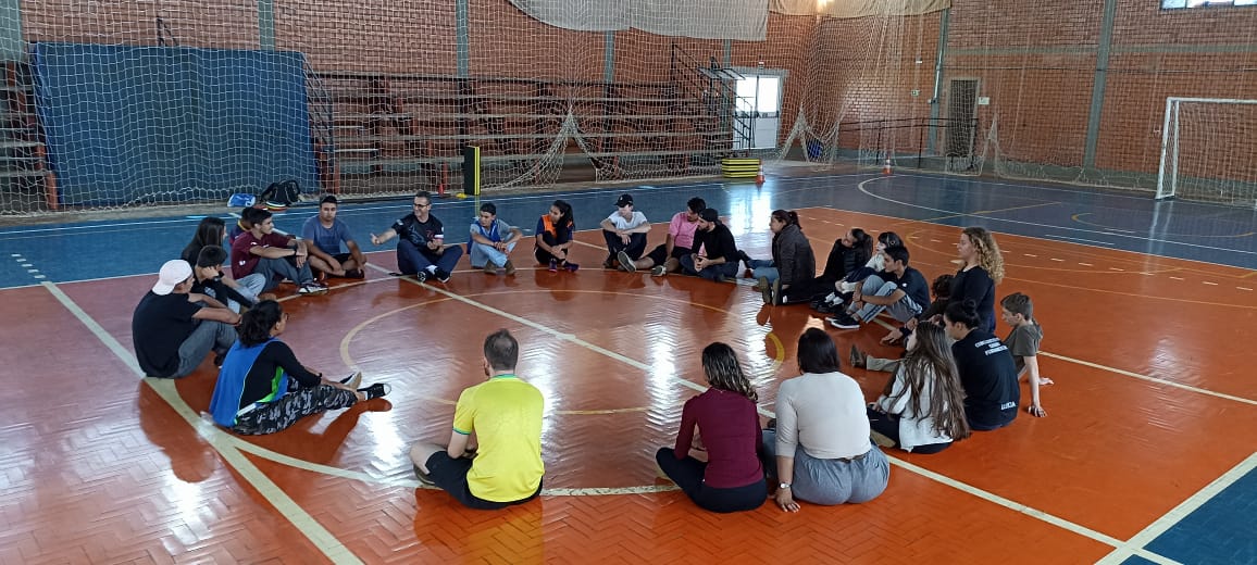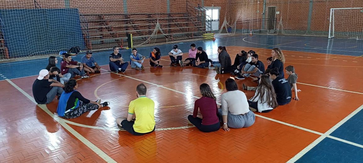No dia 17 de abril, foi realizada a primeira oficina itinerante no IFFar – Campus São Vicente do Sul, com estudantes do 2º ano do curso técnico em Manutenção e Suporte em Informática integrado ao ensino médio, juntamente com os professores de Educação Física, Pedro Picoli, Haury Temp e Evelize Dorneles Minuzzi.
