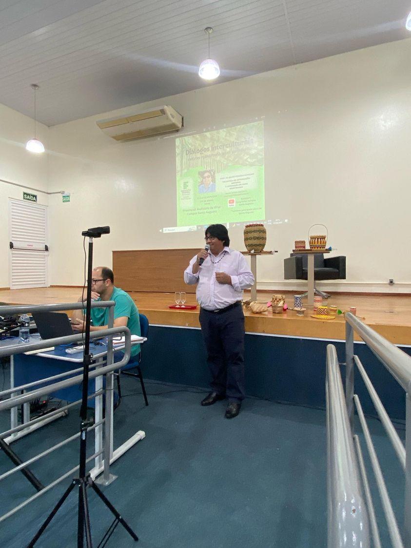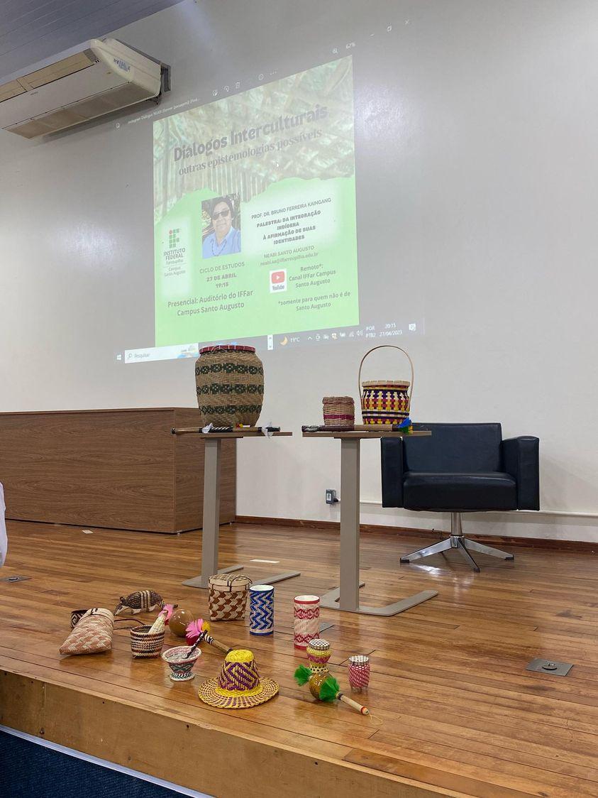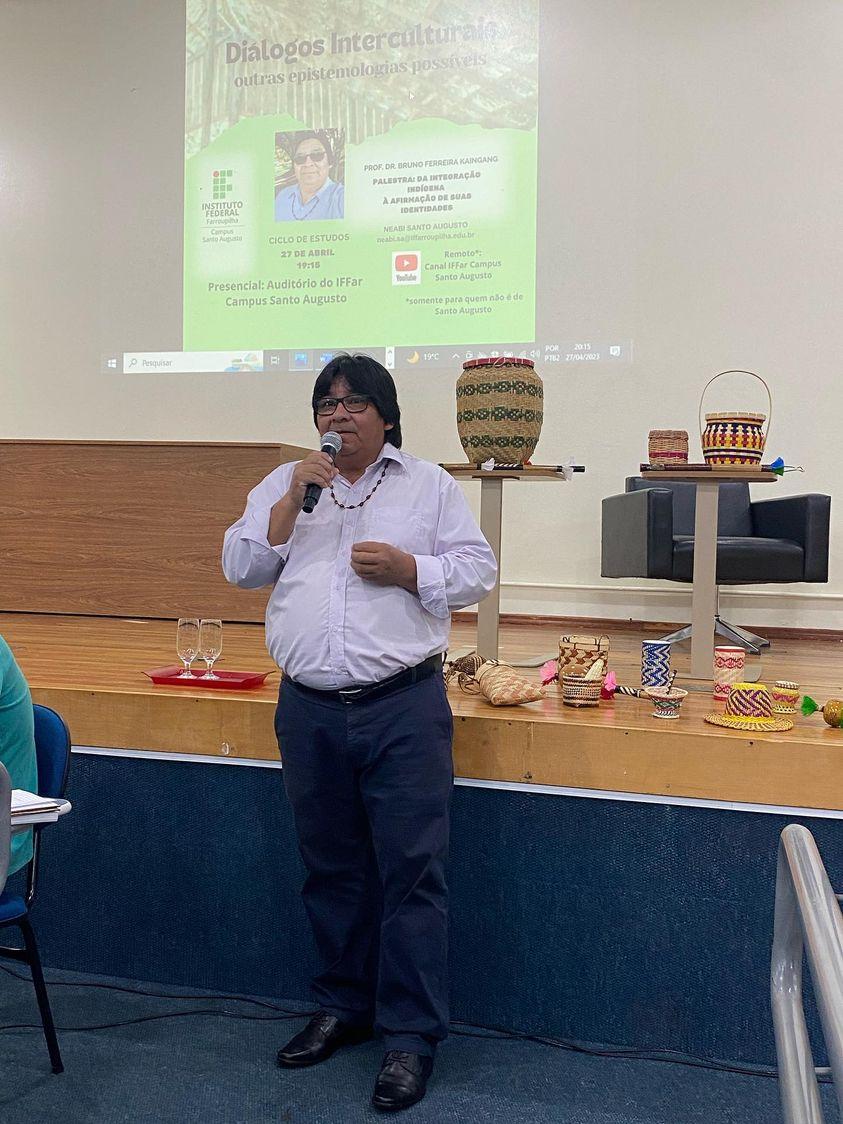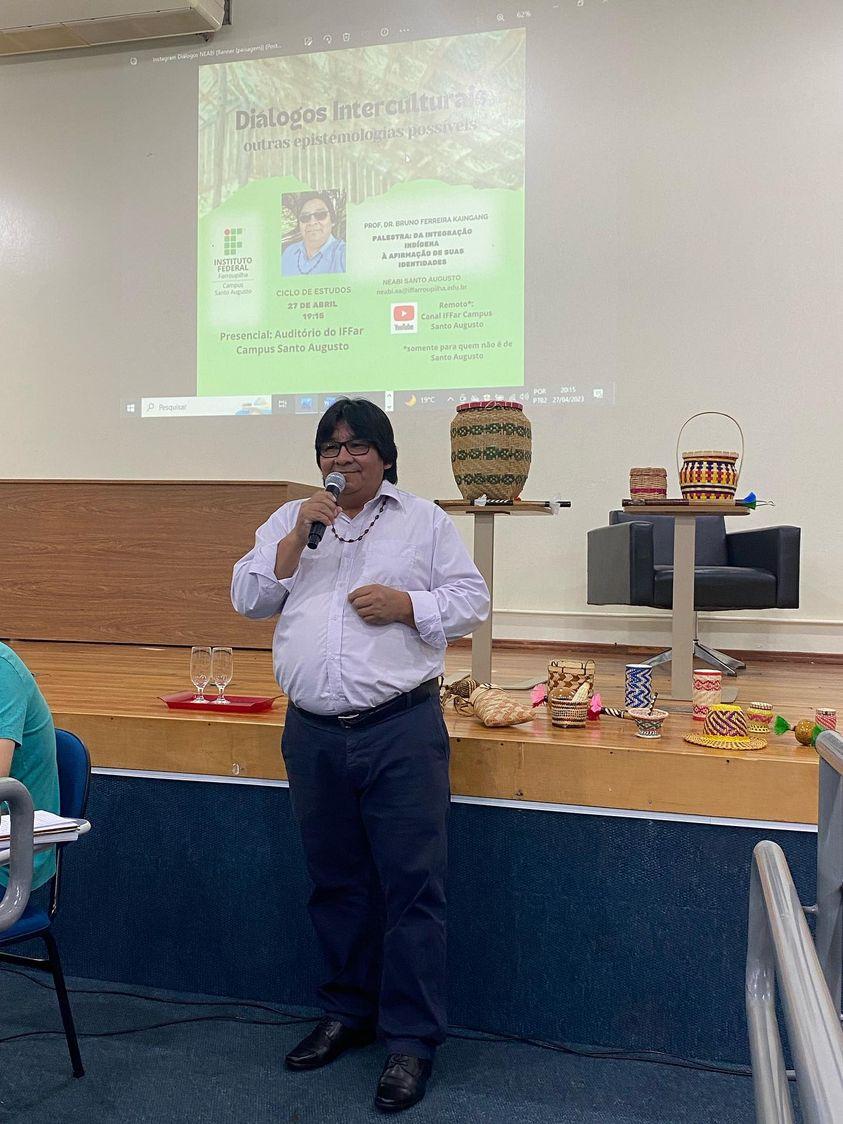 Foi realizado na quinta-feira, dia 27, às 19h15 no auditório do IFFar – Campus Santo Augusto, o primeiro encontro do Ciclo de Estudos das Culturas Indígenas, com a palestra ministrada pelo professor Dr. Bruno Ferreira Kaigang, tendo como tema: Da integração indígena à afirmação de suas identidades.