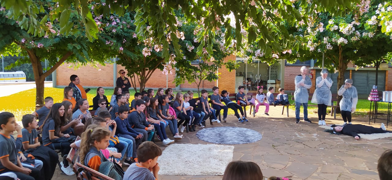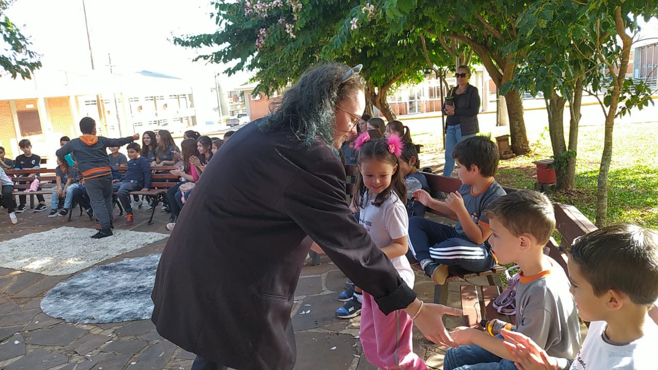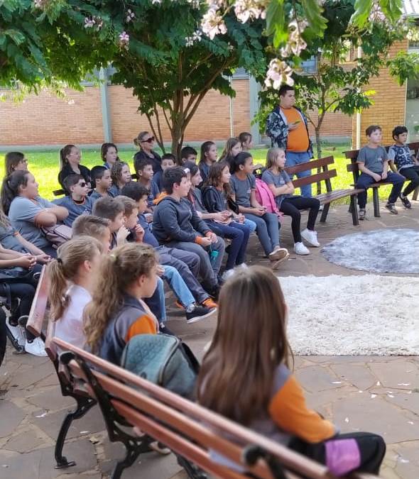 No dia 17 de maio, o projeto de extensão “Biblioteca em Ação: contar, encantar e educar”, desenvolvido no IFFar – Campus Santo Augusto, recebeu a visita de alunos do 1º ao 5º ano da Escola Municipal de Ensino Fundamental Vó Maria, de São Valério do Sul, acompanhados pelo professor Felipe Saggin, egresso da Licenciatura em Ciências Biológicas.