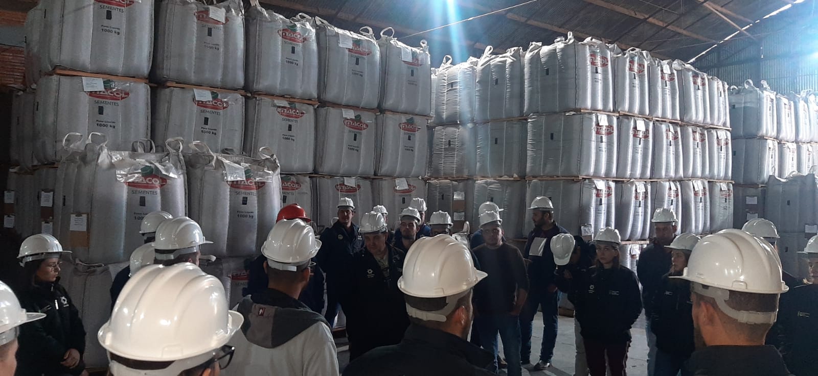 À tarde, dentro da disciplina de Produção e Tecnologia de Sementes, ministrada pelo professor Ricardo Paraginski, foi realizada a visita na Imacol Sementes de Santo Augusto. Na oportunidade, acompanhados do responsável técnico, o Engenheiro Agrônomo João Moura e do Representante Comercial, o Engenheiro Agrônomo Gabriel Moura (egresso do curso Técnico em Agropecuária do IFFar – Campus Santo Augusto), os acadêmicos visitaram a estrutura de recebimento de sementes da empresa, a Unidade de Beneficiamento de Sementes (UBS) em pleno funcionamento, onde estavam sendo beneficiadas sementes de soja e também a parte de armazenamento de sementes da empresa.