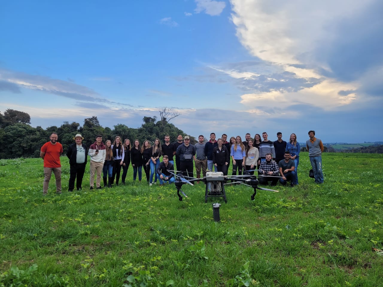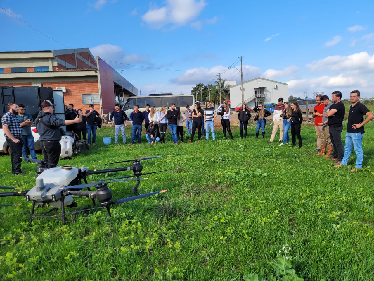 No dia 22 de junho, a turma participou de uma demonstração do Drone de Pulverização da empresa Jbs Pulverização Agrícola de Três de Maio. Segundo a Embrapa, o drone é uma ferramenta promissora de pulverização e pode trazer benefícios imediatos, como tirar o aplicador de dentro da lavoura no momento da aplicação, principalmente o que usa o pulverizador costal; não causar amassamento da cultura; não depender das condições do solo para entrar na lavoura; utilizar menos água; não utilizar combustíveis fósseis; rapidez de aplicação em pequenas áreas; complementar a pulverização tratorizada e com o avião em áreas acidentadas, com obstáculos e em aplicação localizada, de acordo com mapas de aplicação, no contexto de agricultura de precisão.
