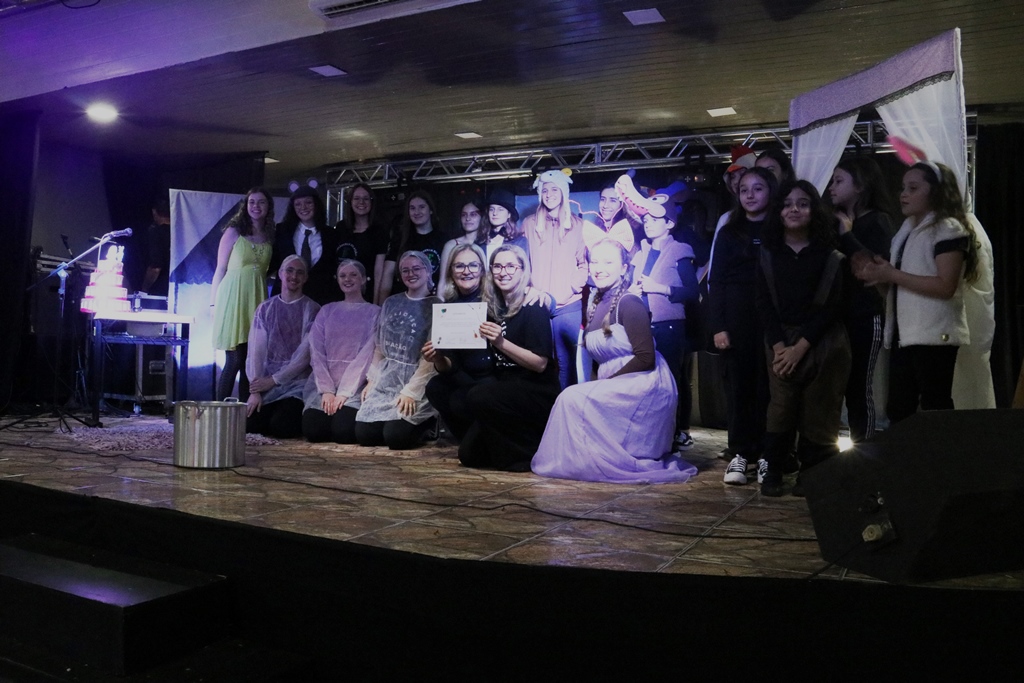 O projeto “Biblioteca em Ação: Contar, encantar e educar” é desenvolvido desde 2011 no IFFar – Campus Santo Augusto, buscando incentivar a leitura e promover a cultura, sob a coordenação da bibliotecária Daniela d‘Acampora. O grupo de contadores do projeto, formado por estudantes da instituição, se apresentou na Mostra de Artes na manhã de sexta-feira. Na ocasião, foram apresentadas de maneira teatralizada, as seguintes histórias infantis: “O Gato Xadrez” de Isa Mara Lando, “História Bela do Gato e da Panela” de Jonas Ribeiro, o poema “A Bailarina” de Cecília Meireles e “O Casamento da Dona Baratinha” de Ana Maria Machado.