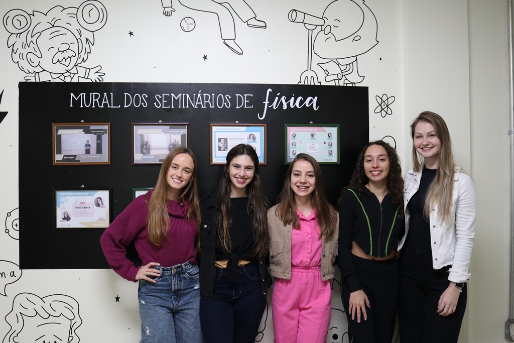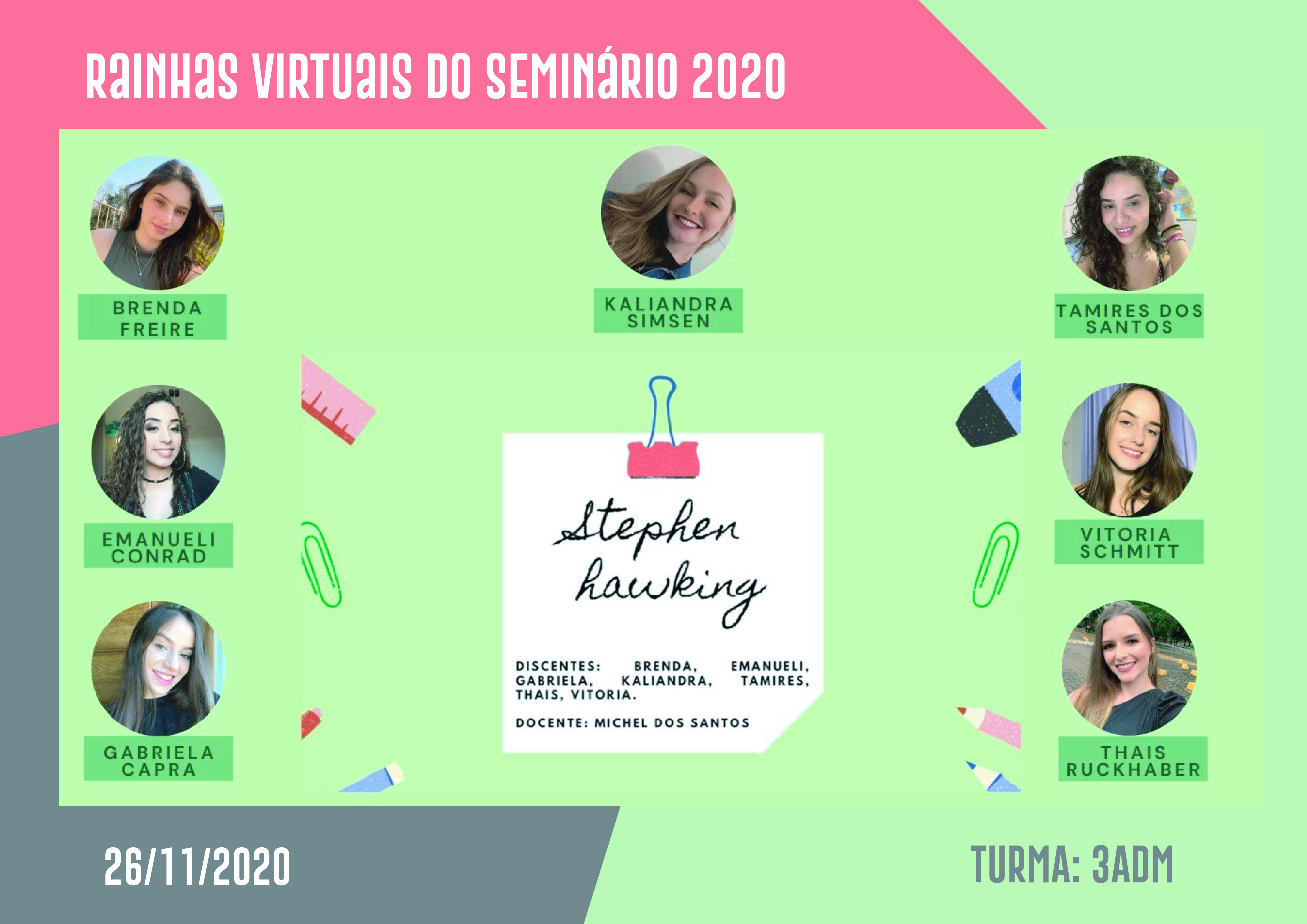 2020 - Brenda Freire, Emanueli Conrad de Lima, Gabriela Capra Avila, Kaliandra Luiza Simsen, Tamires dos Santos, Thais Roberta Schneider Ruckhaber e Vitoria Carolina Schmitt com o seminário sobre Stephen Hawking;
