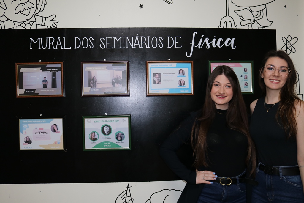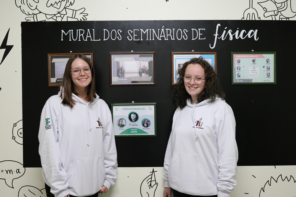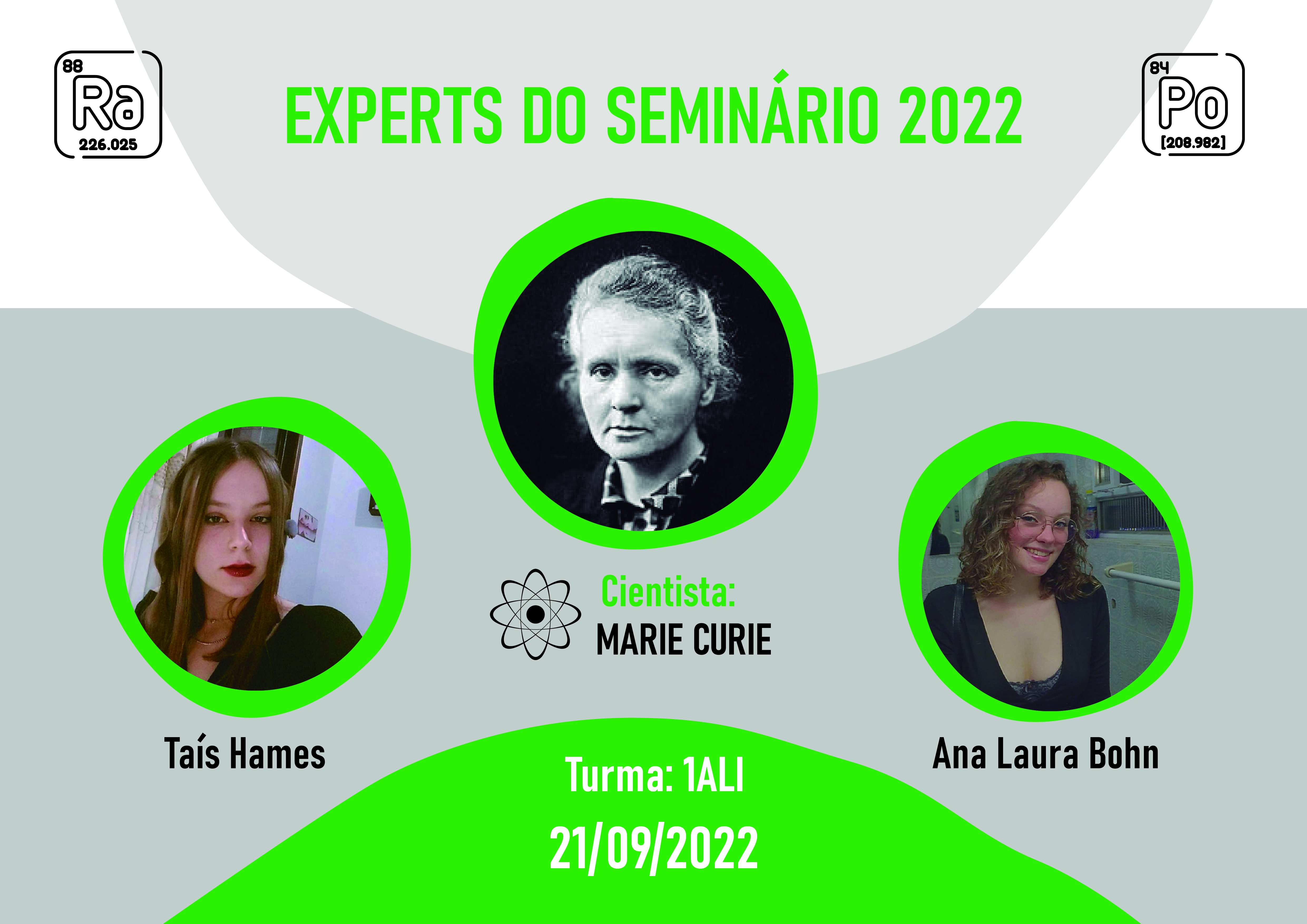 2022 - Ana Laura Bohn Paplowski e Taís Binsfeld Hames com o seminário sobre Marie Curie.