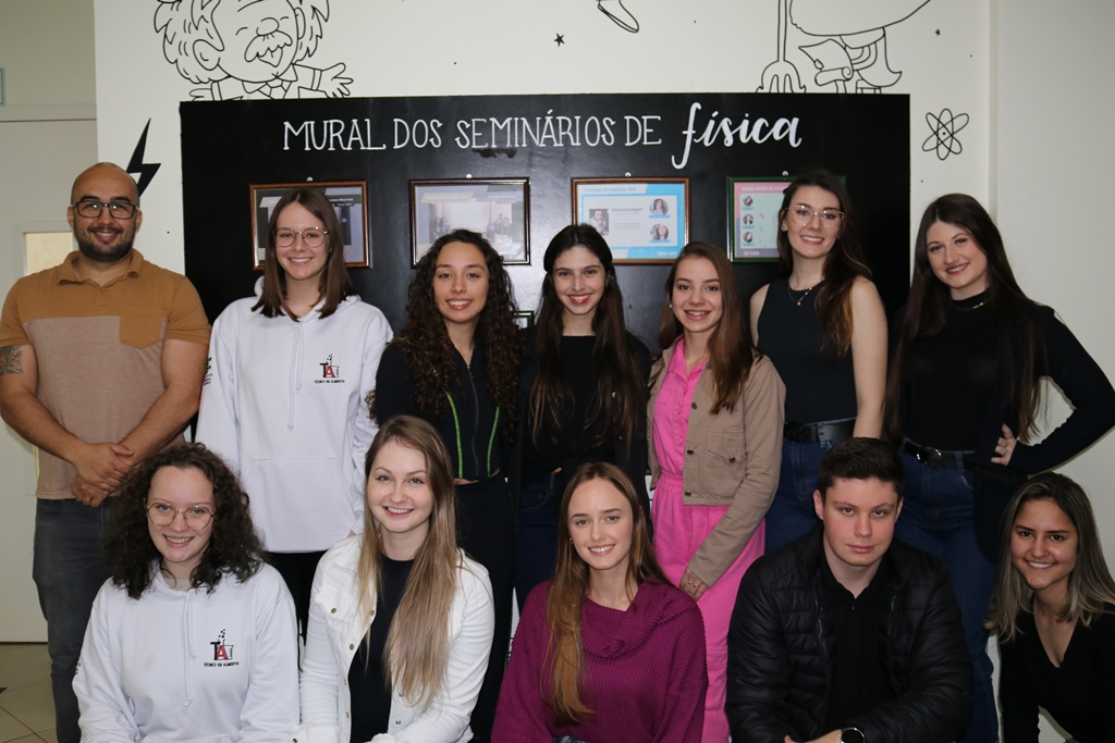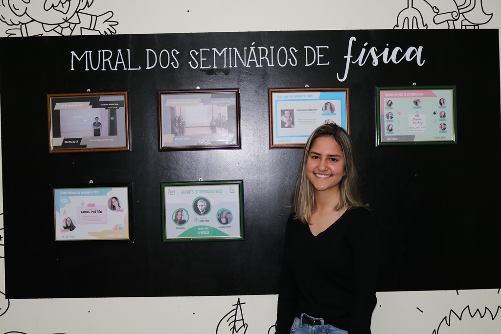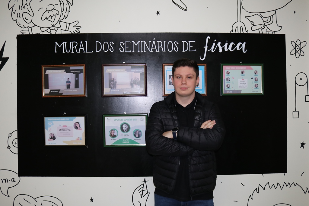Vitoria Carolina Schmitt: tenho 21 anos e atualmente estou no 6º semestre do curso de Nutrição na UFSM, campus de Palmeira das Missões. O período em que estive cursando o ensino médio no IFFar me marcou em vários aspectos e as apresentações de seminário nas aulas de física representam uma dessas vivências. Ao longo dos três anos de ensino médio, eu e meu grupo ganhamos como melhor seminário de física nos anos de 2018 e 2020, onde escolhemos físicos que marcaram a história e desenvolvemos apresentações sobre os mesmos. Essa atividade nos proporcionou um grande desenvolvimento nas habilidades de escrita e apresentação de trabalhos, melhorando nossa comunicação para transmitir o conhecimento de forma clara. Os seminários nos deram incentivo e oportunidade de desenvolver a habilidade de pesquisa, nos dando também autonomia para sermos criativas na forma de explicar esse conteúdo para os colegas. Certamente isso contribuiu para o que somos hoje, facilitando as atividades na vida acadêmica e contribuindo para o nosso desenvolvimento como pessoa e como futuras profissionais no caminho que escolhemos seguir. Agradeço muito ao professor Michel pelo reconhecimento ao criar o Mural dos Seminários de Física e por nos proporcionar esse encontro. Com certeza vai ficar marcado na memória de cada um de nós, junto a todos os momentos que vivemos no IFFar.