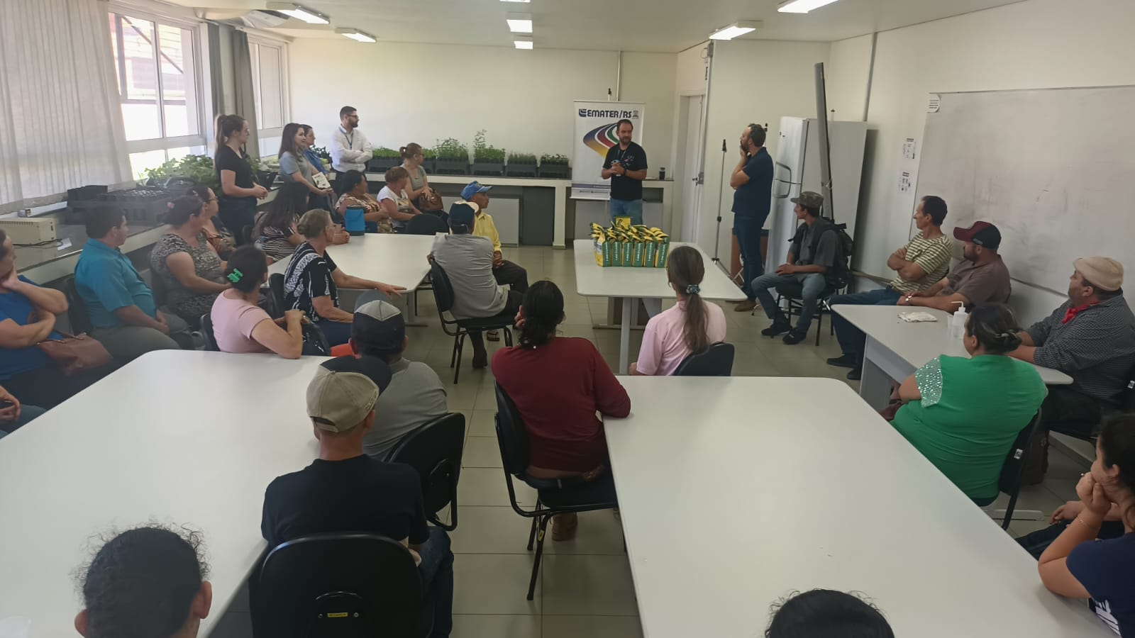 O IFFar – Campus Santo Augusto foi sede na tarde de ontem, 10 de outubro, de um encontro realizado pela Emater/RS-Ascar com um grupo de 31 famílias rurais em vulnerabilidade social, inscritas no Cadastro Único, que foram beneficiadas com o Programa Fomento Rural – etapa estiagem.