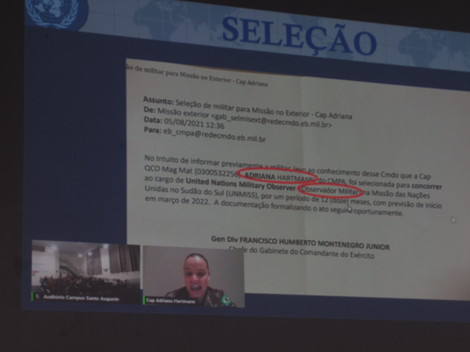 O evento teve início na segunda-feira, 09 de outubro, às 19h, com a palestra “Missão de Paz da ONU no Sudão do Sul: o que podemos aprender?”, ministrada pela professora Ma. Adriana Hartmann.