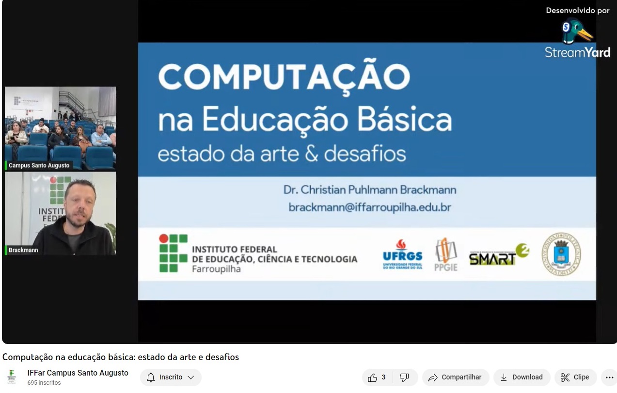 Na quarta-feira, dia 11, aconteceu o encerramento do evento, com as palestras “O que faz um professor? A docência de um artífice”, com a professora Drª. Franciele dos Anjos Strohhecker, e “Computação na Educação Básica: estado da arte e desafios”, ministrada pelo professor Dr. Cristian Puhlmann Brackmann.
