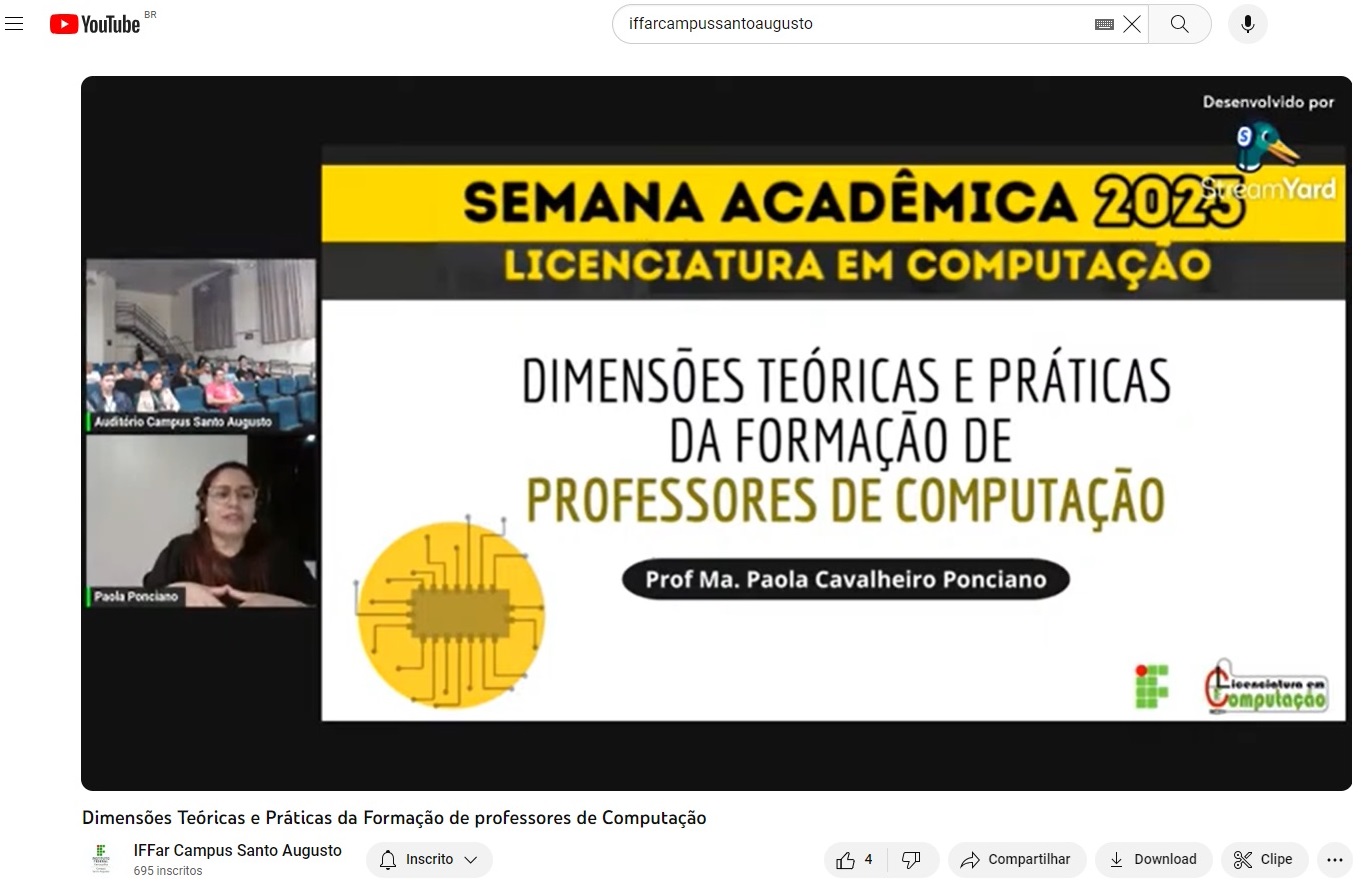 Na terça-feira, dia 10, aconteceu a palestra “Dimensões Teóricas e Práticas da Formação de professores de computação”, com a egressa professora Ma. Paola Cavalheiro Ponciano.