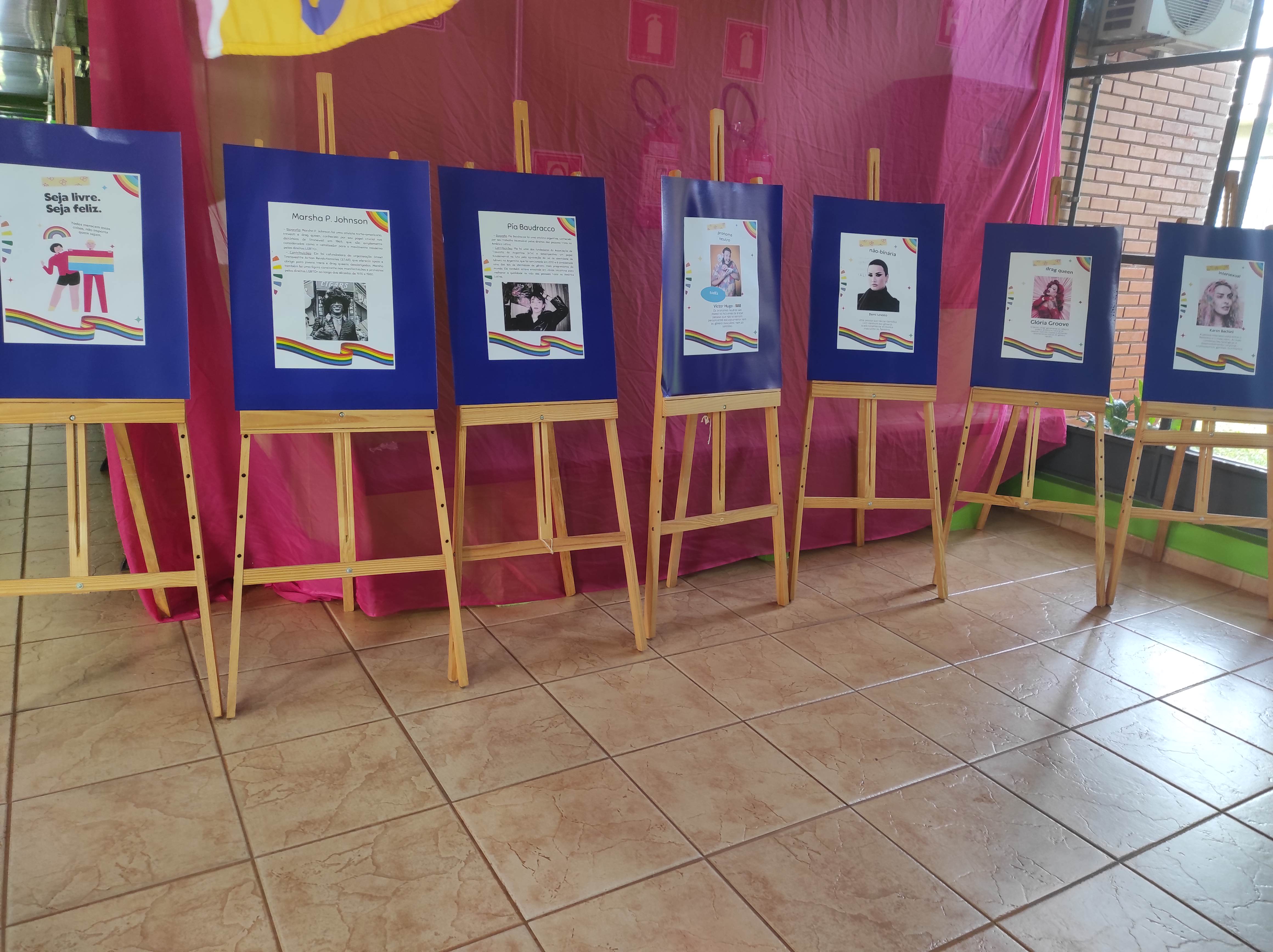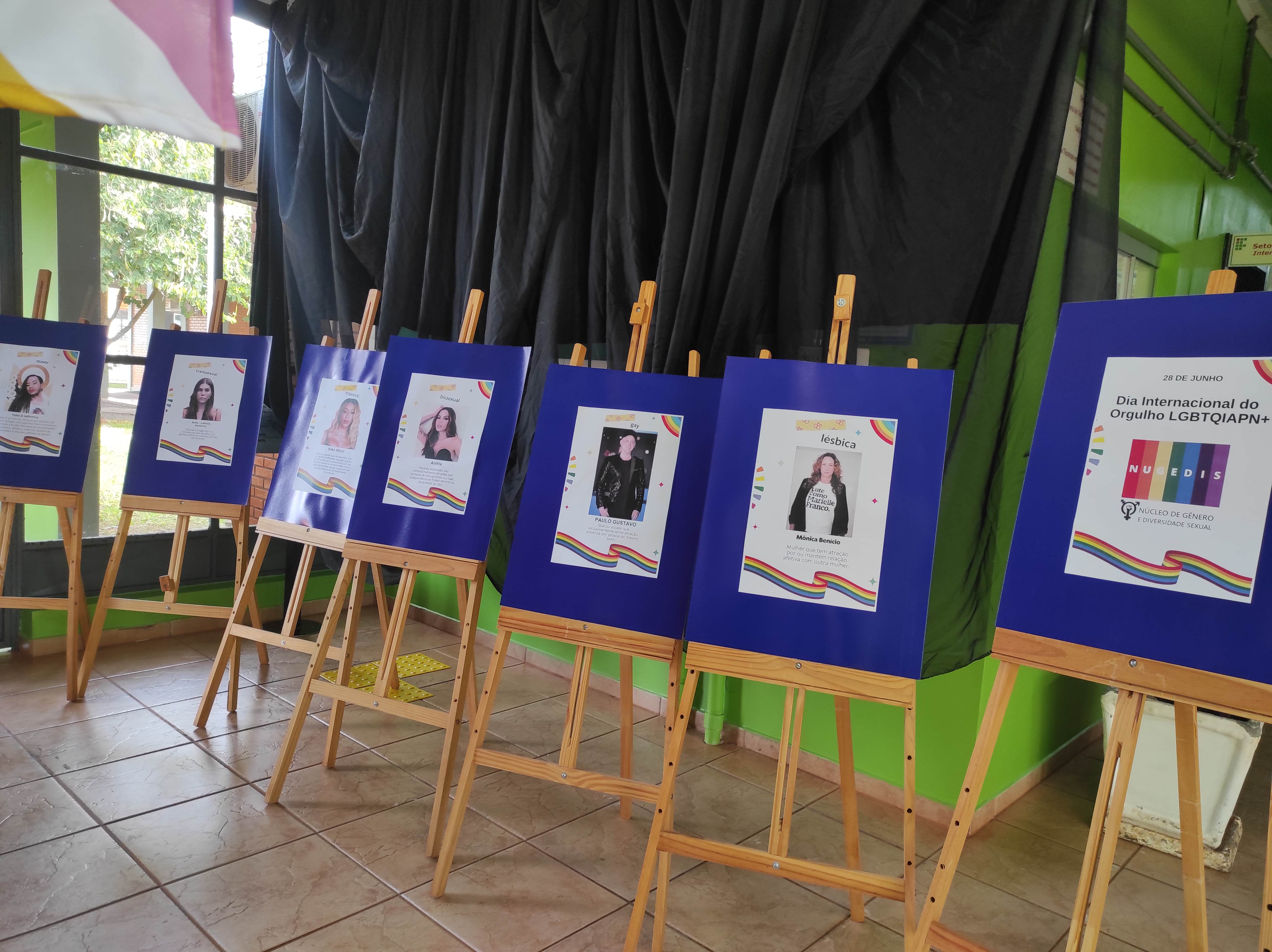 Umas das ações foi uma exposição organizada no corredor do prédio F, com personalidades relevantes para o movimento LGBTQIAPN+, e uma breve descrição de cada uma das letras que compõe a sigla.