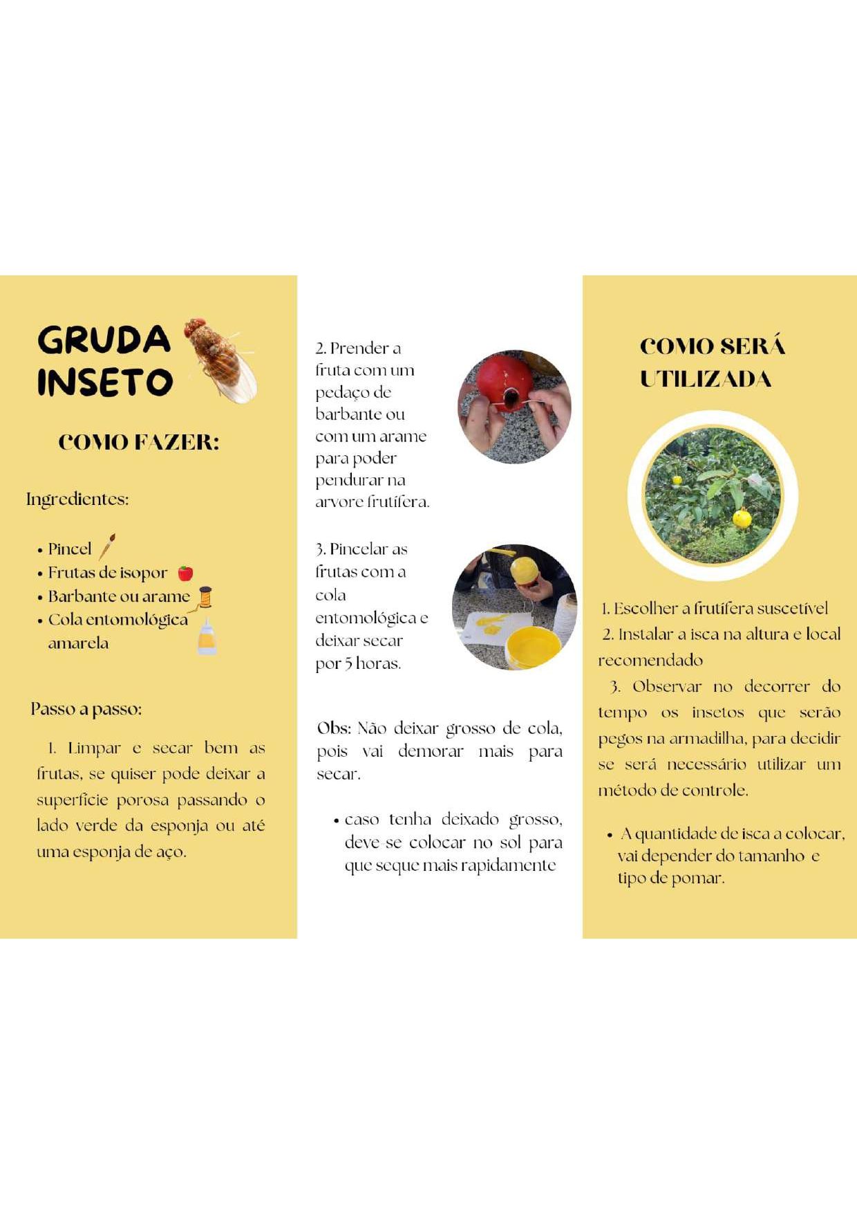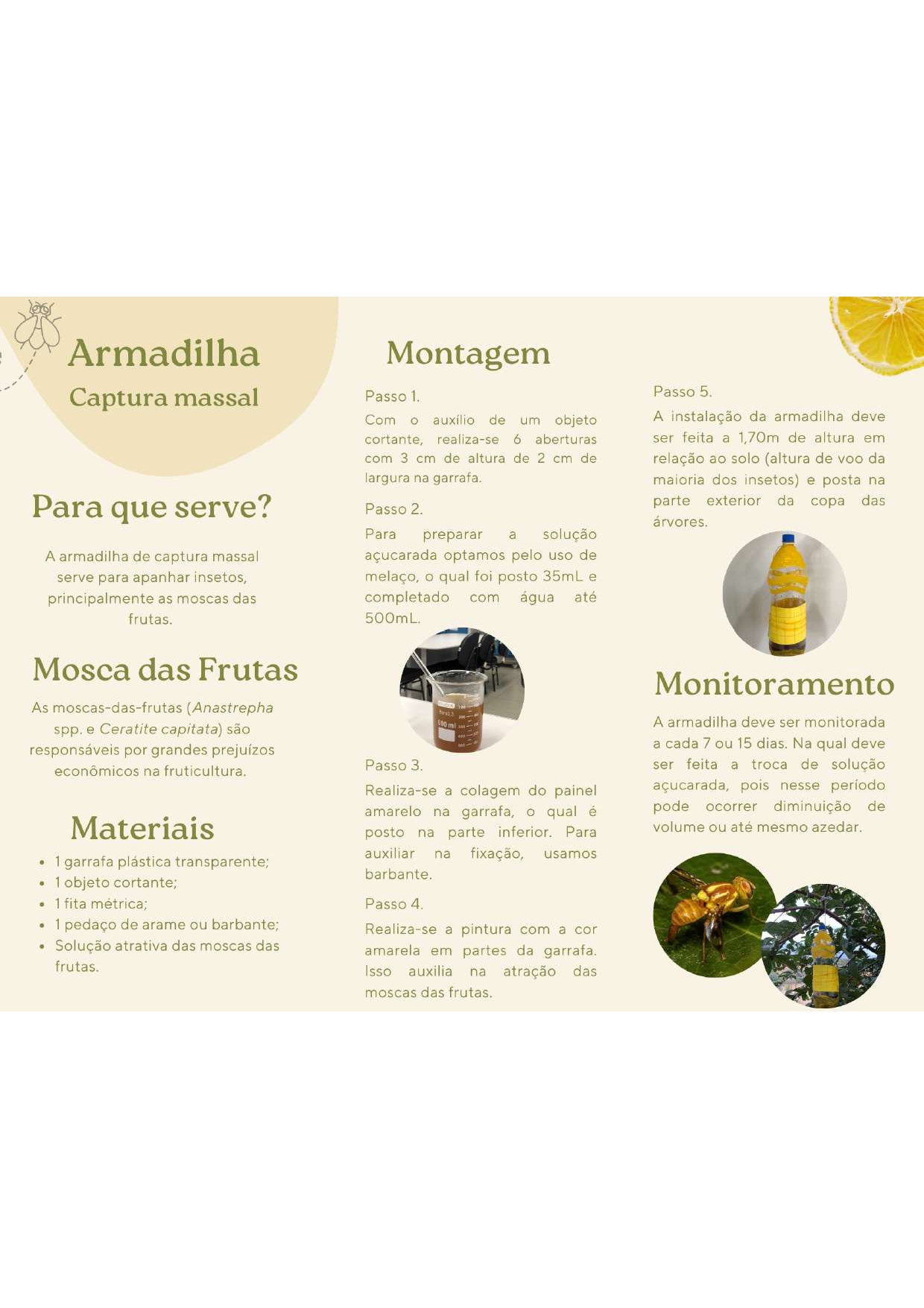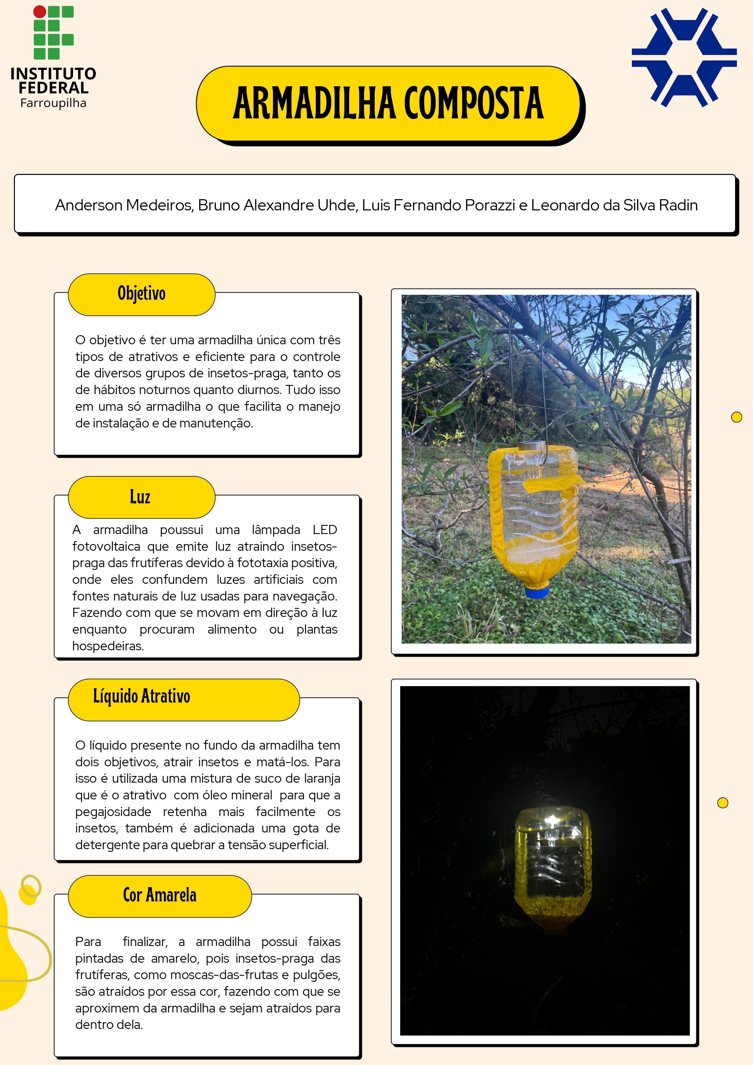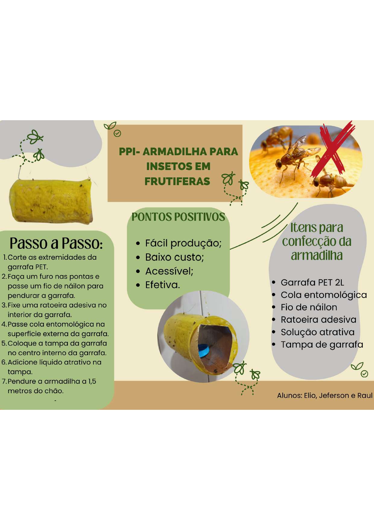 A turma do 5º semestre do curso superior de Bacharelado em Agronomia do IFFar –Campus Santo Augusto, finalizou o projeto de Prática Profissional Integrada (PPI) denominada “Construção de Sistema de Coleta de Pragas e Inimigos Naturais”, desenvolvida dentro das disciplinas de Entomologia (Rafael Bonadiman), Fruticultura (Ricardo Paraginski) e Agricultura de Base Ecológica(Tarcísio Samborski).