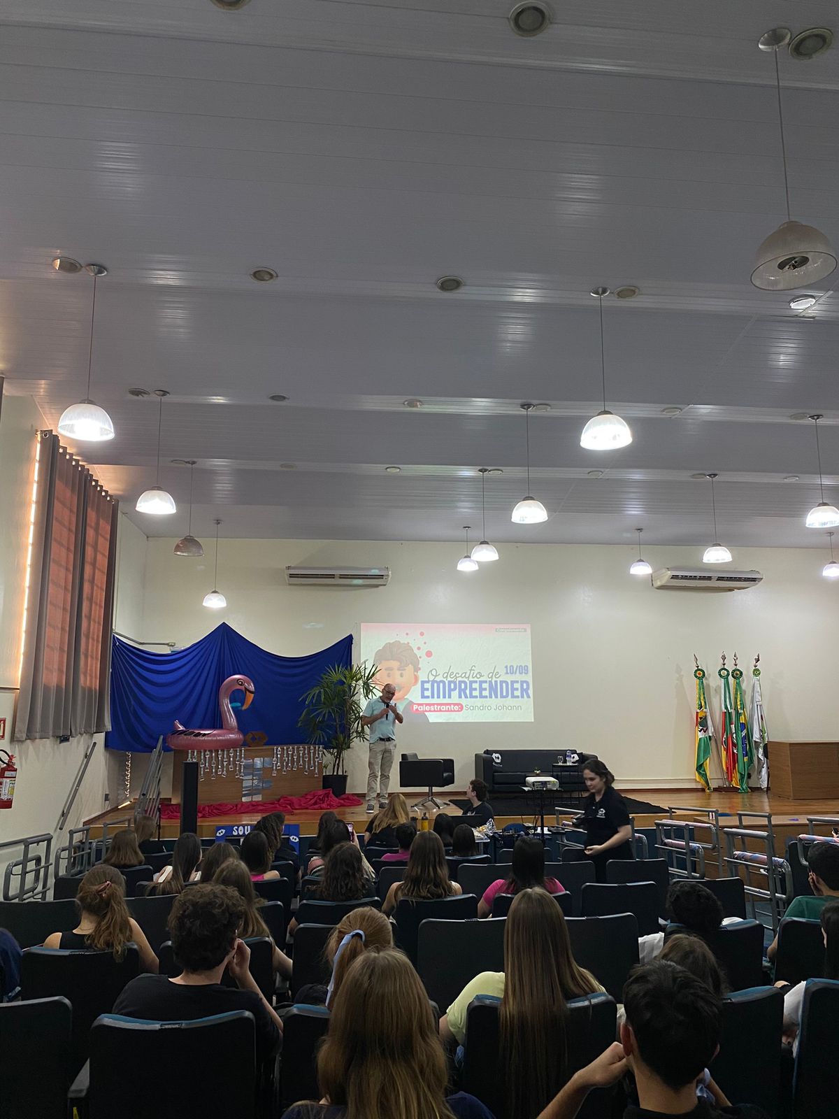 O evento teve início na manhã de terça-feira, dia 08, no auditório, com a abertura e organização dos grupos para a Gincana de Integração. Na parte da tarde, aconteceu a primeira prova da gincana e a palestra de abertura, “O desafio de empreender”, com Sandro Johann.