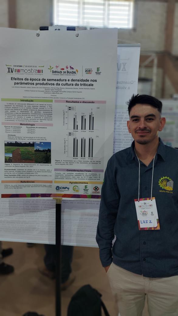 O Campus Santo Augusto esteve representado na Mostra de Pôsteres com quatro trabalhos de Pesquisa, três de Extensão e dois trabalhos de Ensino: