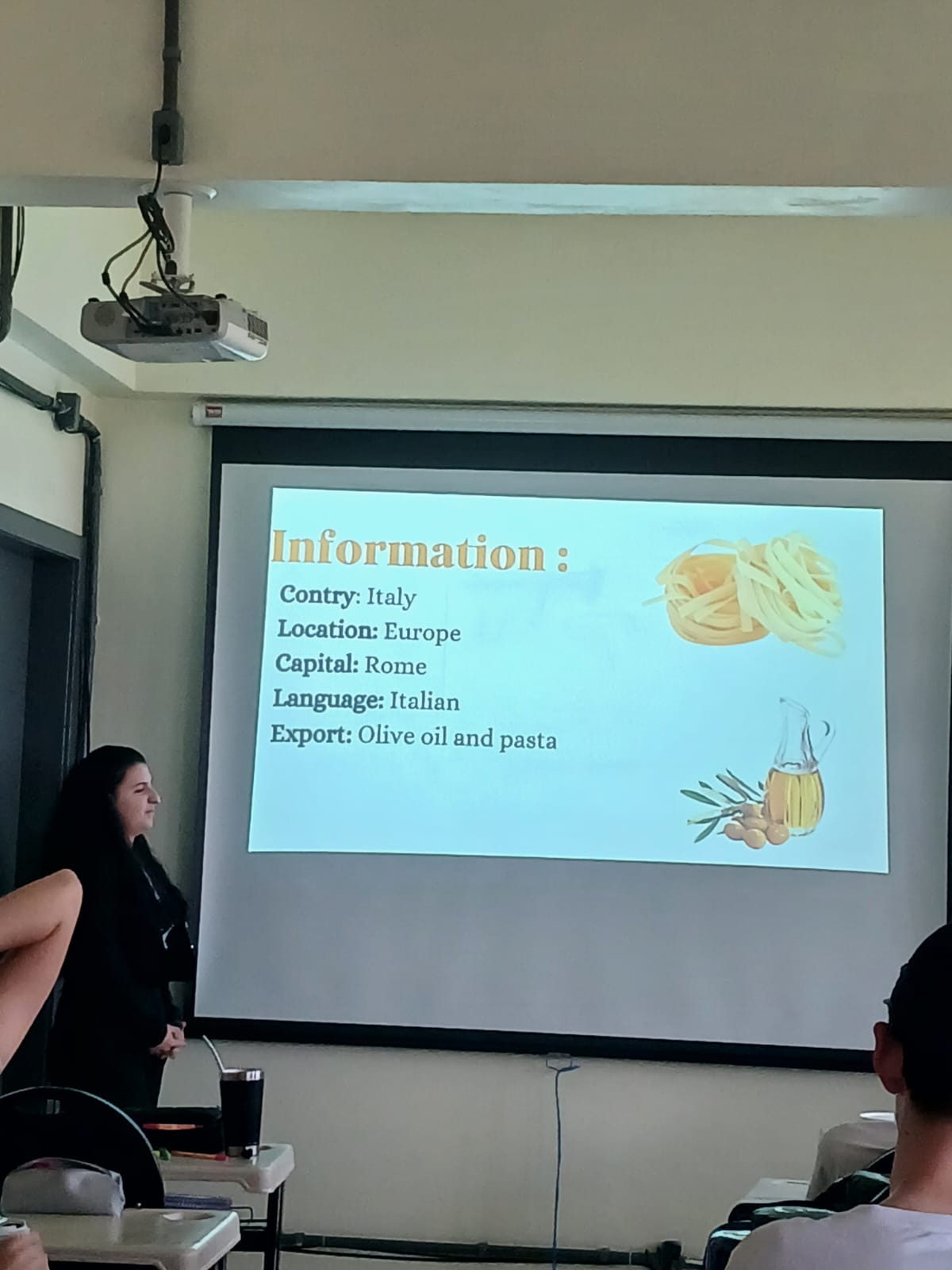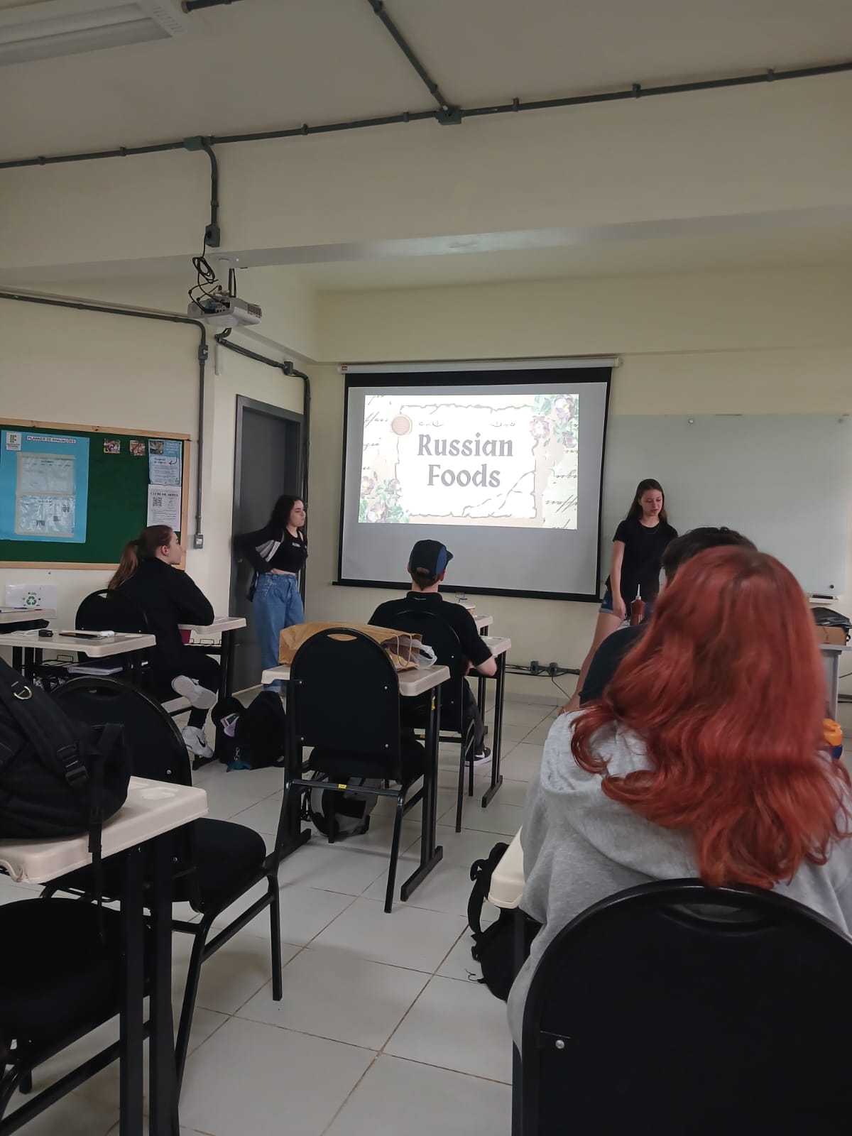 A turma se dividiu em duplas e foram sorteados diversos países do mundo para que fosse realizada uma pesquisa sobre uma comida típica, uma receita, quais alimentos exporta e importa, comidas exóticas e comidas relacionadas à religião, também deveria ser apresentado um vídeo do Youtube de até cinco minutos sobre o país. No final das apresentações todos puderam degustar os pratos com as receitas apresentadas.