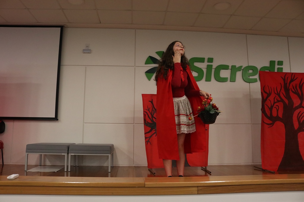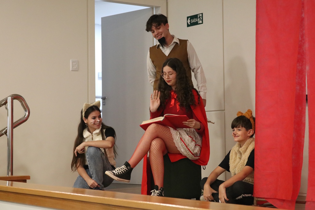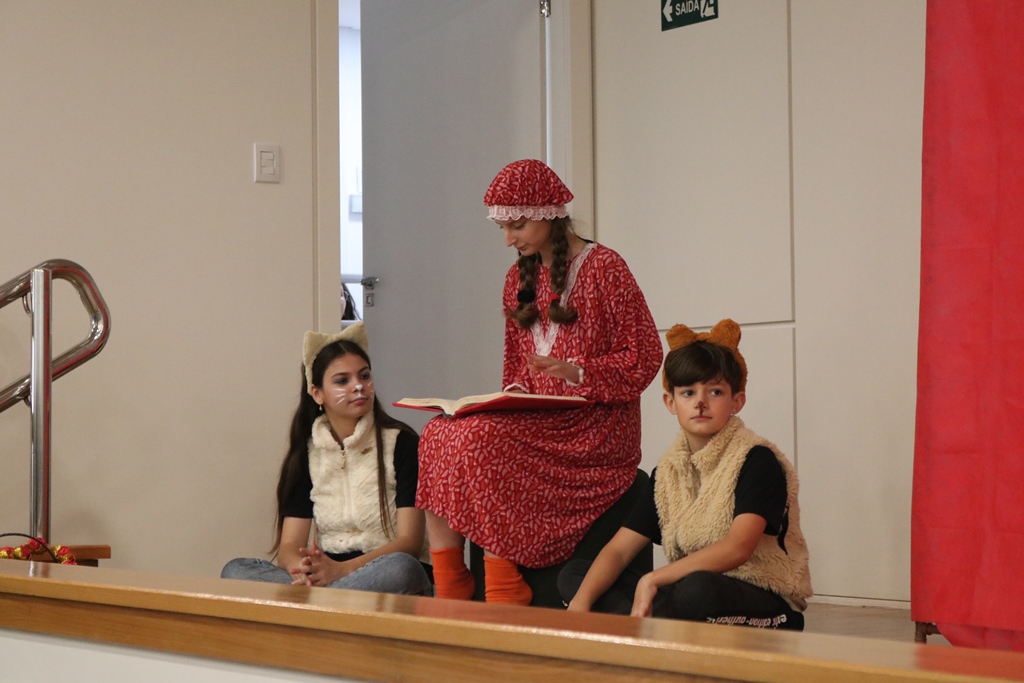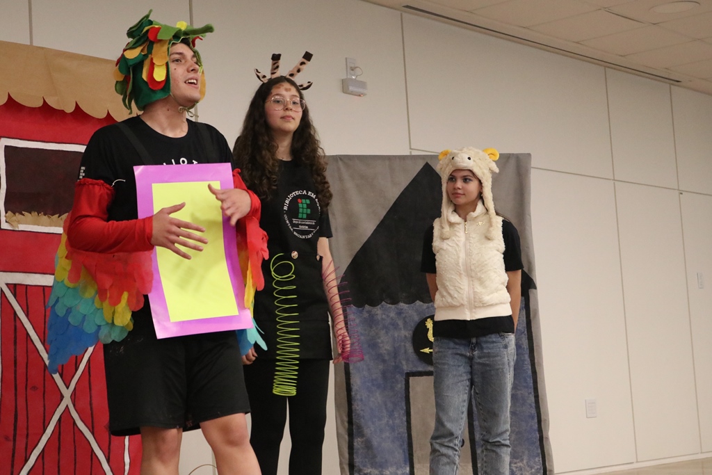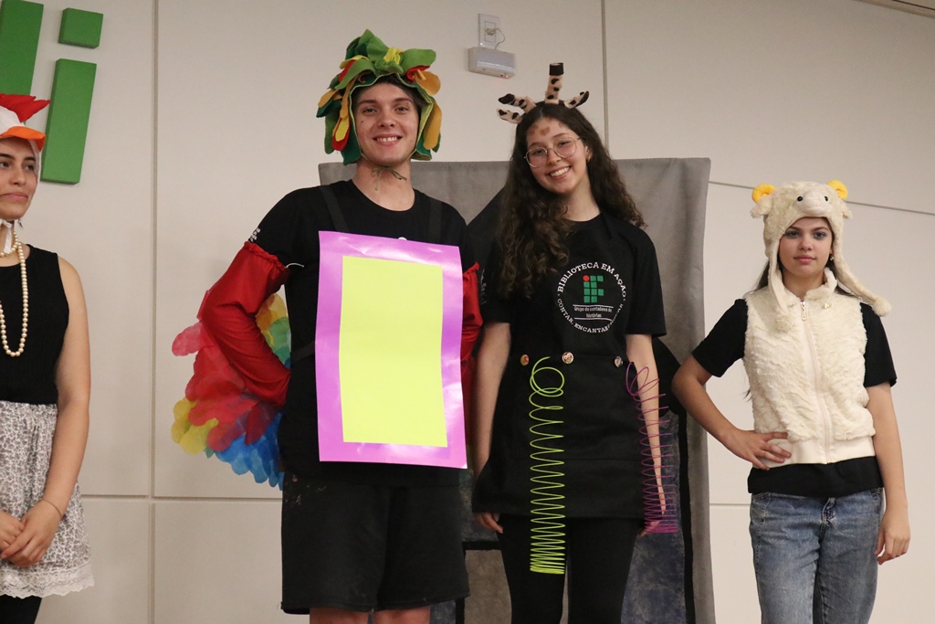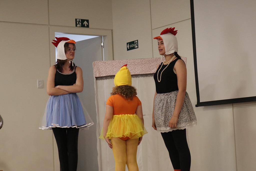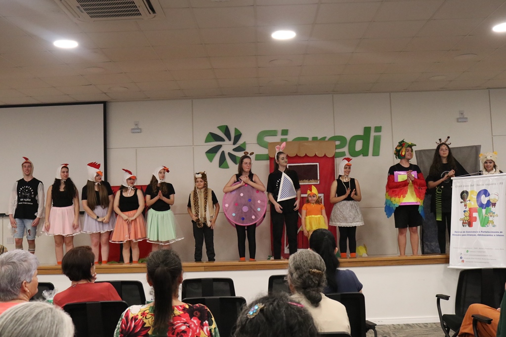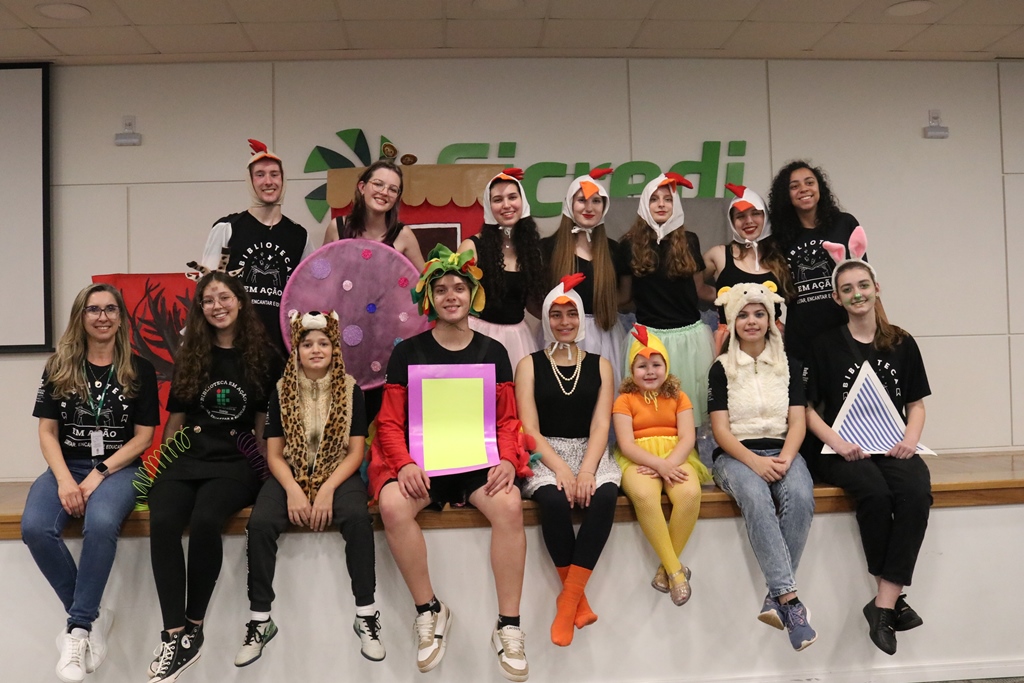 O grupo de contadores de histórias “Contar, encantar e educar”, do Projeto de Extensão Biblioteca em Ação do IFFar – Campus Santo Augusto, coordenado pela bibliotecária Daniela Cristina Paulo d’Acampora, se apresentaram na tarde de quarta-feira, dia 16 de outubro, no auditório do Sicredi de Santo Augusto, durante a abertura da 17ª Semana Municipal da Pessoa Idosa.