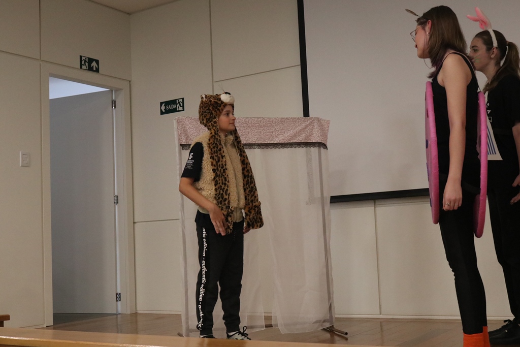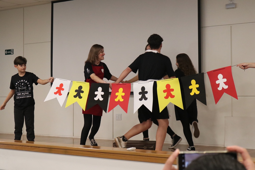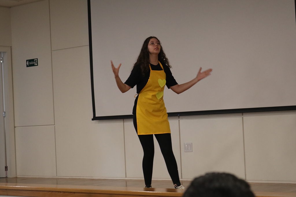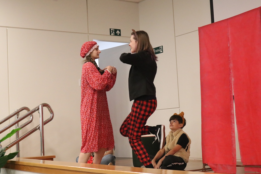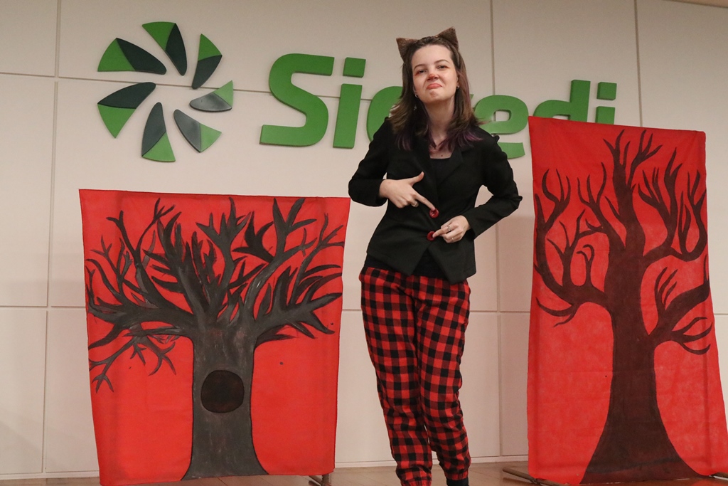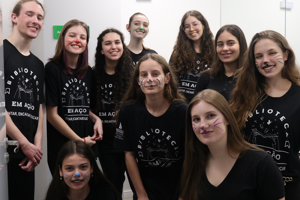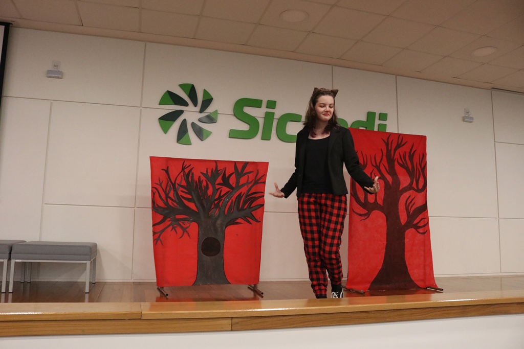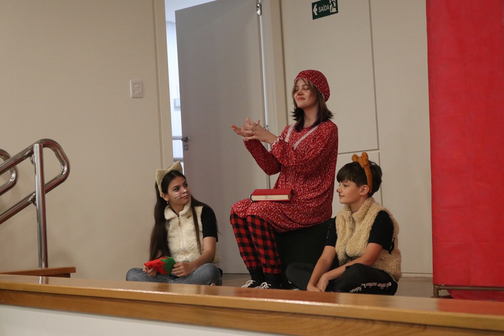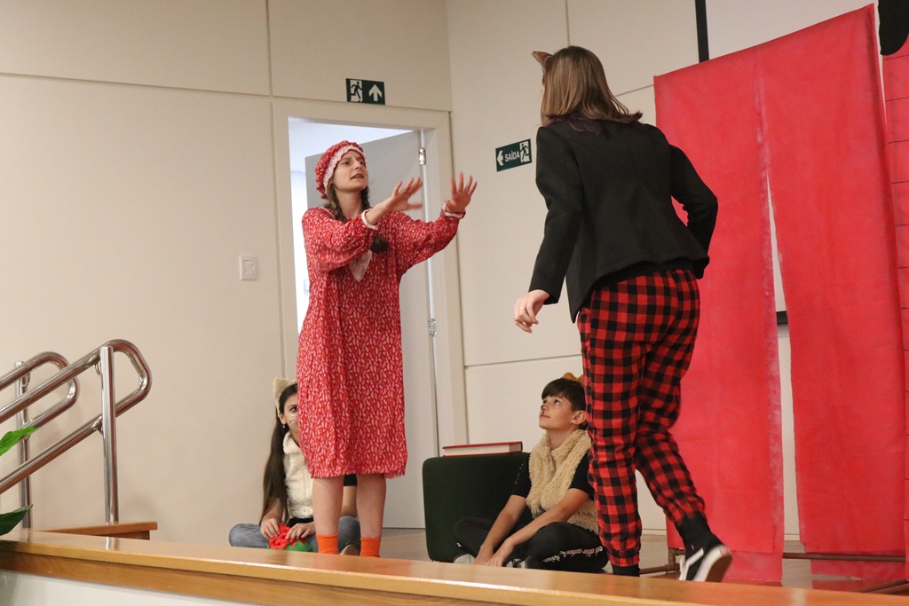 O grupo de contadores de histórias “Contar, encantar e educar”, do Projeto de Extensão Biblioteca em Ação do IFFar – Campus Santo Augusto, coordenado pela bibliotecária Daniela Cristina Paulo d’Acampora, se apresentaram na tarde de quarta-feira, dia 16 de outubro, no auditório do Sicredi de Santo Augusto, durante a abertura da 17ª Semana Municipal da Pessoa Idosa.