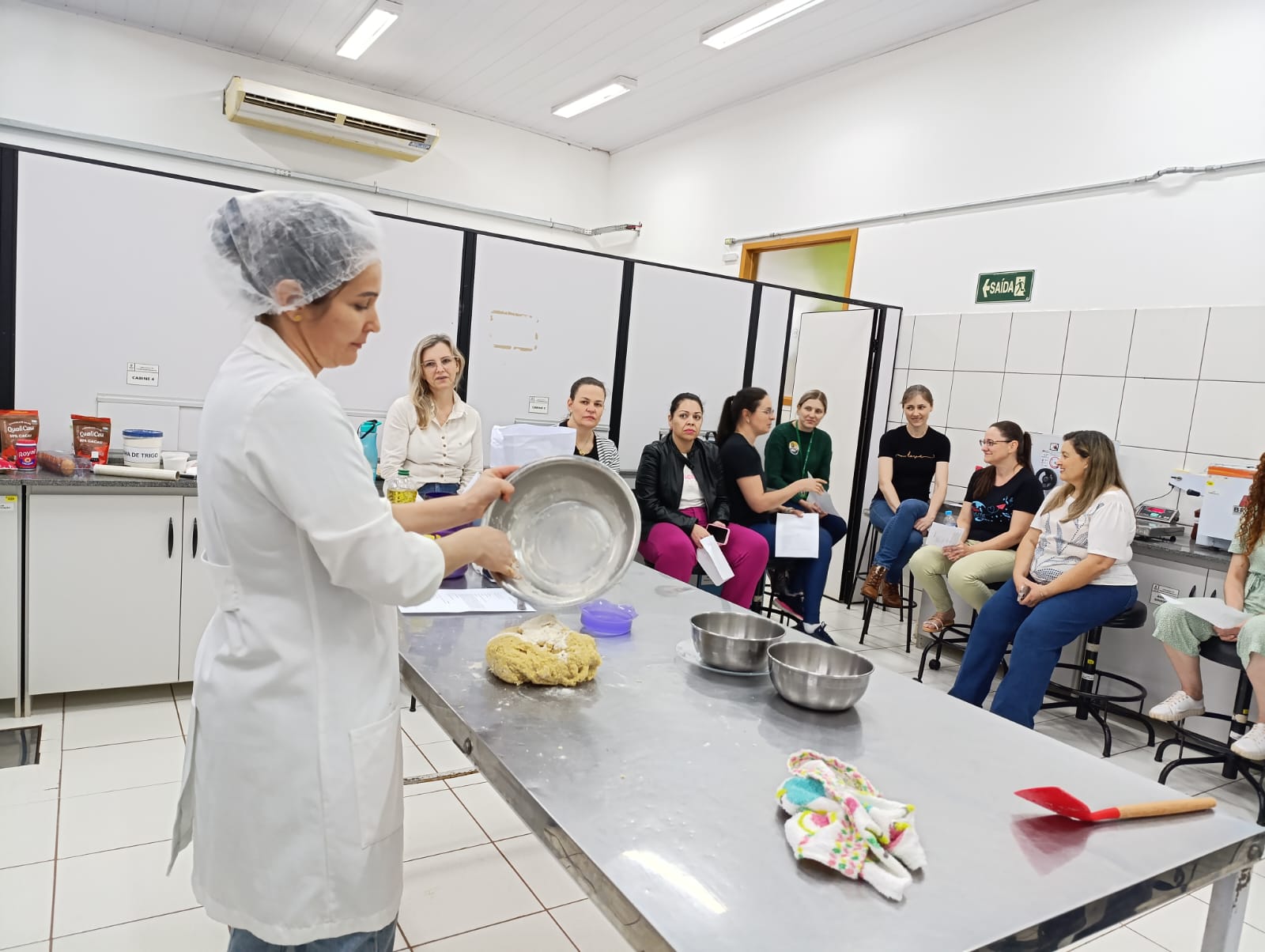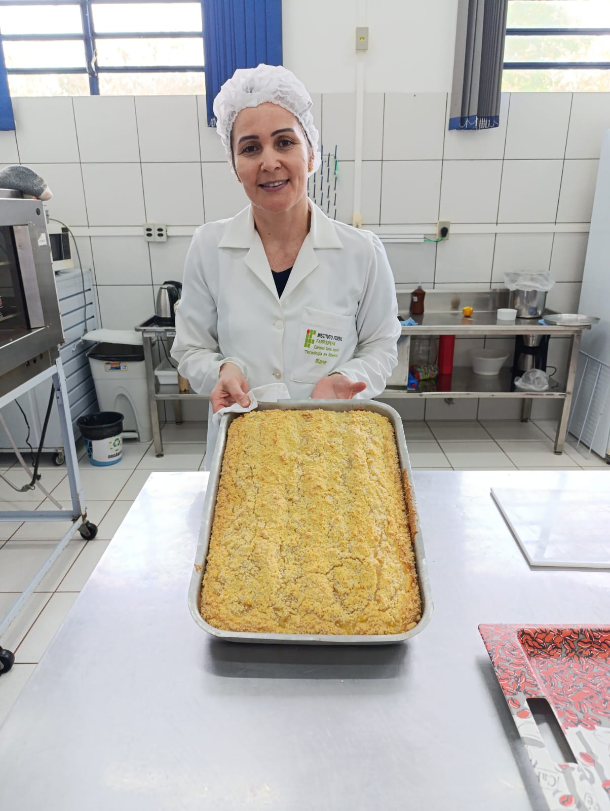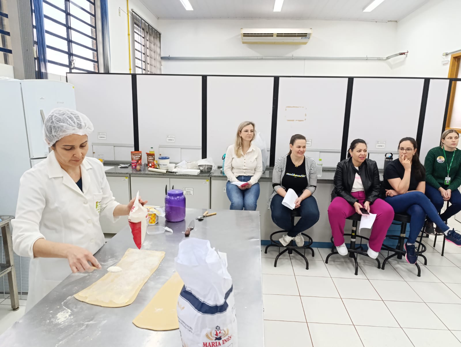 O encerramento da Semana do Servidor aconteceu na tarde de quinta-feira, dia 24, com uma oficina de Cucas e Fatias Húngaras, no laboratório de Panificação, ministrada pela egressa do curso superior de Tecnologia em Alimentos, Iliane Toledo.