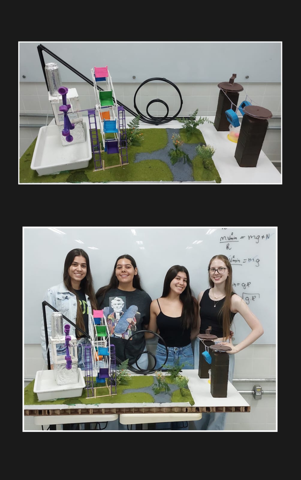 O objetivo da atividade foi explorar a Física de forma criativa e prática, utilizando conceitos como mecânica, óptica, ondas e eletricidade. Cada grupo foi responsável por criar um experimento que demonstrasse os princípios da Física de forma didática, colocando à prova não só o conhecimento, mas também a criatividade e a execução.
