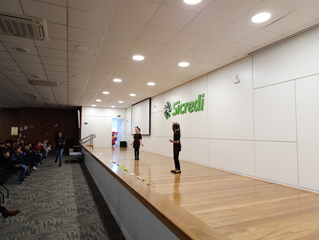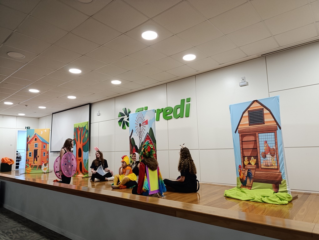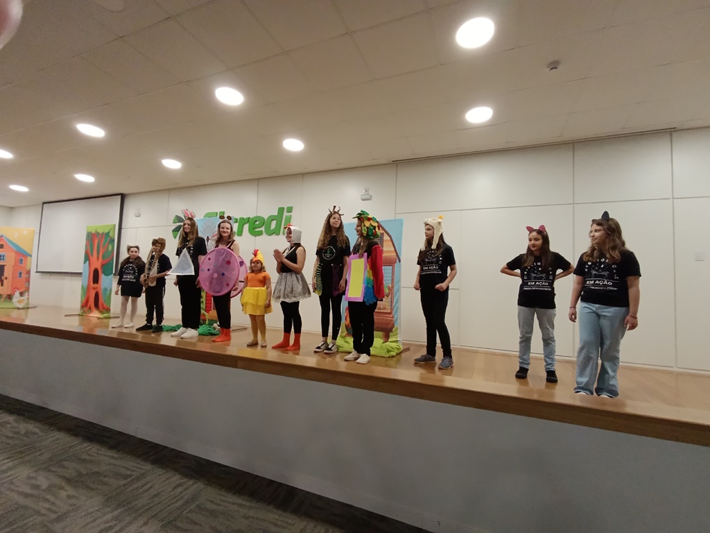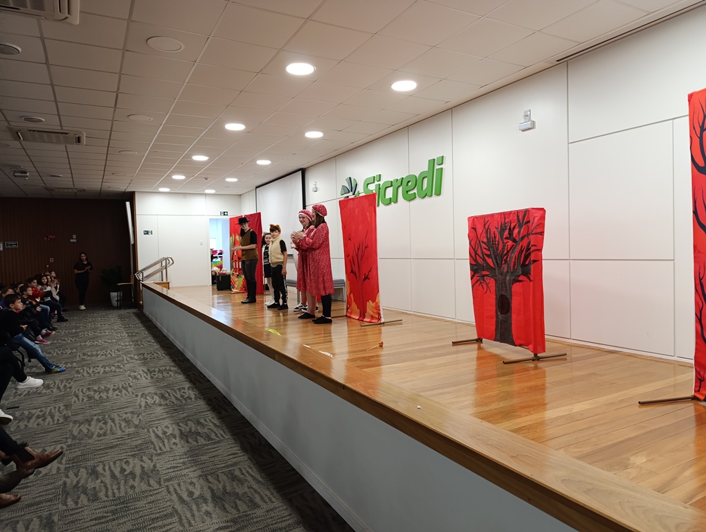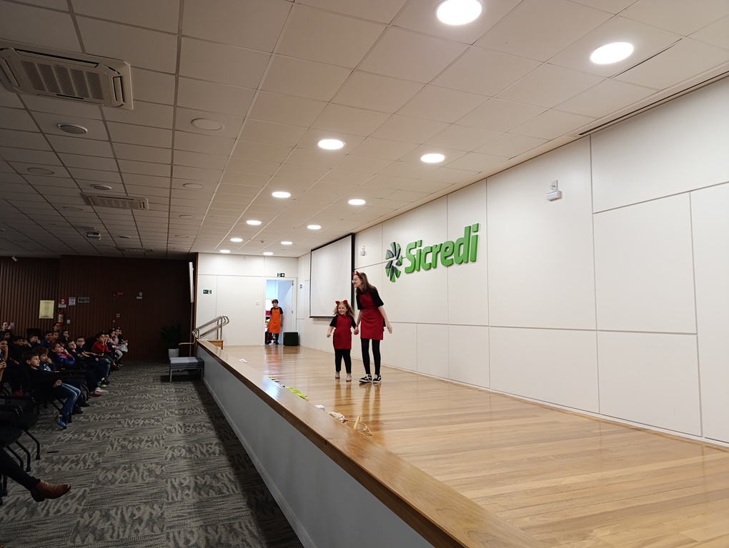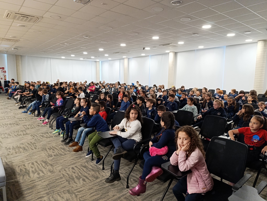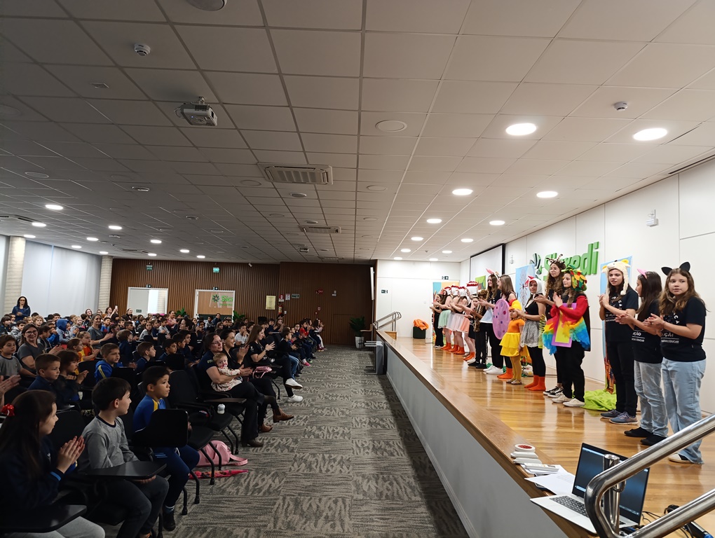 O projeto de extensão “Biblioteca em ação: contar, encantar e educar”, da Biblioteca Mario Quintana do IFFar – Campus Santo Augusto, promoveu na tarde de quinta-feira, dia 28 de novembro, no auditório do Sicredi, o V Festival de Histórias, com a presença de 250 estudantes do 1º ano do ensino fundamental de todas as escolas de Santo Augusto, acompanhados por seus professores.