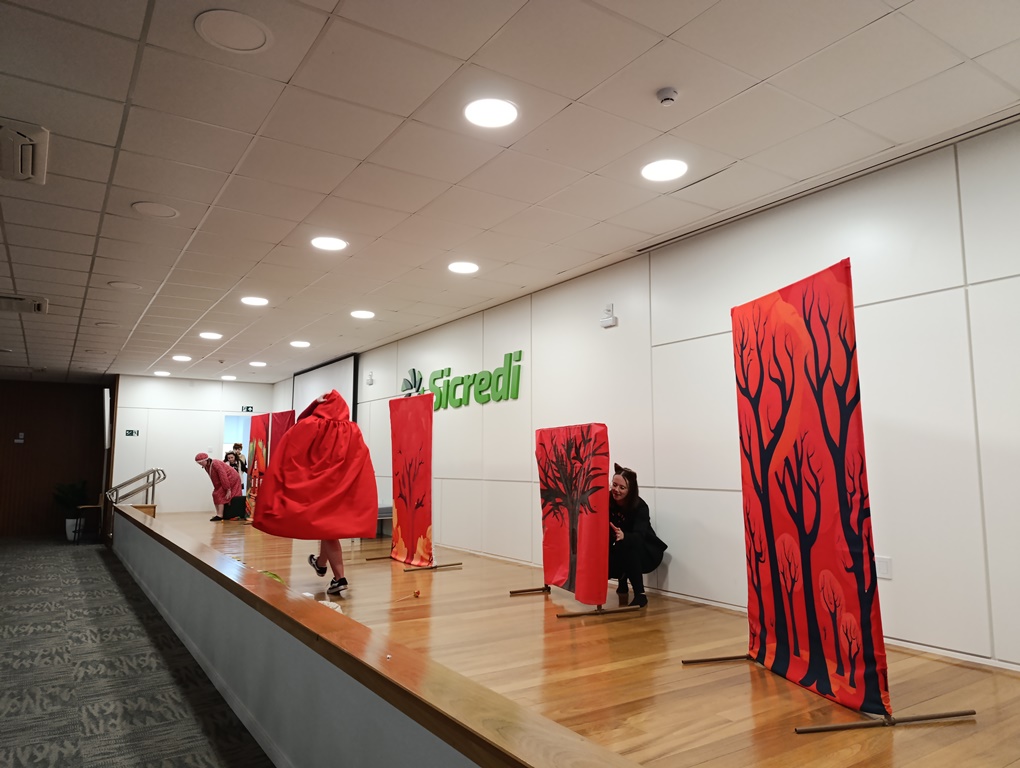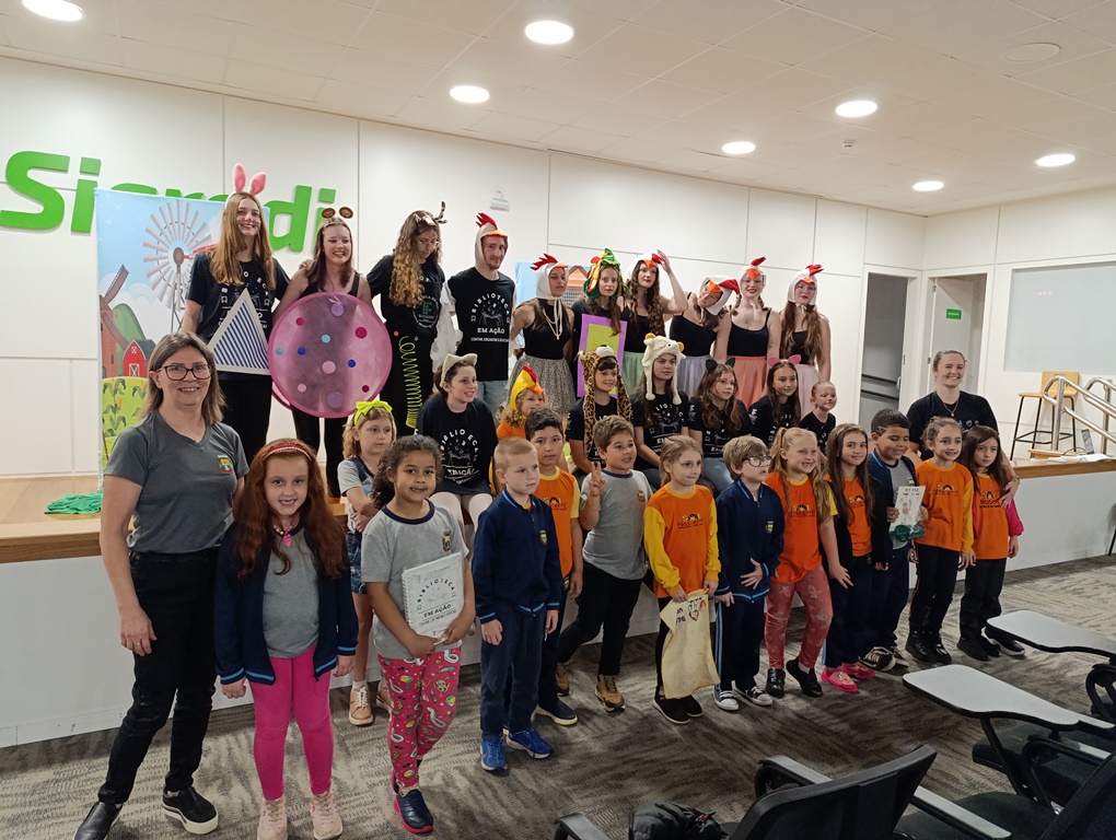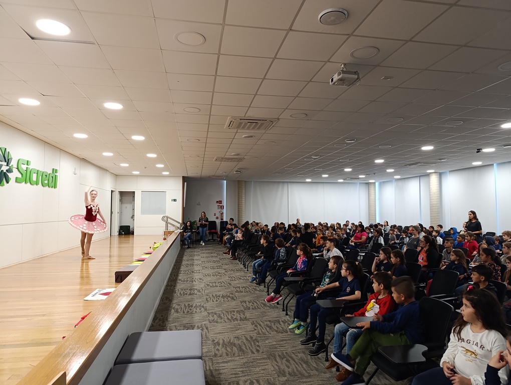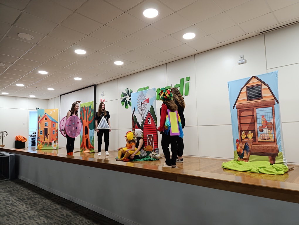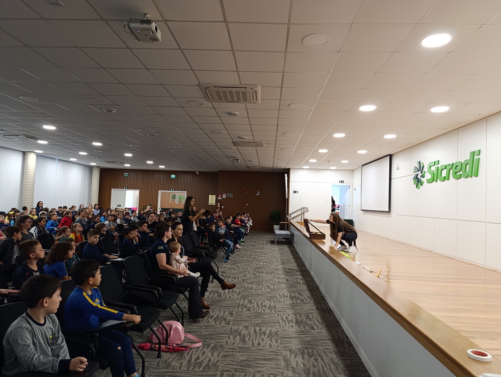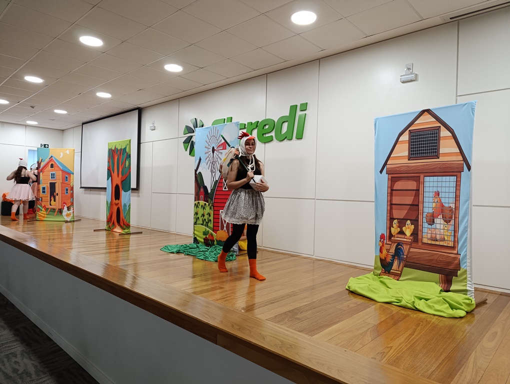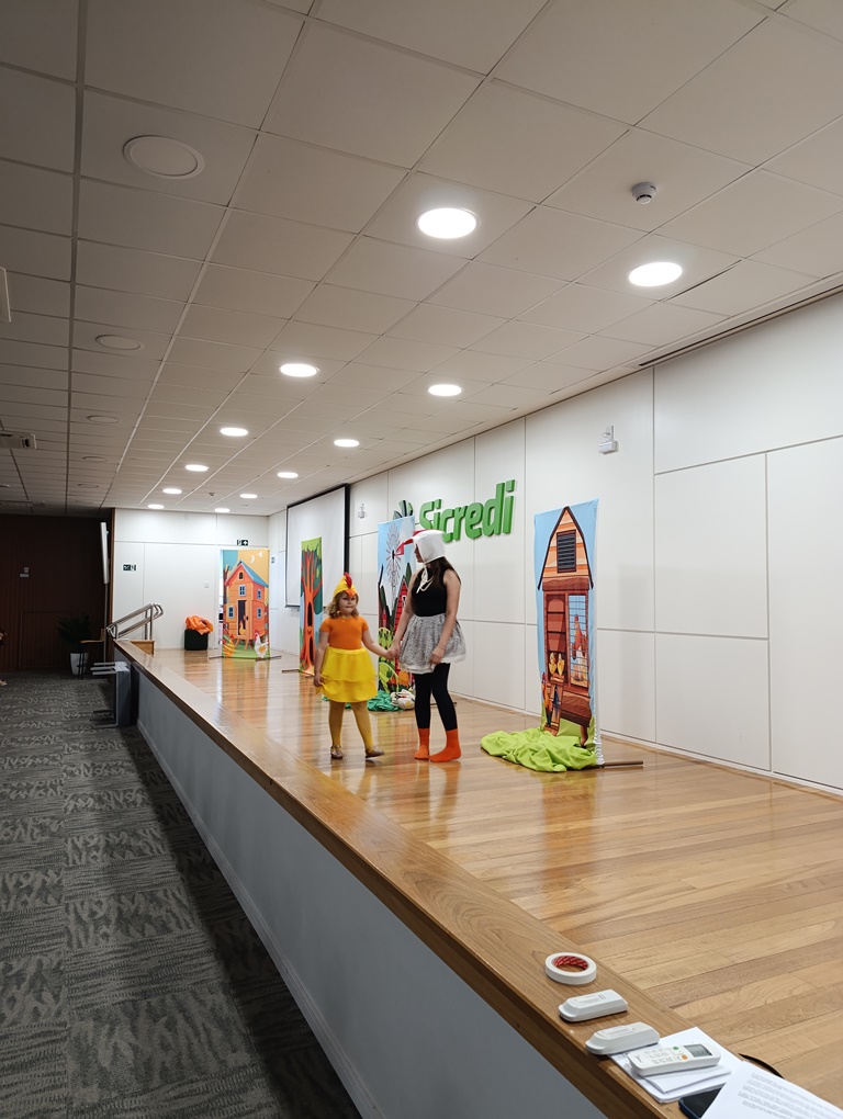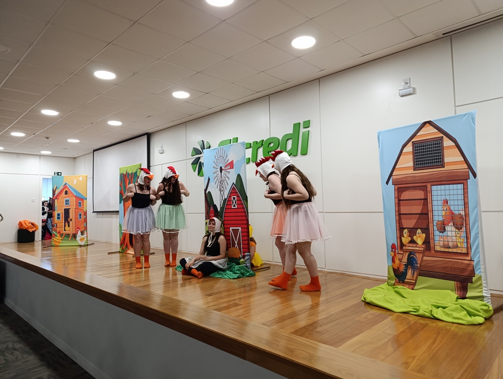 O projeto de extensão “Biblioteca em ação: contar, encantar e educar”, da Biblioteca Mario Quintana do IFFar – Campus Santo Augusto, promoveu na tarde de quinta-feira, dia 28 de novembro, no auditório do Sicredi, o V Festival de Histórias, com a presença de 250 estudantes do 1º ano do ensino fundamental de todas as escolas de Santo Augusto, acompanhados por seus professores.