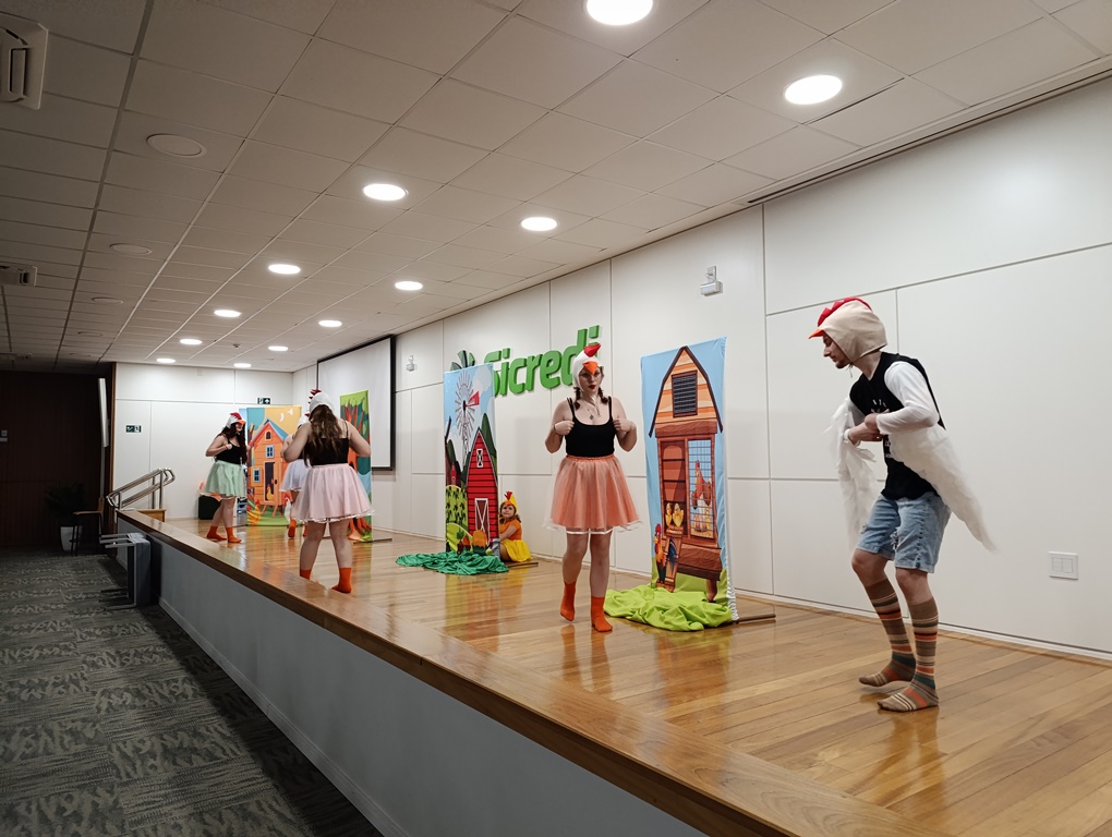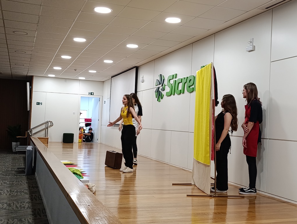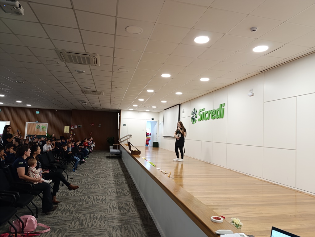 Para a estudante do 1º ano do curso técnico em Alimentos, Clara Klöckner Rockembach, participar do projeto Biblioteca em Ação é muito gratificante. “Foi uma experiência muito impactante eu diria, pois a cada apresentação ouvir elogios, aplausos, ver alegria e vários sorrisos estampados nos rostos das pessoas, sem dúvidas foi muito legal e inspirador. O projeto me fez desenvolver muitas habilidades e me fez perder o medo de falar em público, além de estimular o trabalho em equipe e me trazer muitas amizades. Só tenho elogios para esse projeto e para os organizadores”!