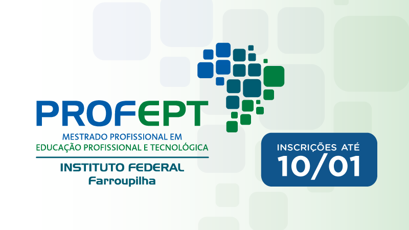 As inscrições para a seleção do curso de mestrado do Programa de Pós-Graduação em Educação Profissional e Tecnológica (ProfEPT) terminam nesta sexta-feira, 10 de janeiro. O Campus Jaguari oferece 22 vagas, sendo 11 para servidores.