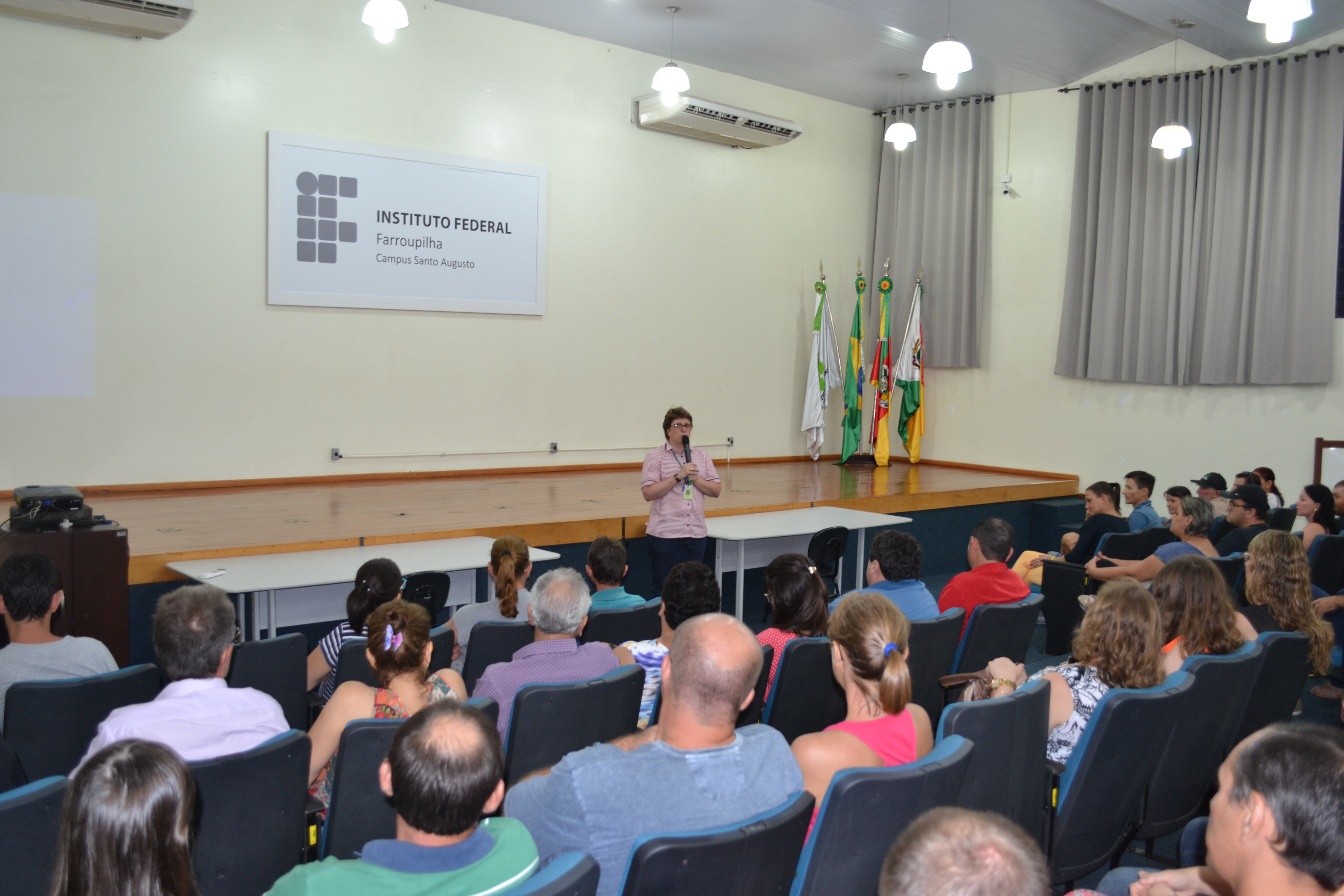 Na noite de segunda-feira, dia 06, o IFFar-Campus Santo Augusto realizou um acolhimento aos pais de alunos dos primeiros anos dos cursos técnicos Integrados ao ensino médio da instituição. O auditório ficou lotado para a reunião, tamanha a adesão de pais ou responsáveis. Eles foram recebidos pela Diretora Geral, Verlaine Gerlach, juntamente com a Diretora de Ensino, Márcia Fink; a Coordenadora de Assistência Estudantil, Gabriela Perusatto; e pelos Coordenadores dos cursos, que além de apresentarem a equipe de trabalho a todos, passaram as orientações iniciais e tiraram eventuais dúvidas.