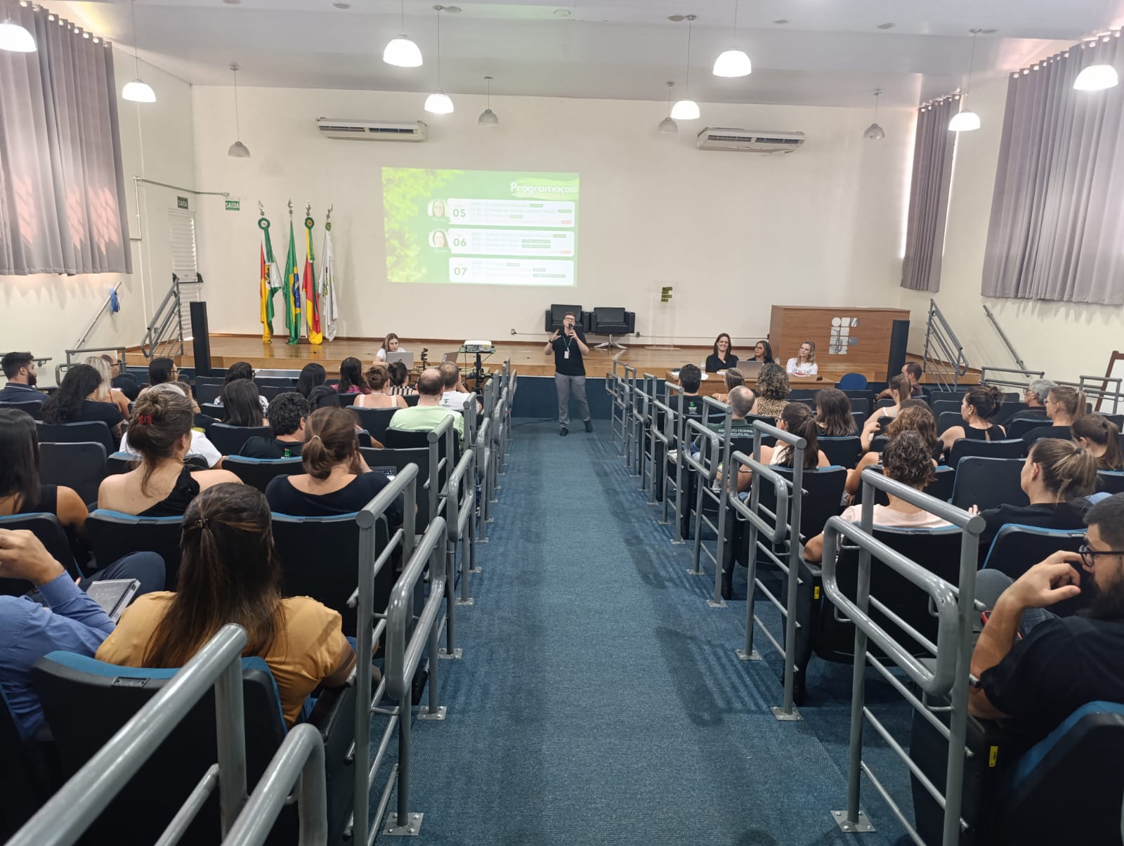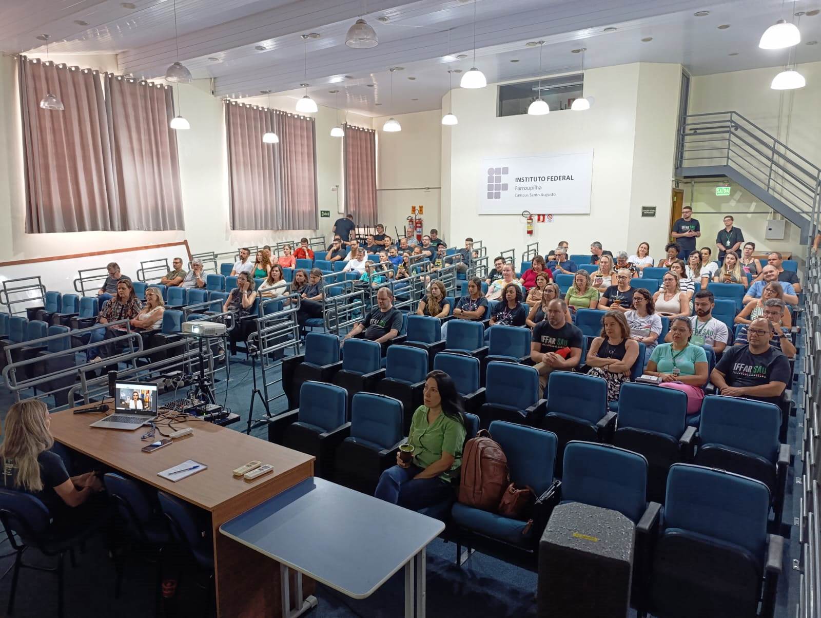 O IFFar – Campus Santo Augusto realizou na tarde de quarta-feira, 05 de março, às 14h, a abertura oficial do ano letivo 2025, no auditório da instituição com a acolhida por parte da Direção aos servidores, seguida por uma atividade de imersão conduzida pela professora Lidiane Walter. Após, todos os servidores foram convidados para participar de um coffee break no refeitório.