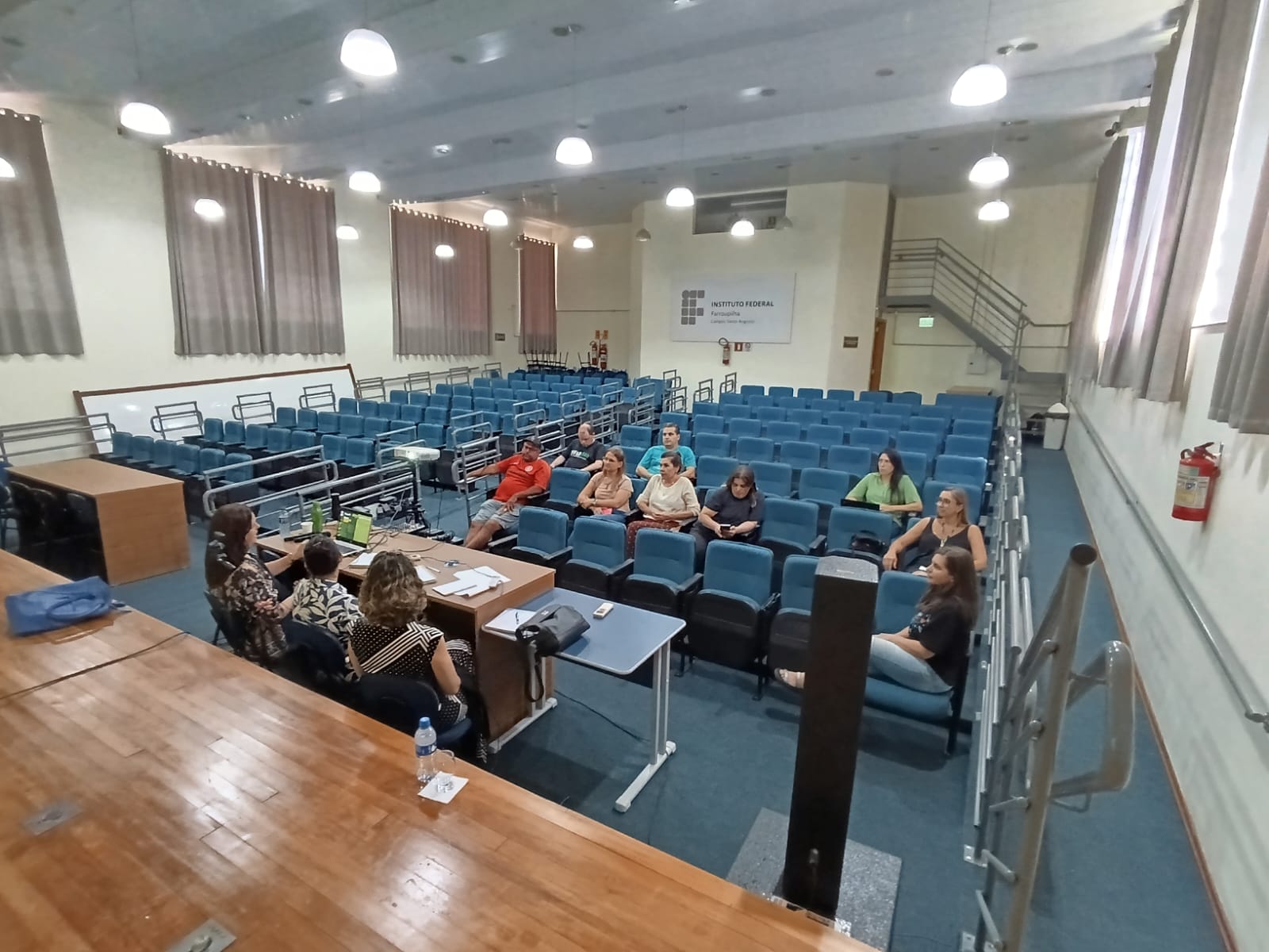 A programação continuou na quinta-feira, dia 06, às 8h, com a exibição do vídeo boas-vindas da Reitora Nídia Heringer, seguida pela palestra da Pró-Reitora de Ensino do IFFar, Patrícia Donitch, tendo como tema “Por que Ramificar? Ensino, Pesquisa e Extensão na formação integral”. Na sequência, aconteceram estudos em grupo, dos quais os resultados serão sistematizados na sexta-feira, dia 07, a partir das 8h.