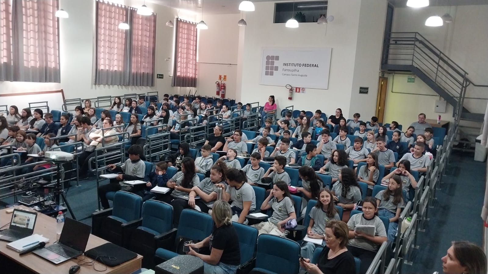 Na manhã desta terça-feira, dia 18 de março, o auditório do IFFar – Campus Santo Augusto foi sede do 1º Seminário de Combate à Violência contra Mulher e Mulheres que fizeram História organizado pela Escola Municipal Sol Nascente. O evento contou com a participação de estudantes do turno da manhã da escola, do 4º ao 9º ano do ensino fundamental, bem como professores e funcionários e a Secretária Municipal de Educação, Eliane Paier.