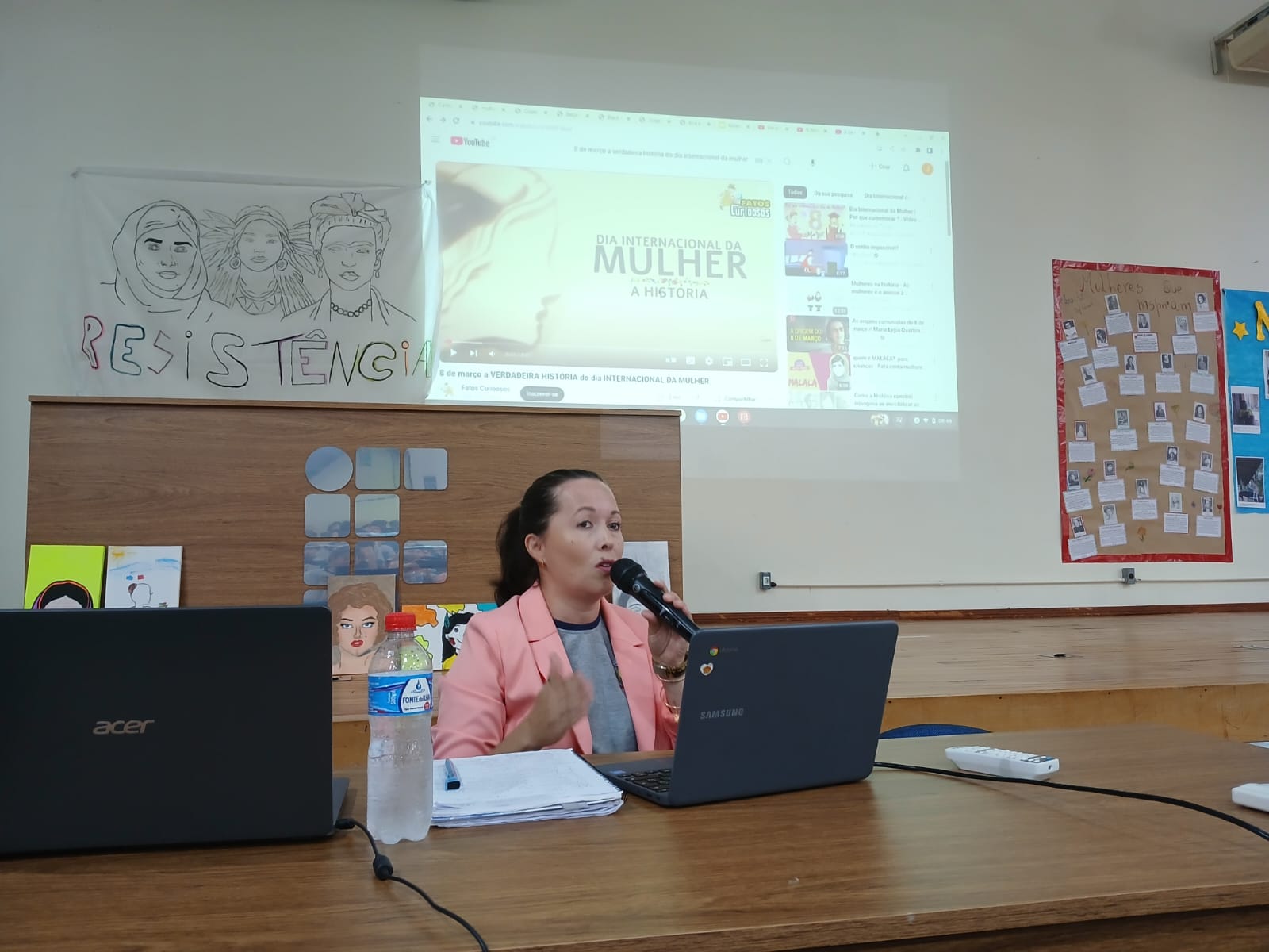 Baseando-se na Lei nº 14.164 de 10 de junho de 2021, que instituiu a Semana Escolar de Combate à Violência contra a mulher, e na Lei nº 14.986 de 25 de setembro de 2024, que instituiu a Semana de Valorização de Mulheres que Fizeram História no âmbito das escolas de educação básica do país, os alunos juntamente com seus professores estudaram e pesquisaram o contexto histórico que nos remete a evolução e conquistas do papel feminino em nossa sociedade, as histórias de coragem e de bravura, com ênfase aos trabalhos artísticos e a apresentação de trabalhos literários, como lendas, contos e poesias.  Os trabalhos foram coordenados pelas professoras Janaína Feller e Lidiane Stival.