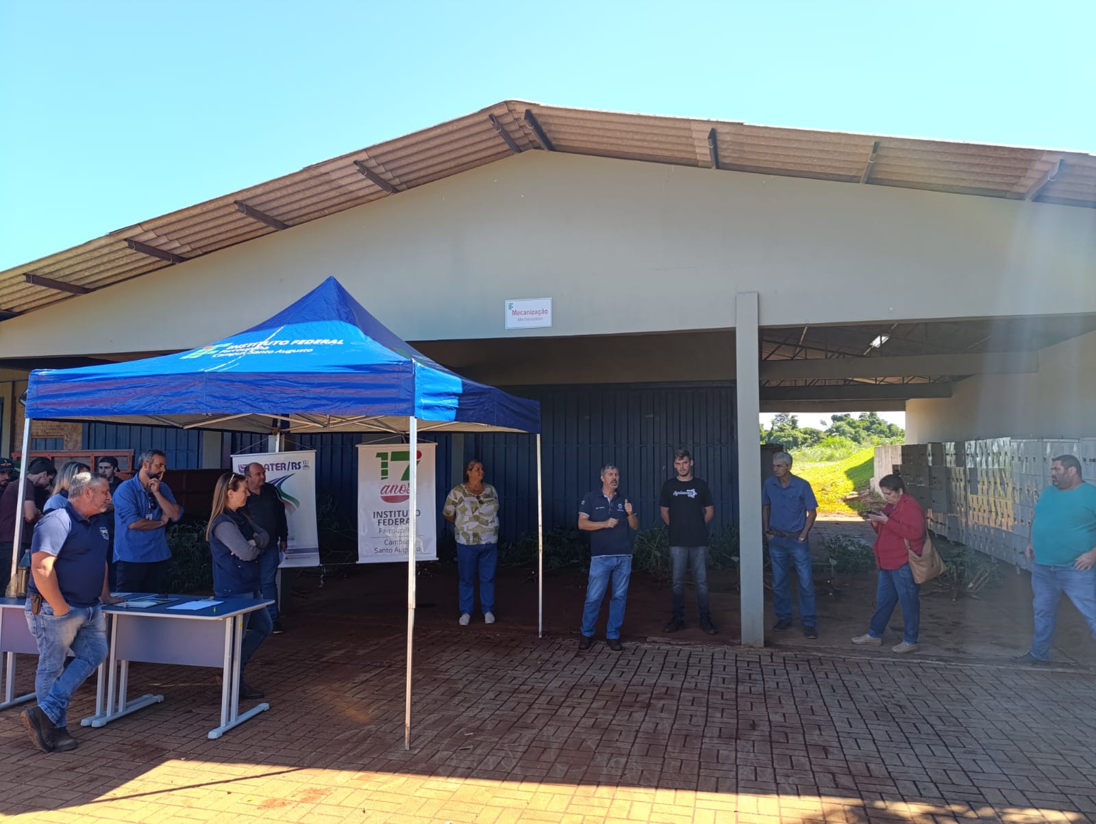 O evento conduzido pelo professor Tarcísio Samborski, contou com a participação do Deputado Federal do PT, Elvino Bohn Gass; da Diretora Geral do IFFar – Campus Santo Augusto, Márcia Fink; do Diretor de Pesquisa Extensão e Produção, Ricardo Paraginski; do Secretário Municipal de Desenvolvimento Econômico e Meio Ambiente de Santo Augusto, Paulo Tonetto de Moura; da Chefe do Escritório local da Emater, Elisa Volpatto Schindler, acompanhada pelo Engenheiro Agrônomo, Dhonathã Rigo e a Técnica em Agropecuária, Estefânia Van Groll Ferreira; do Vice Prefeito de Vista Gaúcha, André Danetti; do prefeito de Miraguaí, Leonir Hartk, acompanhado pelo Secretário de Agricultura, Ivonir Botton e por Regis Hardt, proprietário da Agroindústria de mandioca de Miraguaí.