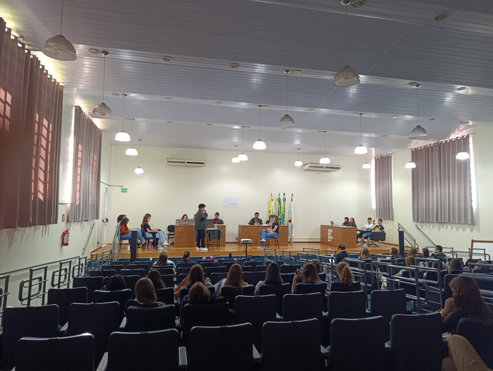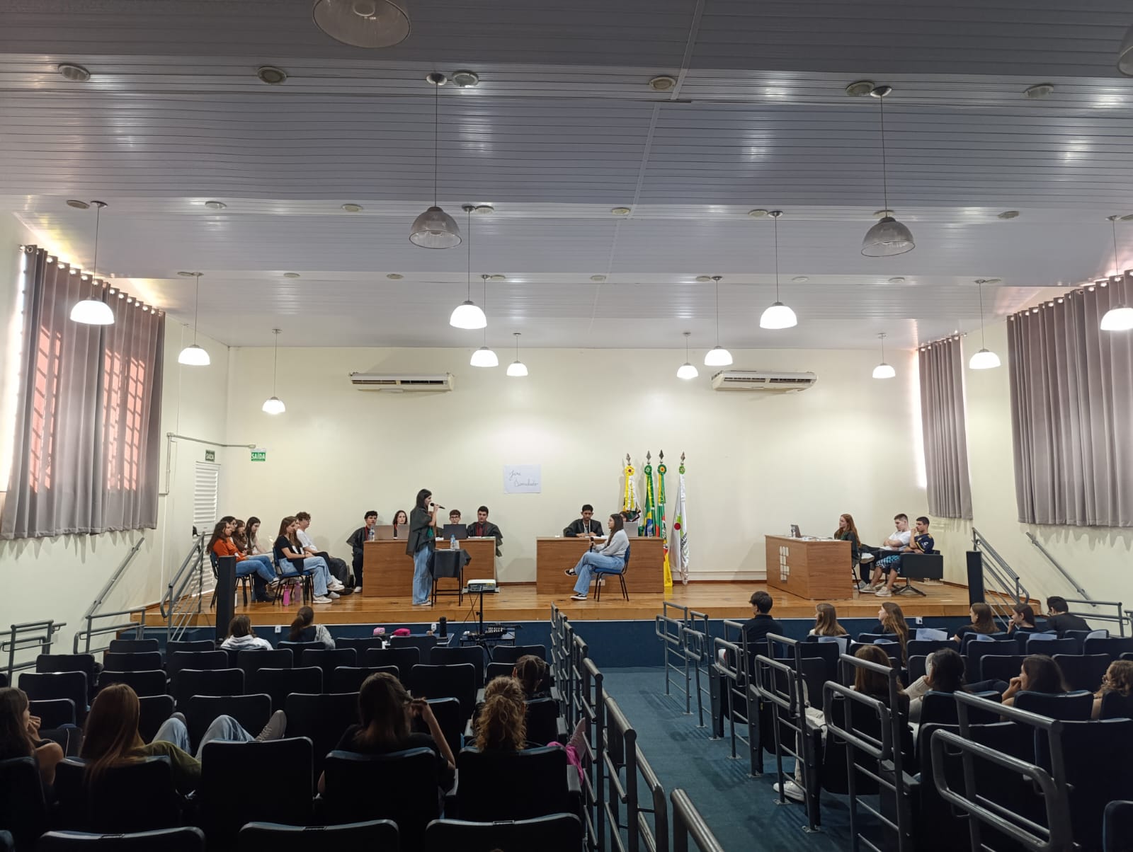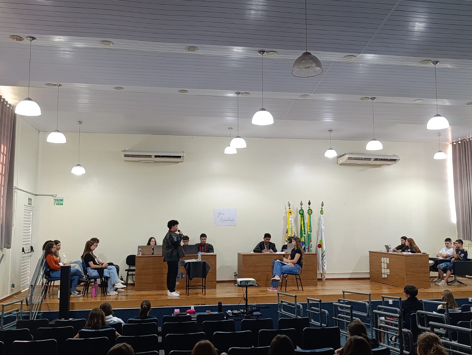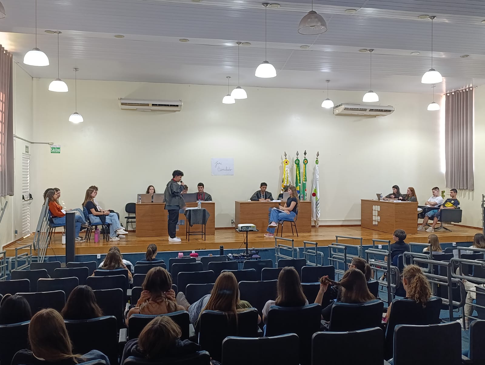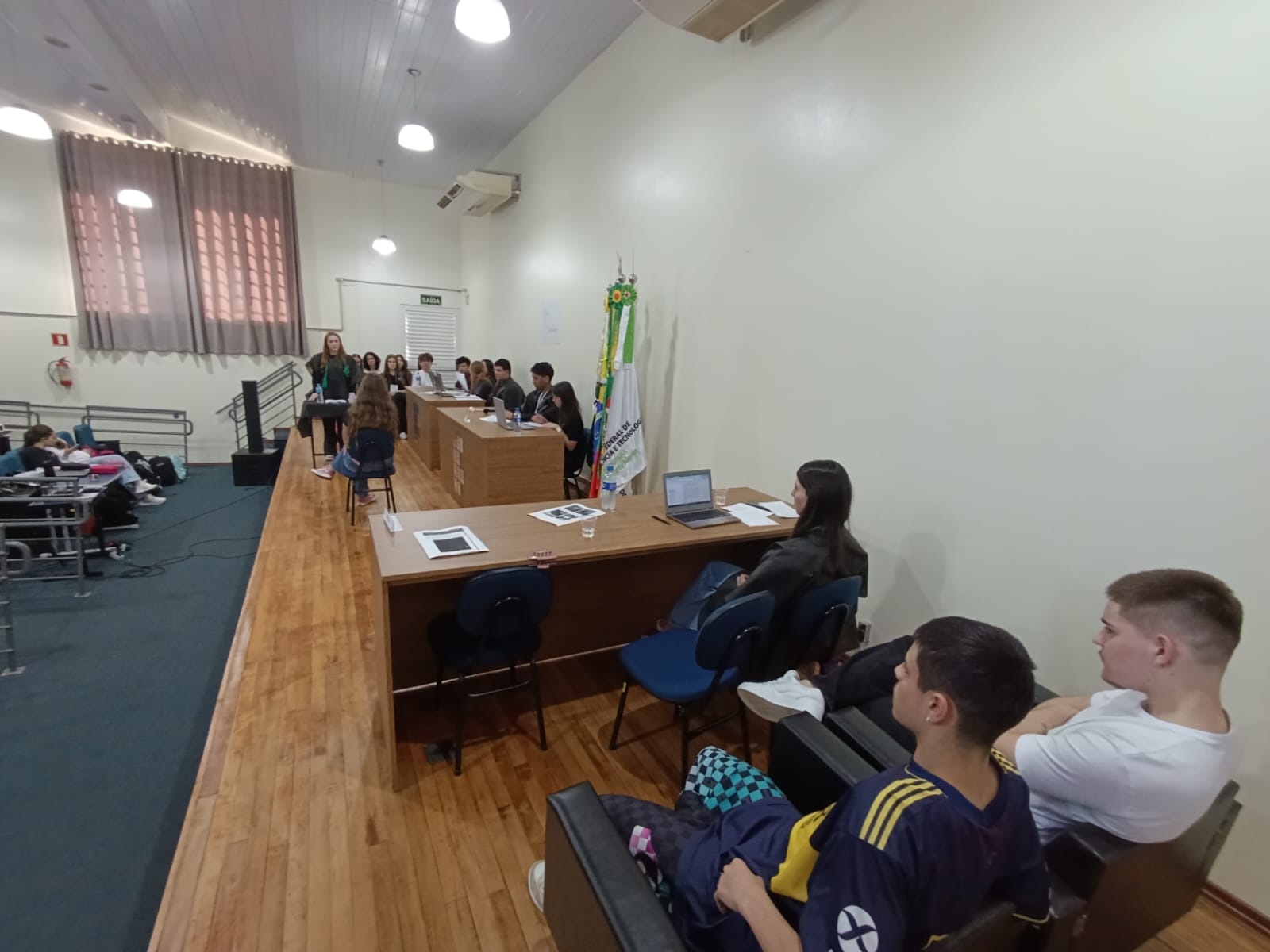 Na ocasião, os estudantes assumiram os papéis de juiz, promotor, defensor, réu, testemunhas e jurados, encenando um julgamento completo, com base em um caso fictício elaborado para estimular o debate jurídico e moral. A atividade contou com a presença dos alunos do 1º e 2º ano do mesmo curso, que participaram como ouvintes, acompanhando o processo e observando a argumentação desenvolvida pelos colegas.