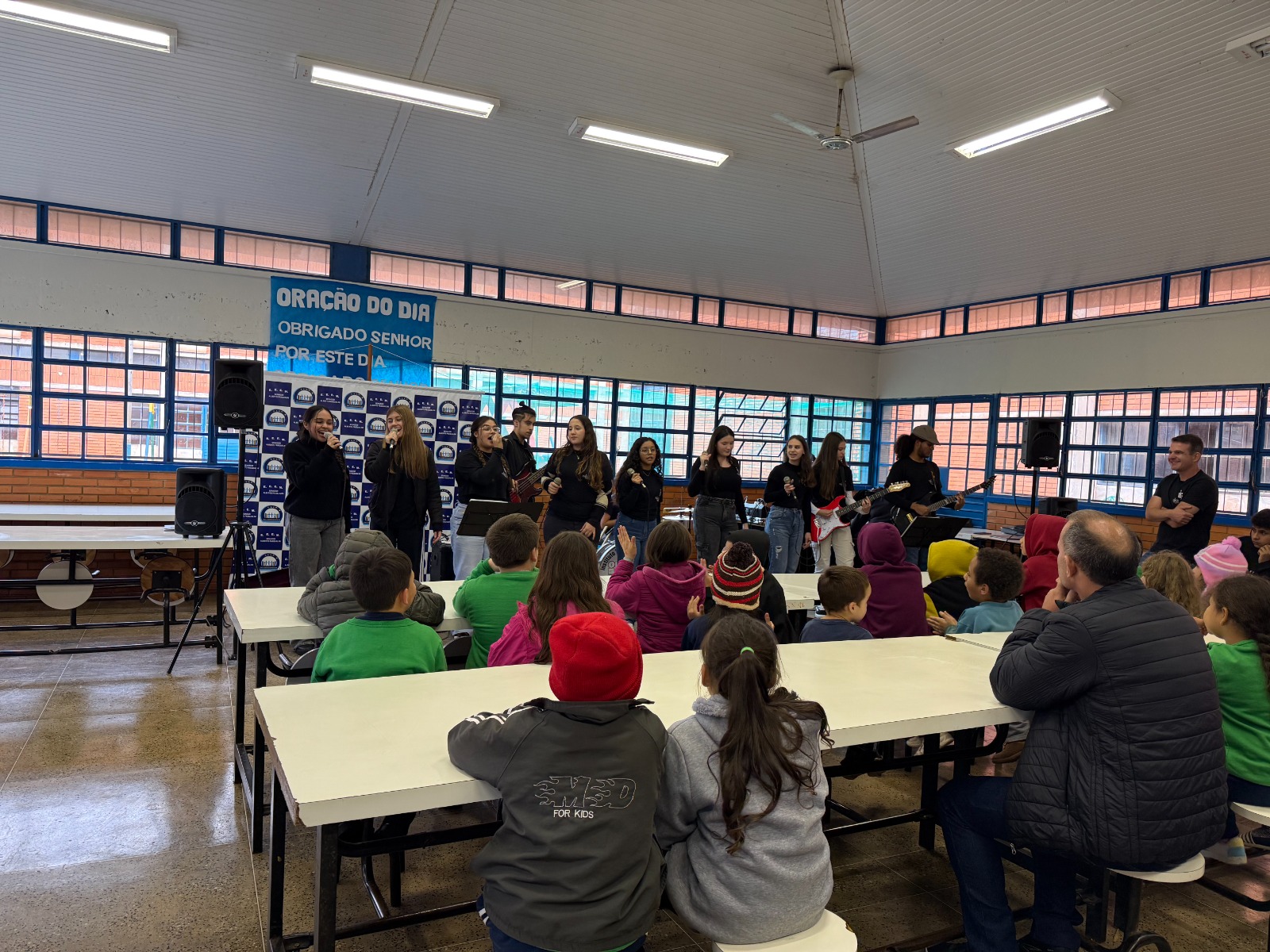 A Banda IF Musical do IFFar – Campus Santo Augusto se apresentou na tarde de terça-feira, dia 03 de junho, nas comemorações do aniversário de 32 anos da Escola Estadual de Ensino Médio Senador Alberto Pasqualini – CIEP de Santo Augusto, levando boa música e momentos de diversão para alunos e professores.